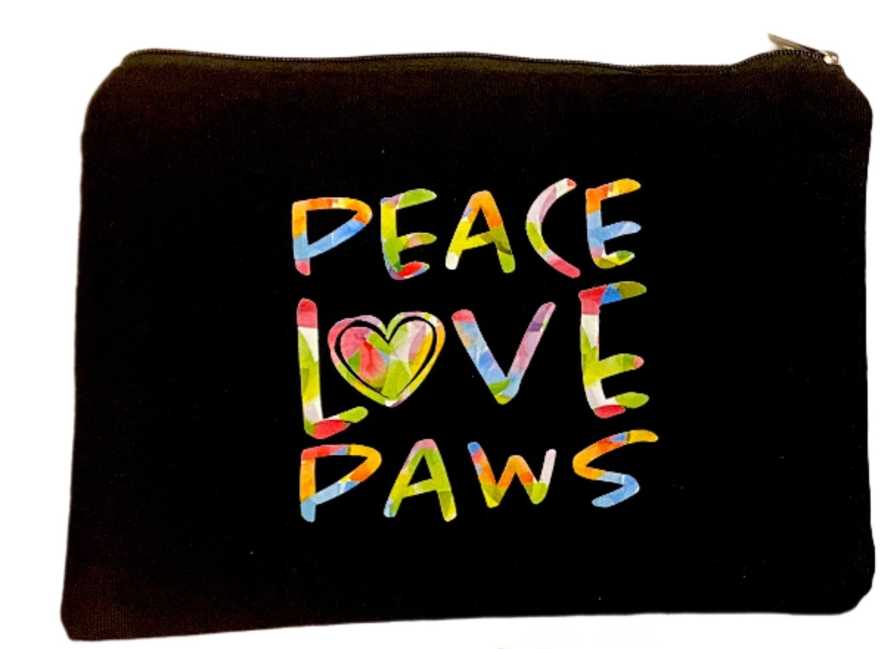 Bring a bit of peace and love with you wherever you go with this Happy Little Kitty Peace Love Paws Makeup Bag! This bright and colorful makeup bag features fun tie-dye “Peace Love Paws” lettering against a chic black background and a secure zipper closure, providing the perfect combination of style and practicality that cat lovers and makeup mavens alike will adore.