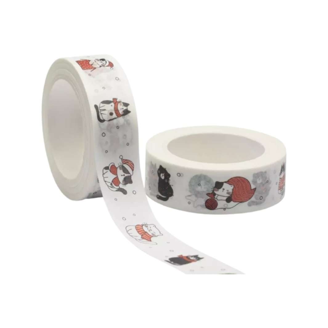 This fun and festive washi tape featuring winter scenes with little cats wearing scarves and playing in the snow, is perfect for putting pawsitively purr-fect holiday deocrations into any decor.