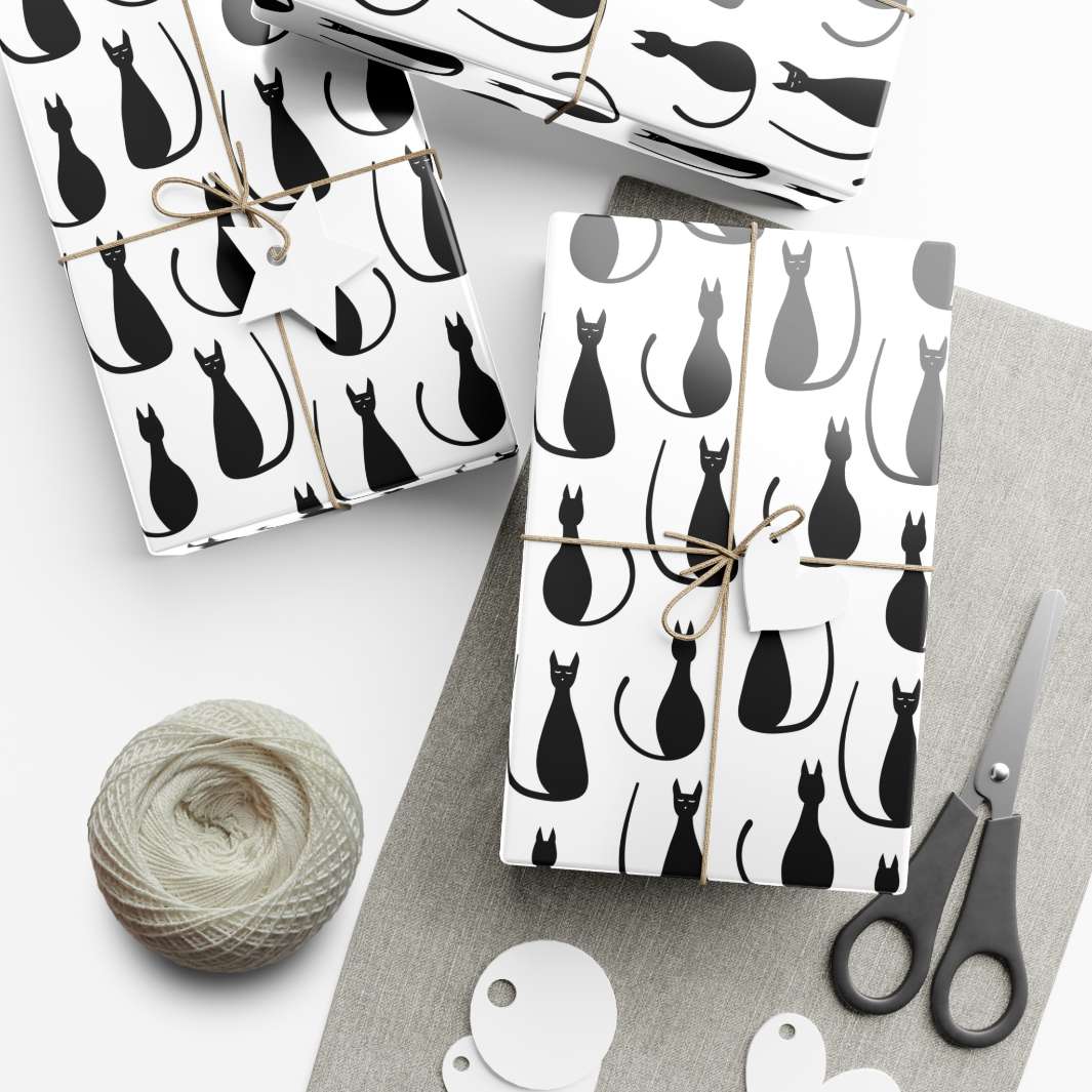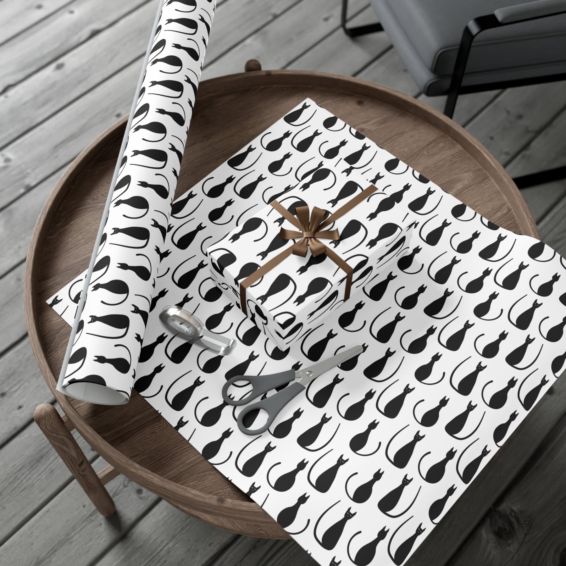 Crafted with care, our cat wrapping paper features a crisp white background, allowing the darling silhouettes of our black cat pattern to truly stand out. Whether you're wrapping a birthday present for your fellow cat-loving friend or surprising your fur baby with a special treat, our gift wrap will surely bring a smile to their face.