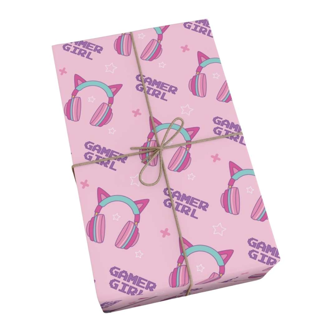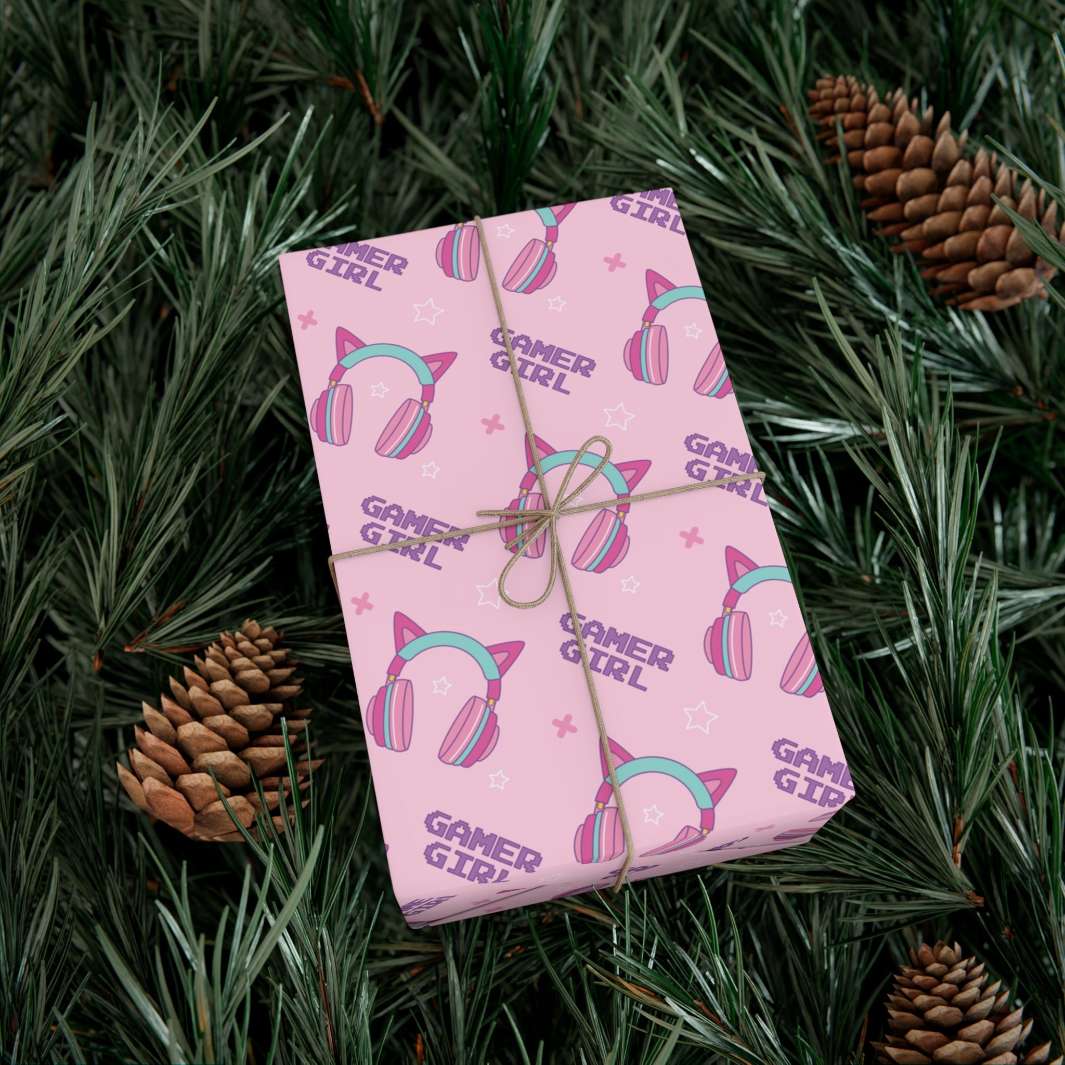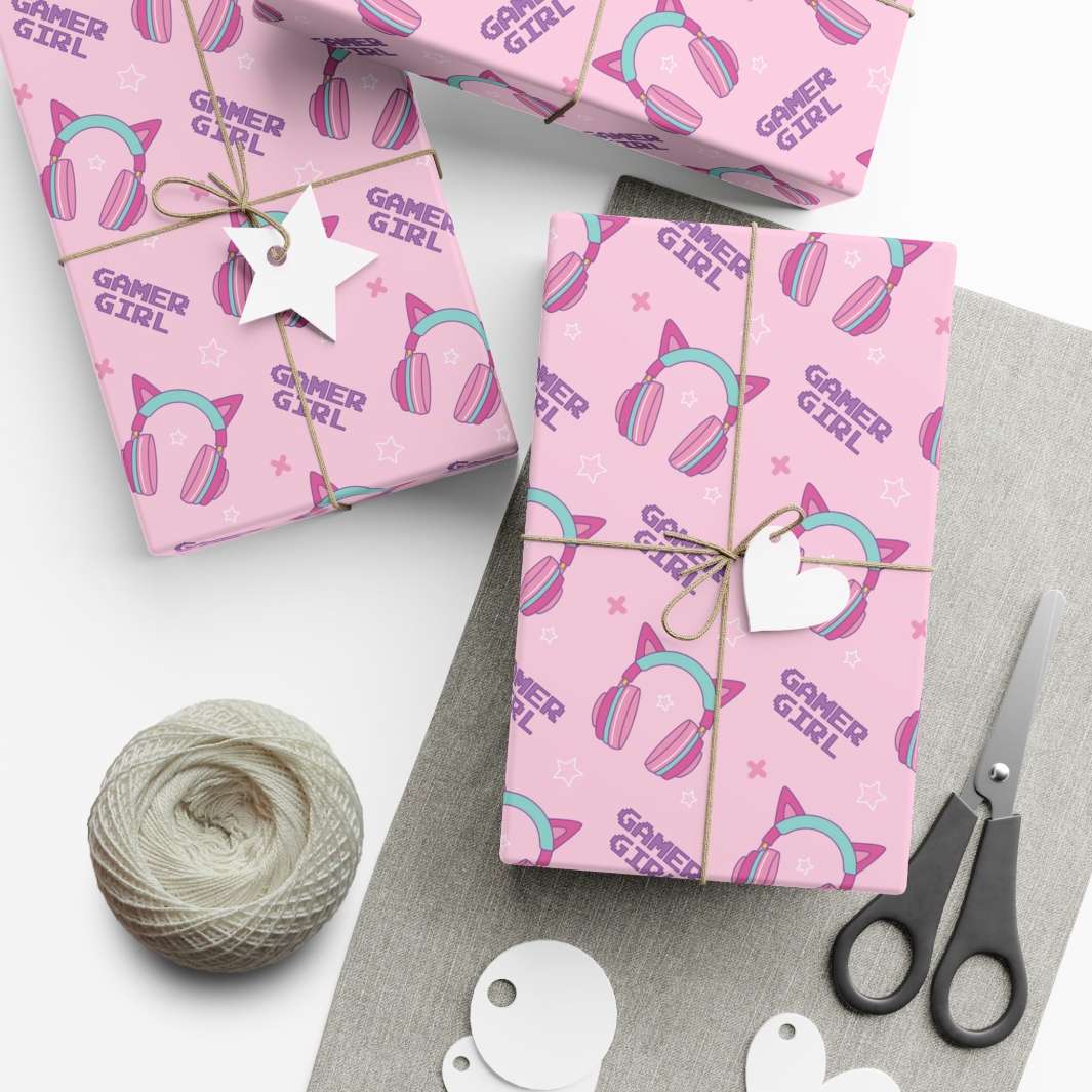 Picture this: a mesmerizing pink background that instantly catches your eye and fills your heart with warmth. But what truly sets this wrapping paper apart are the headphones sitting atop, adorned with charming cat ears in a captivating blend of teal and pink. These quirky details make a bold statement, telling the world that you're not just a cat lover, but a fierce gamer girl too!