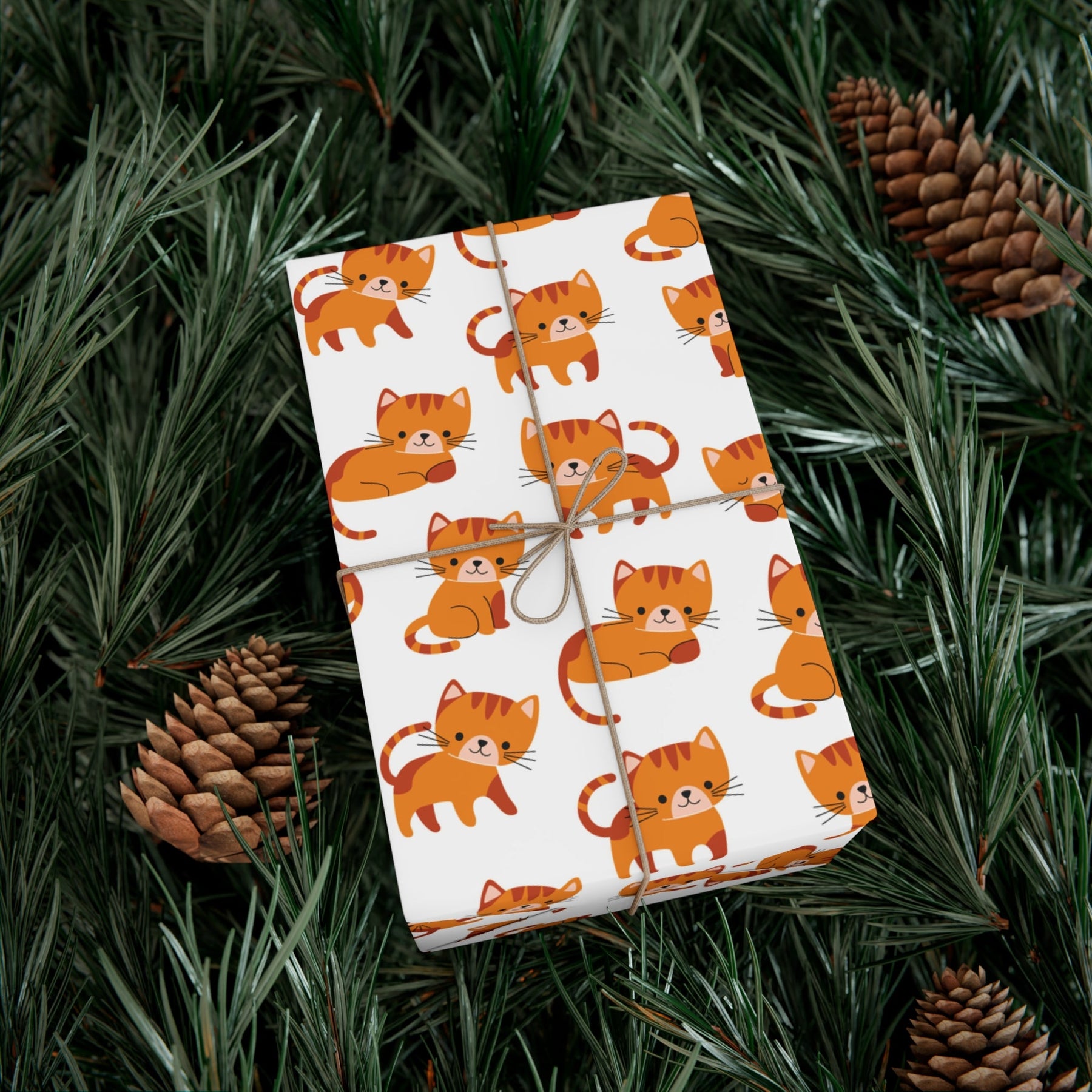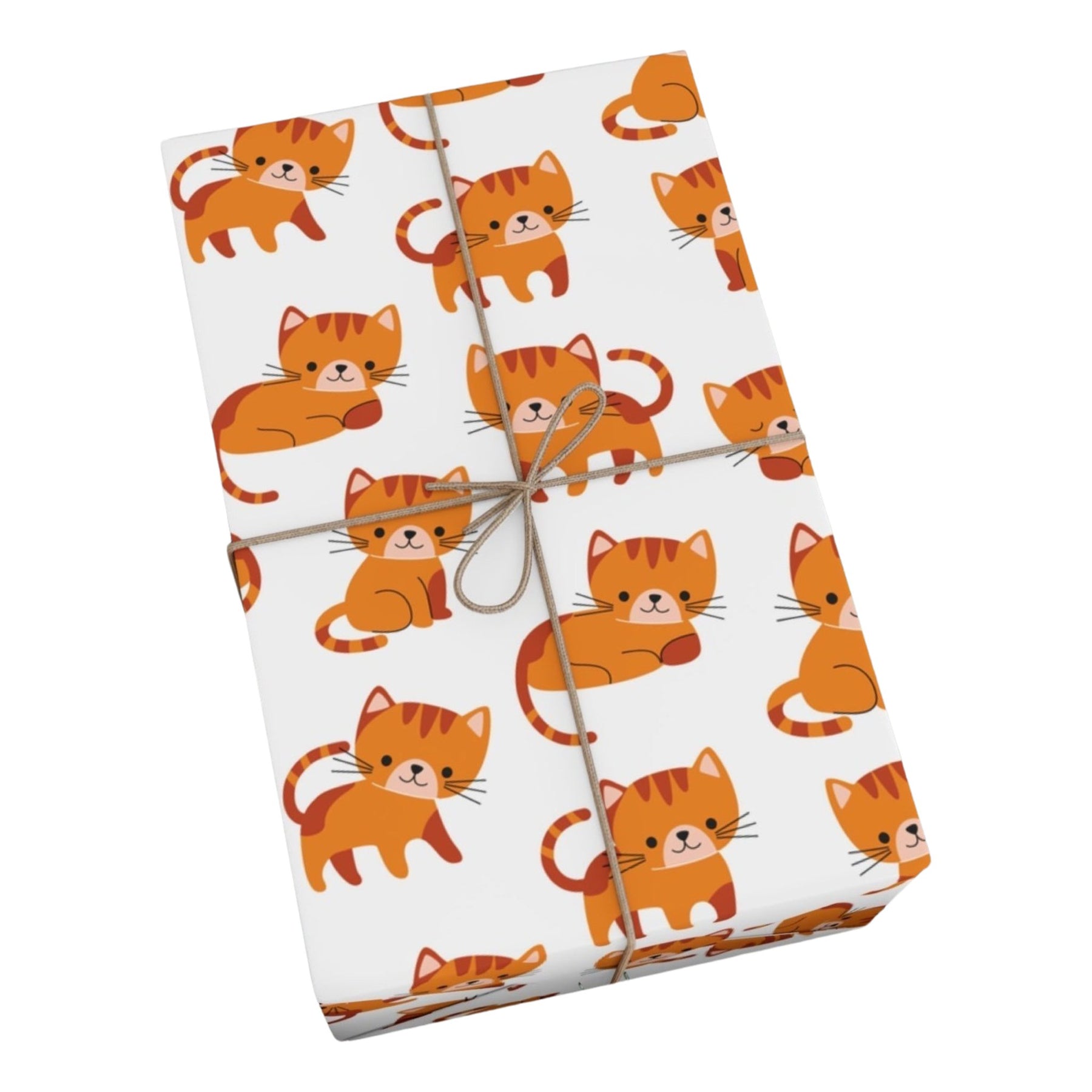 It features a delightful white background with lovable orange cartoon kittens sitting and laying, adding a playful touch to any present! Plus, our gift wrap is made using only the most premium materials that won’t tear or rip easily.