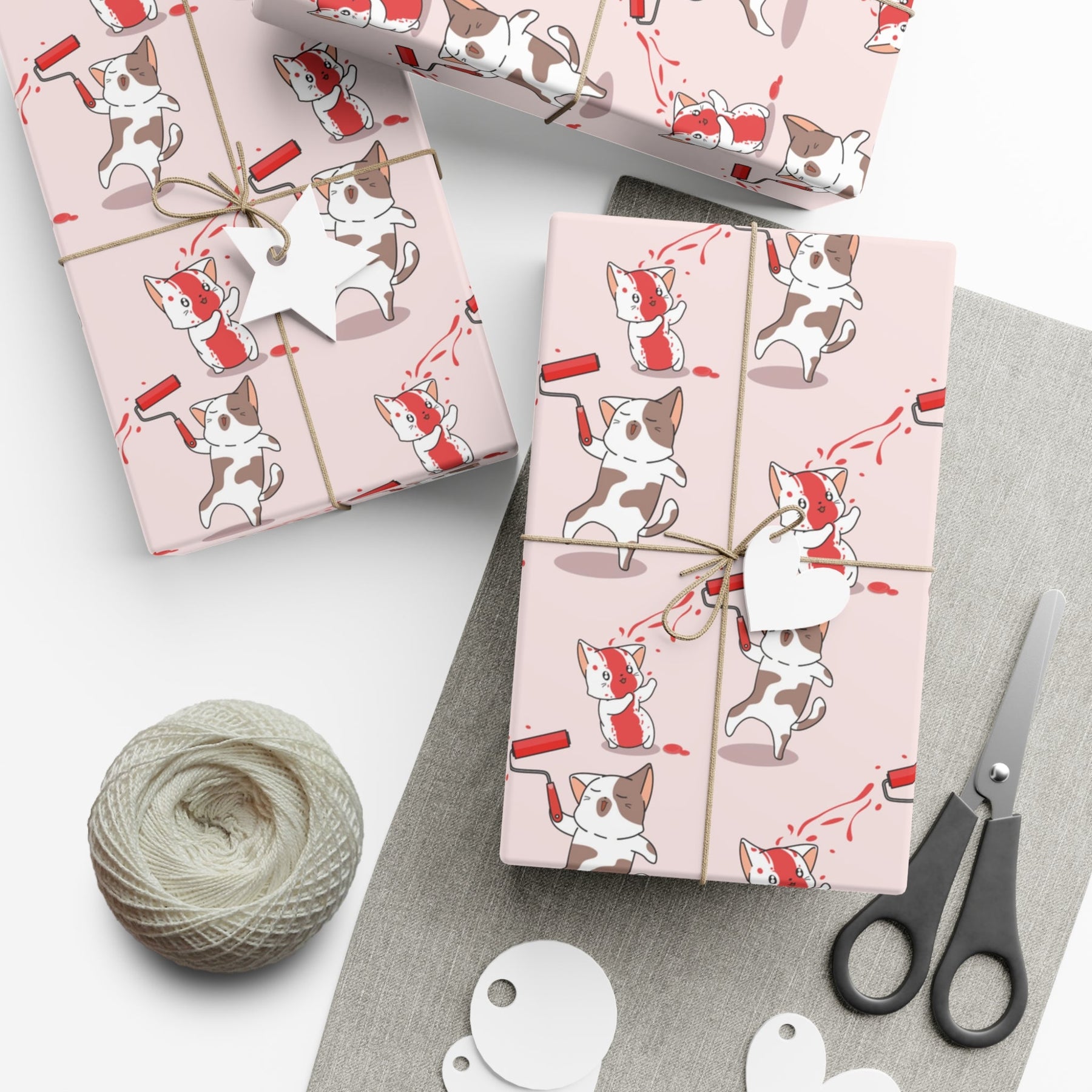 Introducing our whimsical and utterly enchanting Paint Fight Cat Gift Wrap! Get ready to unleash the purr-fection of creativity and charm onto your gift-giving endeavors. This delightful wrapping paper features a vibrant pink background that instantly catches the eye and brings a breath of fresh air to any occasion. But wait, it gets better – it's adorned with adorable white and brown playful cartoon cats engaging in a lively and mischievous paint fight!