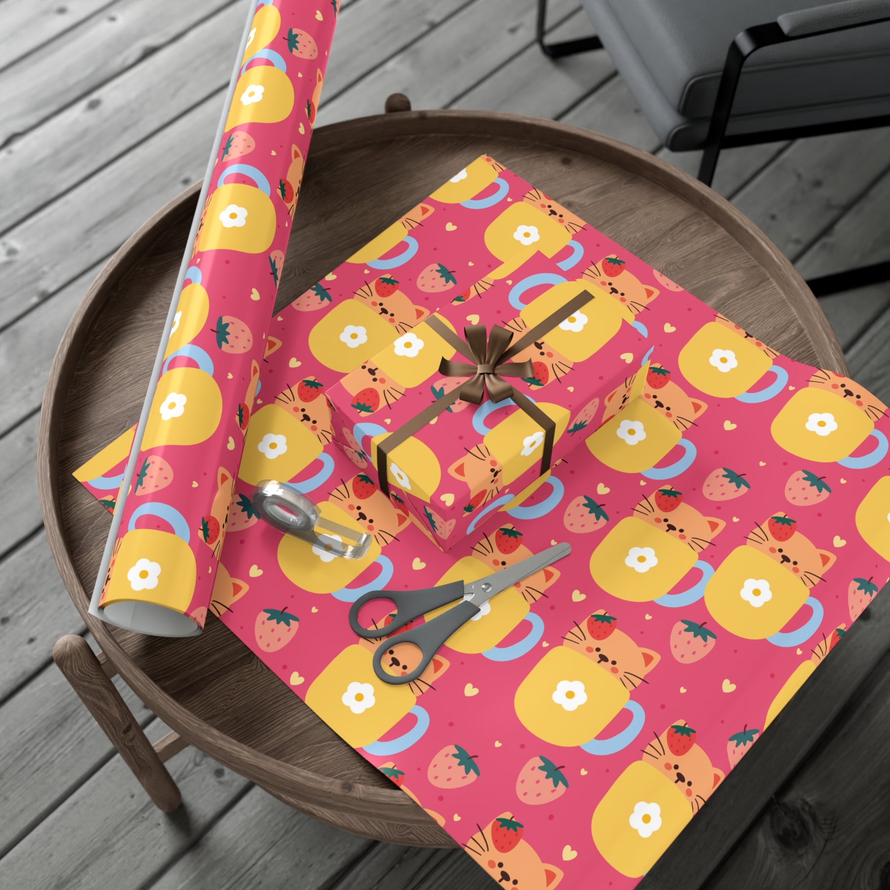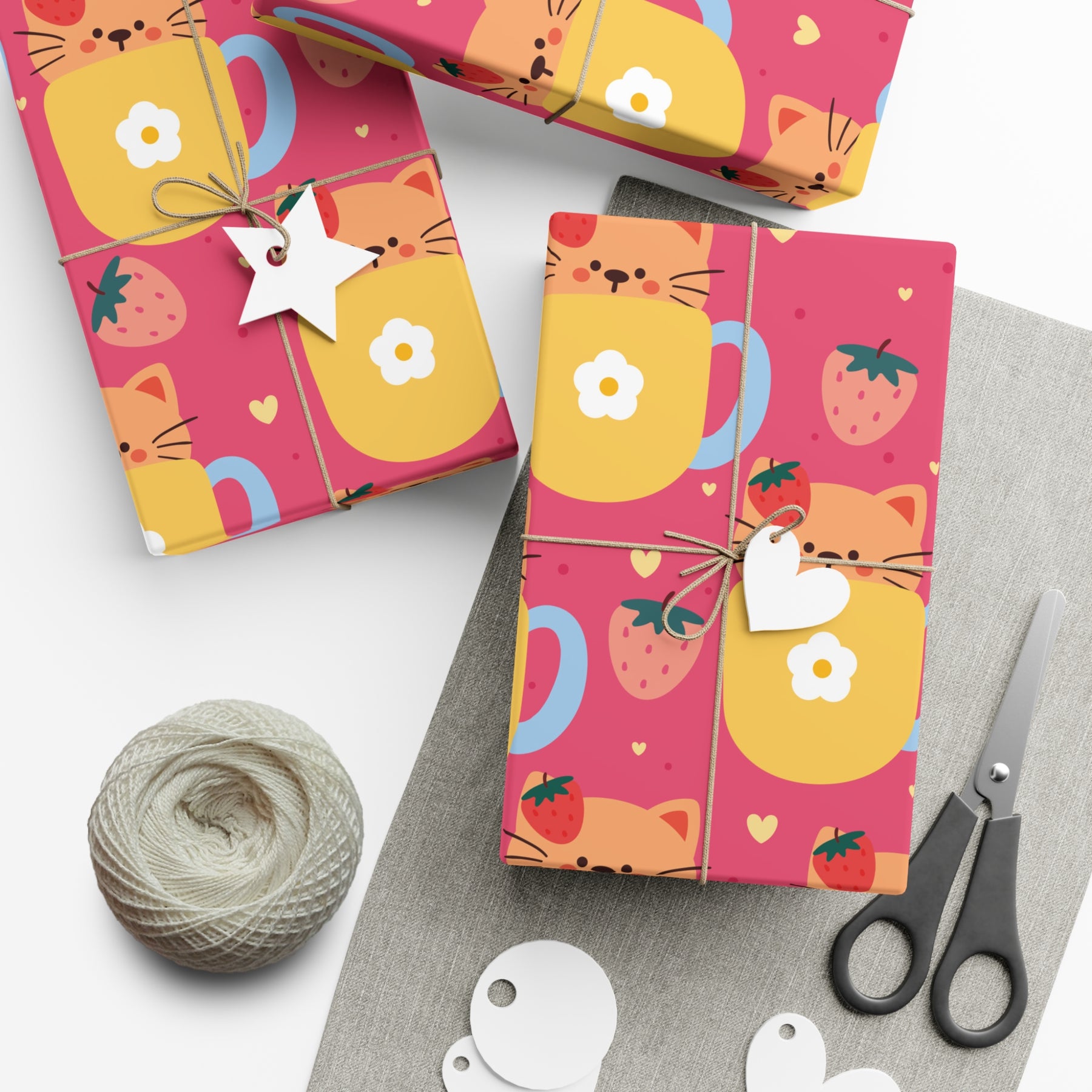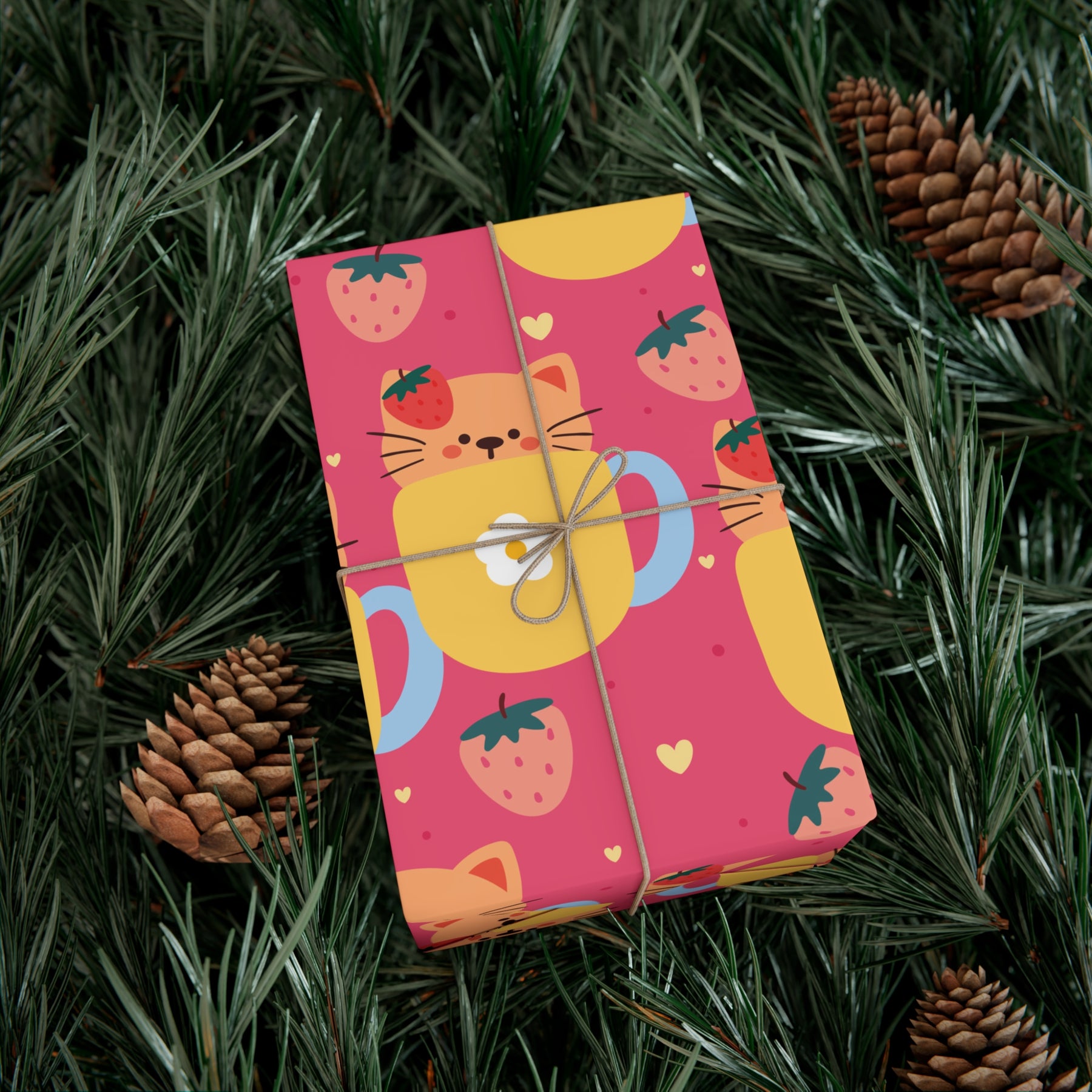 Each roll of 'Pawsitively Purrr-fect Gift Wrap' is crafted with high-quality paper that's both durable and easy to work with, ensuring your gifts look neatly packaged and irresistible. The vibrant, long-lasting colors are printed with premium inks, so the delightful cat illustrations and sweet strawberries remain as vivid as your warm wishes.