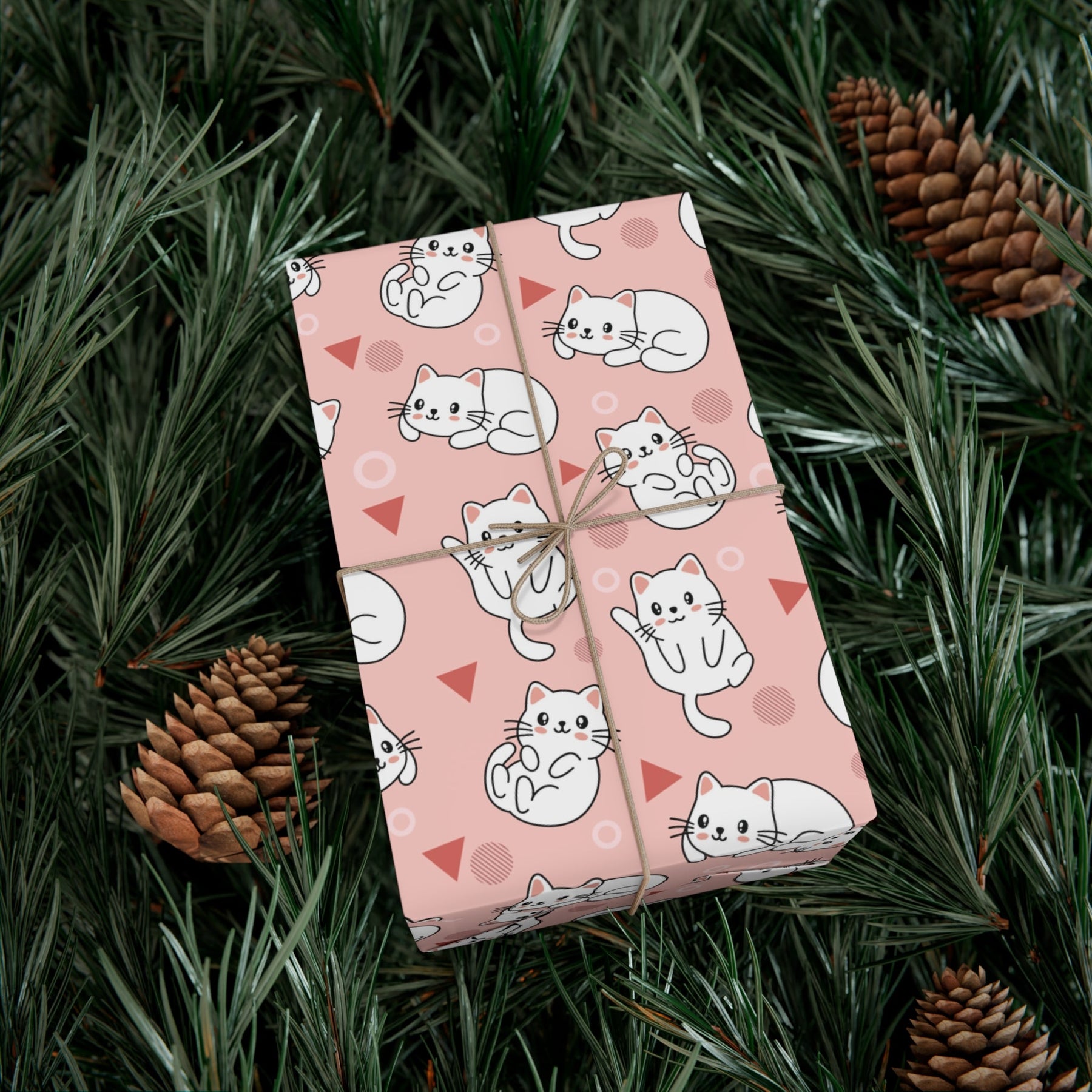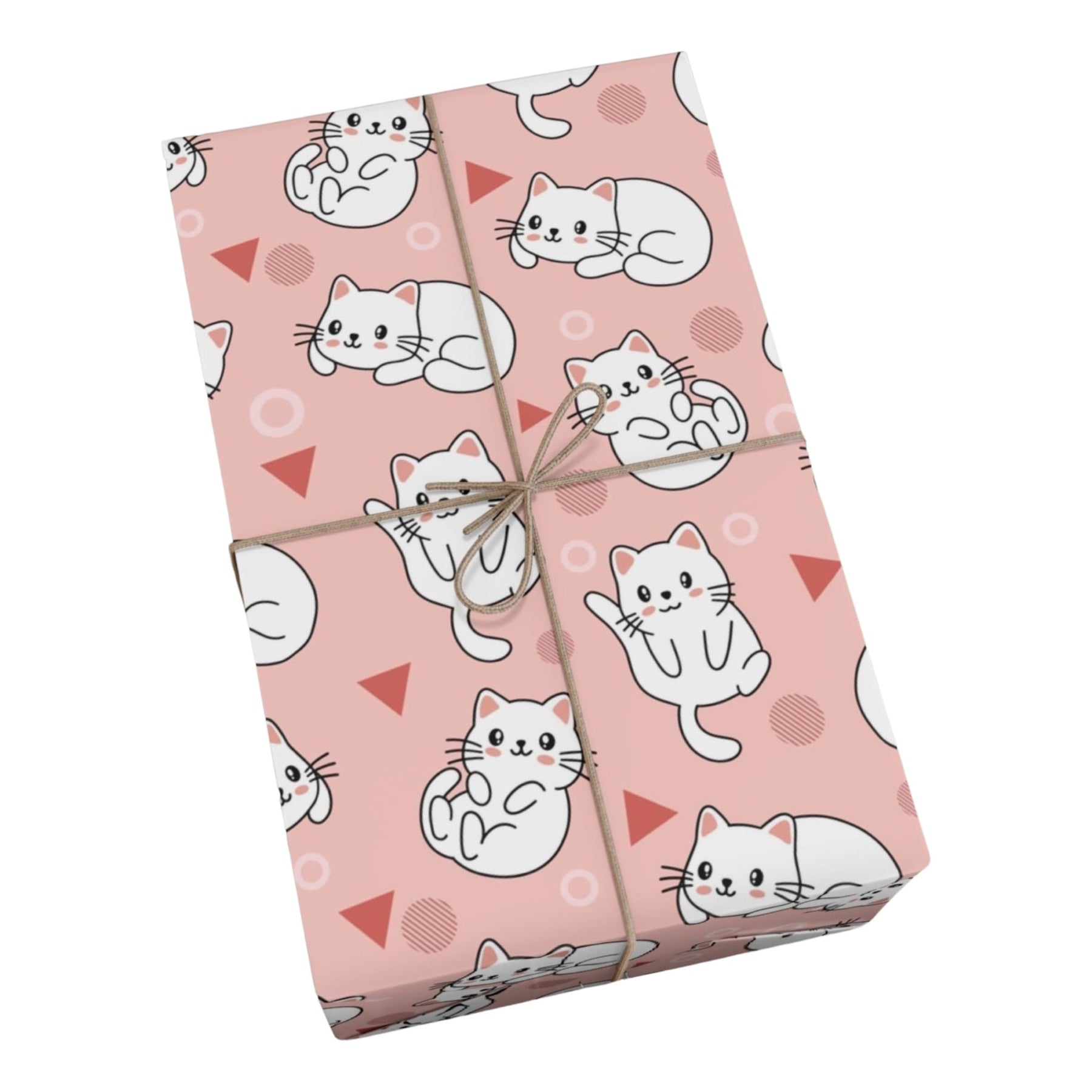 Introducing Playful White Cat Gift Wrap - a vibrant and whimsical way to package your special gifts! With a striking pink background and playful cartoon cats, this gift wrapping paper is sure to stand out from all the others. Your recipient will be delighted when they receive their gift presented in this cheery paper wrap.