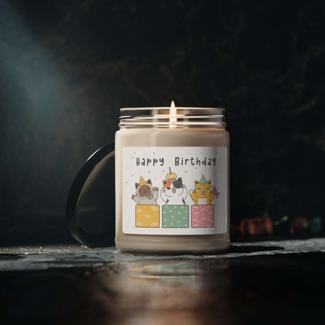 Are you ready to add a little feline fun and birthday magic to your space? Look no further than our delightful Box of Birthday Cats Scented Soy Candle!