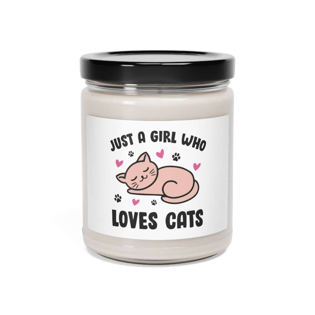 Imagine a world where your love for cats is not only celebrated but immortalized in a beautifully scented candle. Our 9oz. soy candle features a delightful white background adorned with a precious pink cartoon cat, curled up in blissful slumber. With the words "Just a Girl Who Loves Cats" proudly displayed, this candle exudes the essence of a true cat enthusiast.