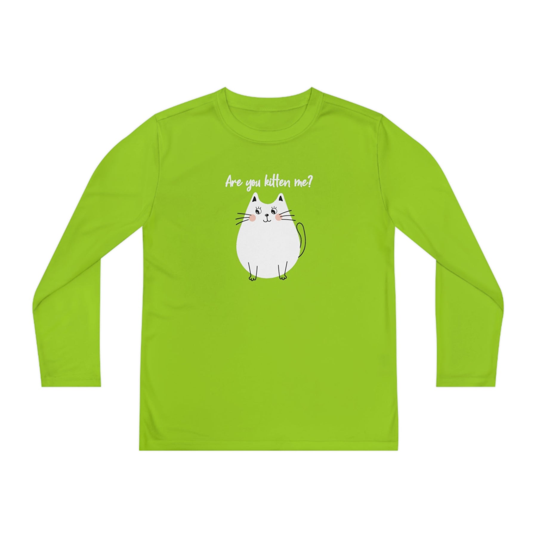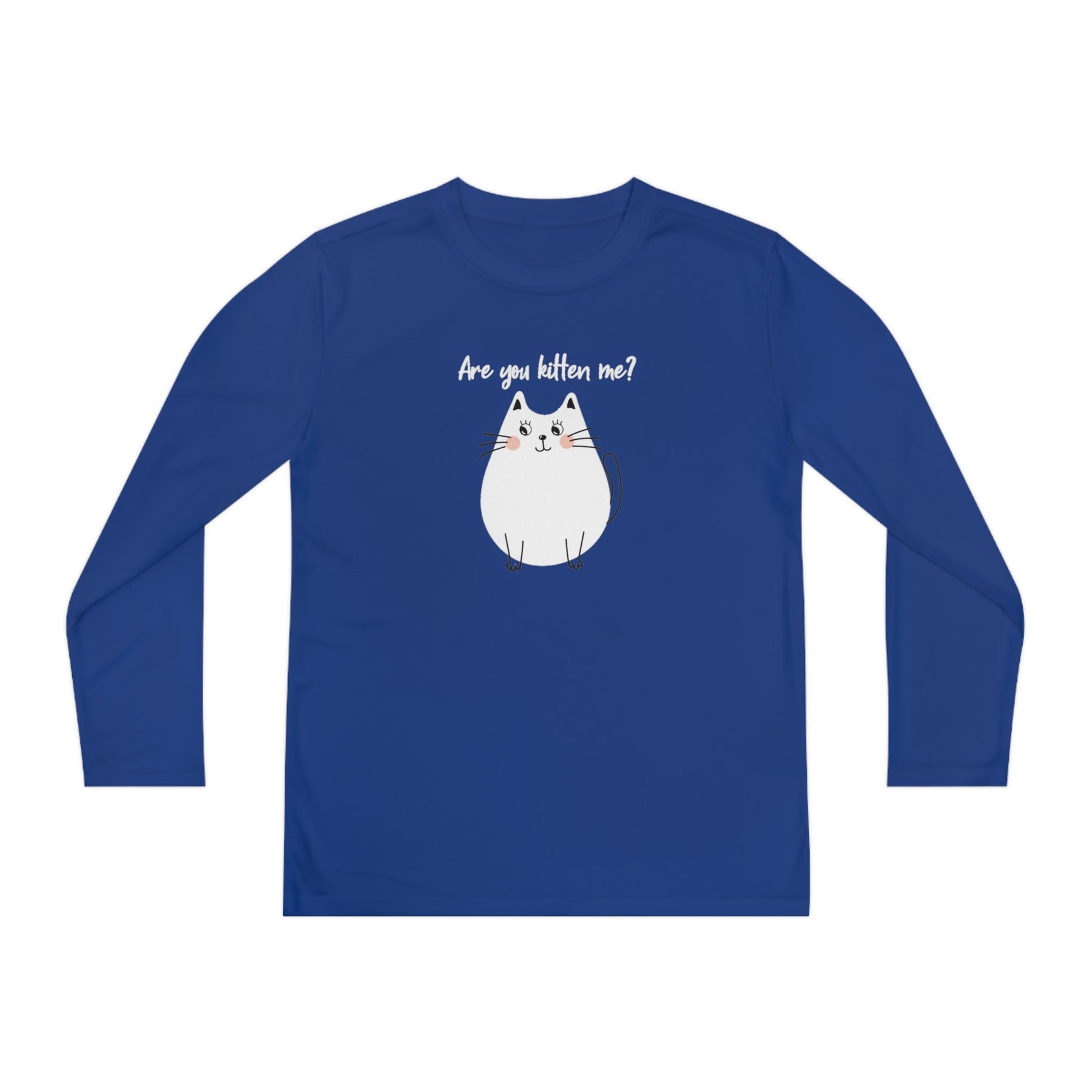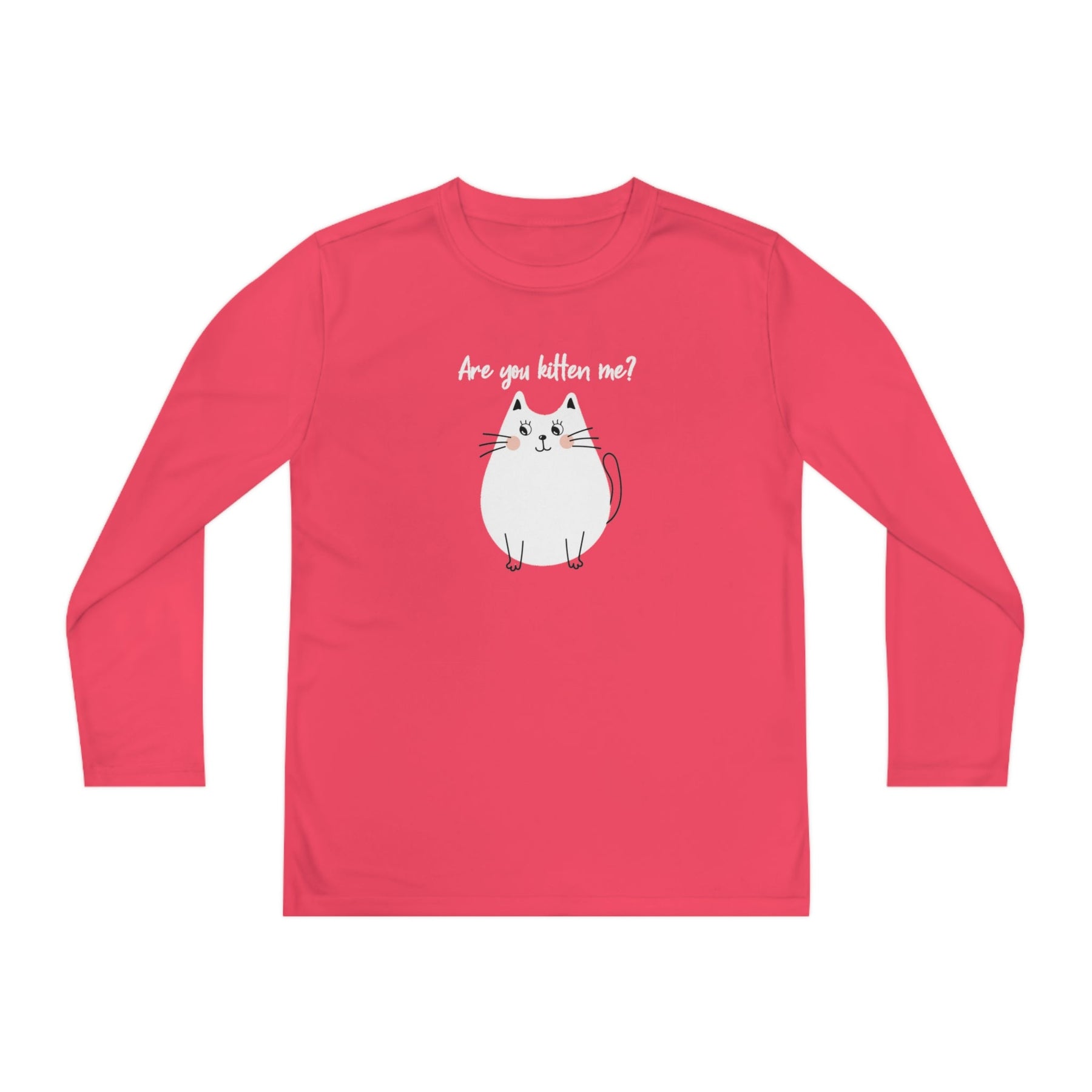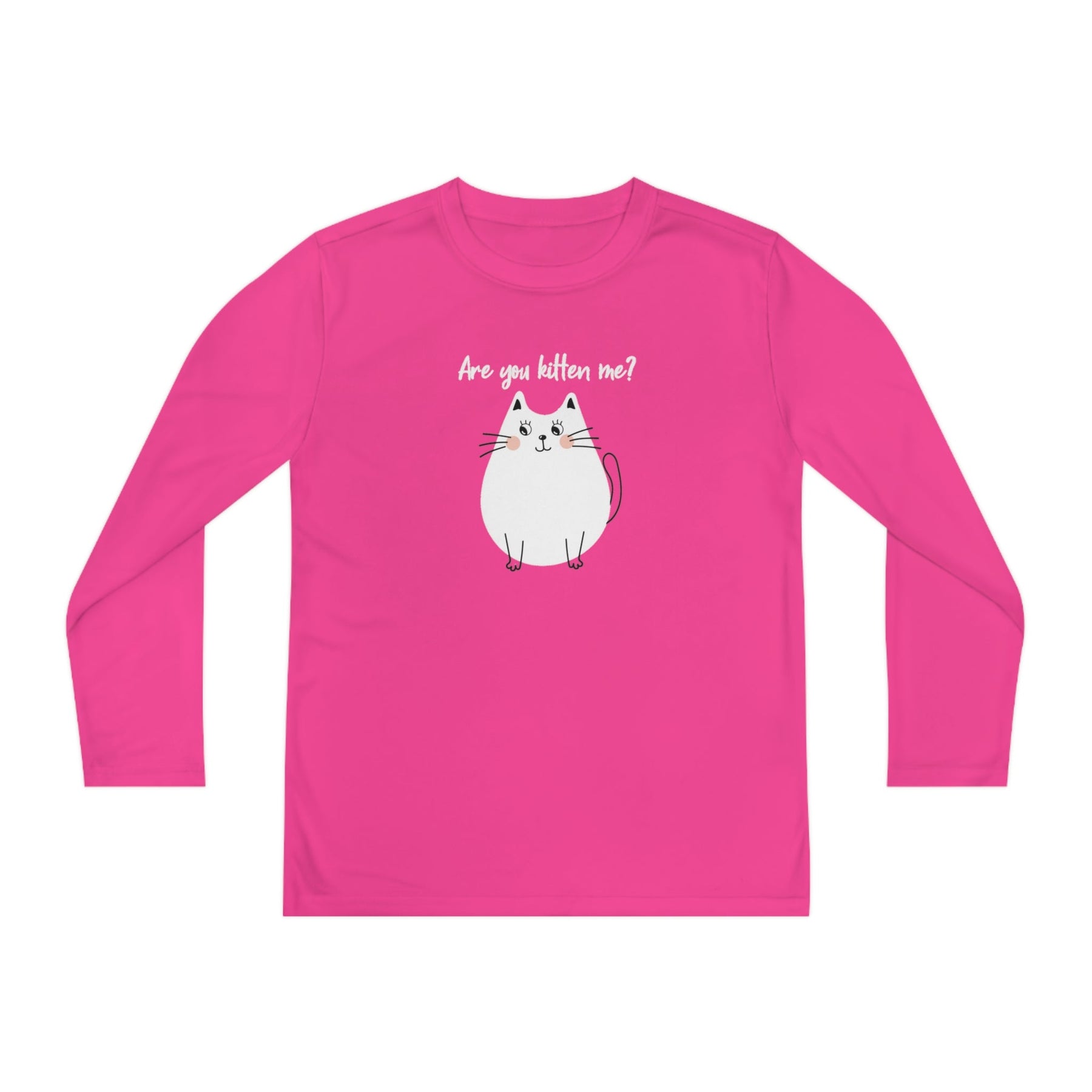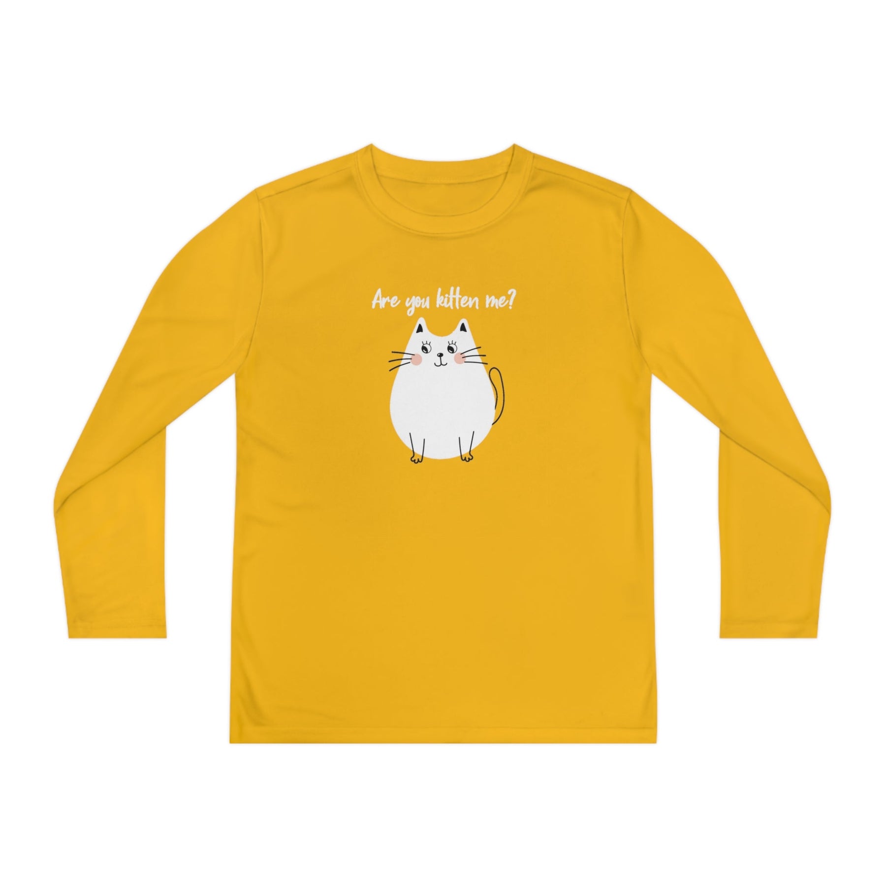 Head to the gym or the streets in stylish comfort with our Kitten Me Youth Long Sleeve Tee. Whether you’re a proud cat lover, an owner of multiple cats, or just a fan of cute and cuddly animals, this shirt is sure to be your new favorite fashion statement!