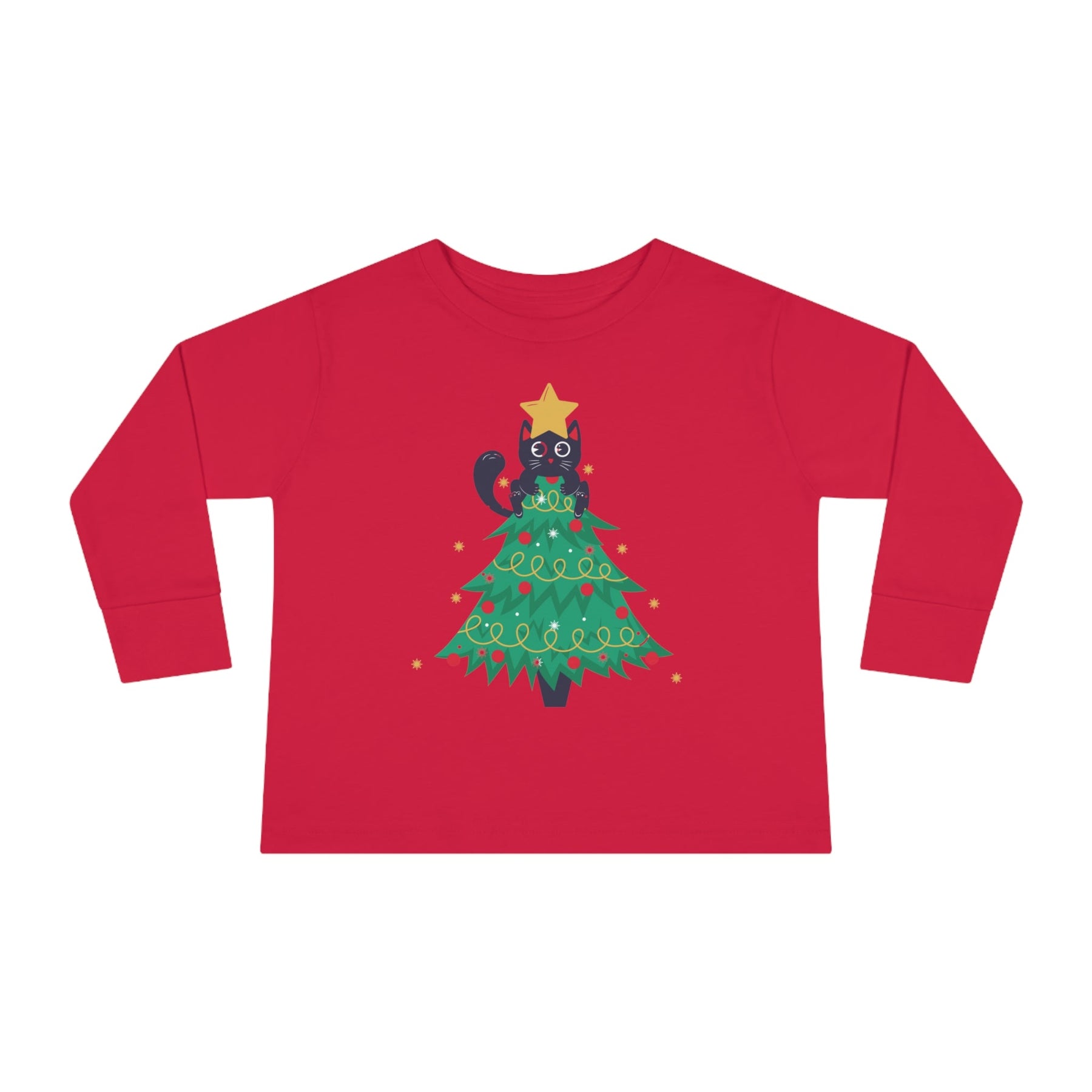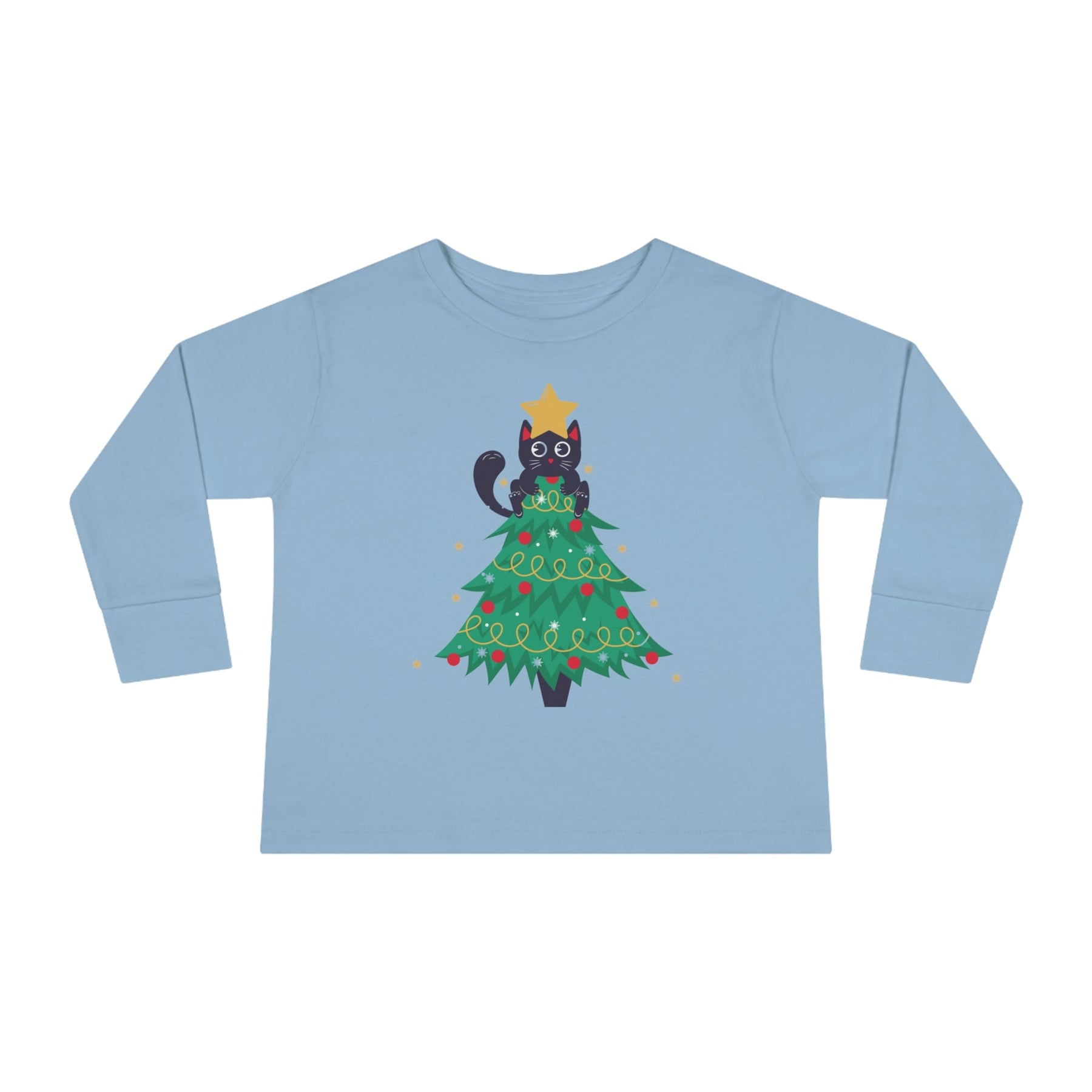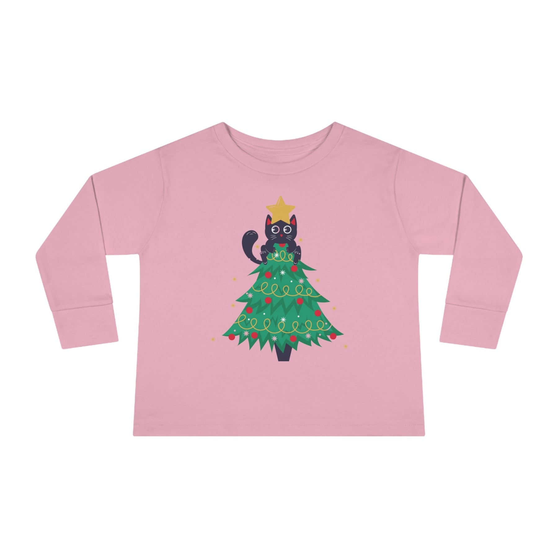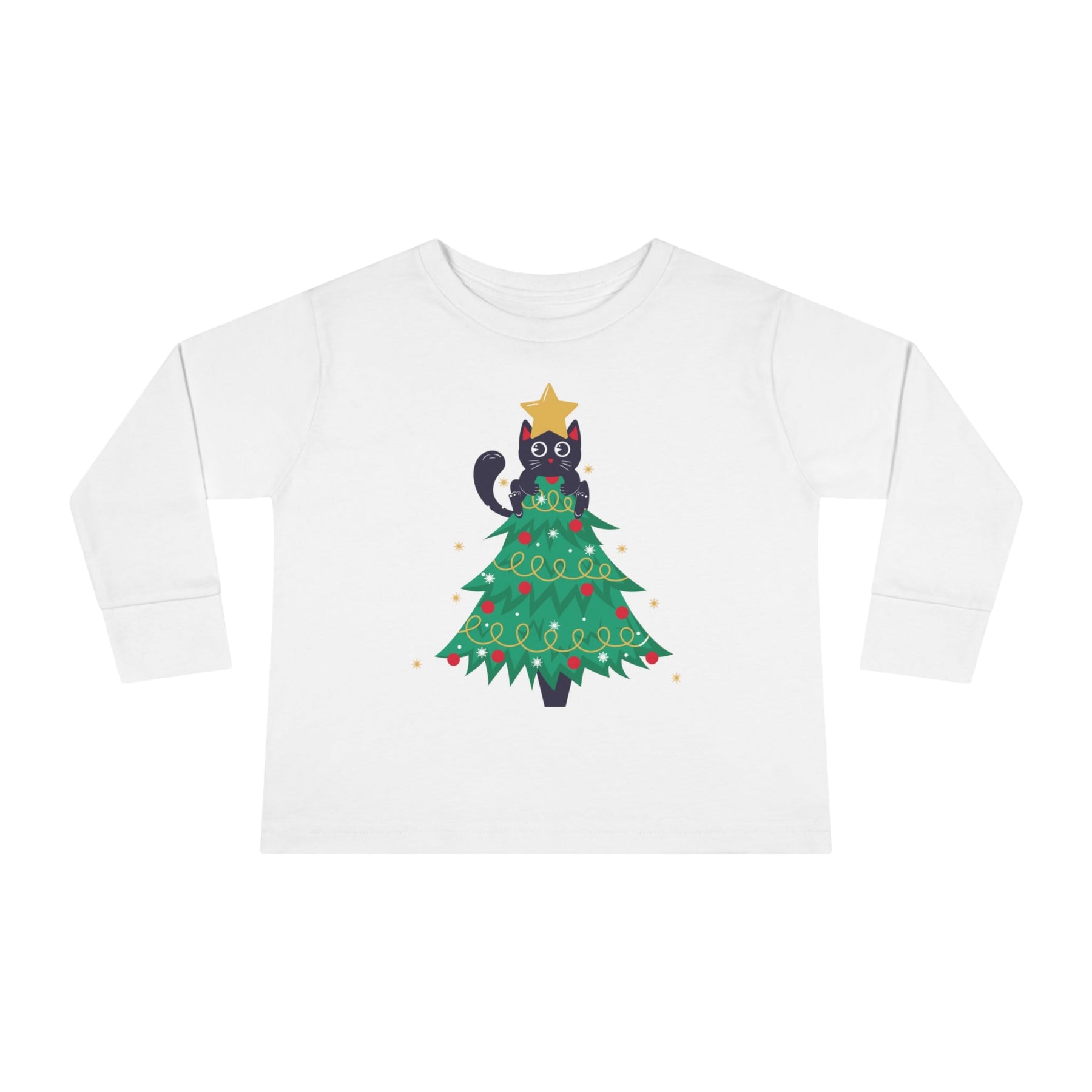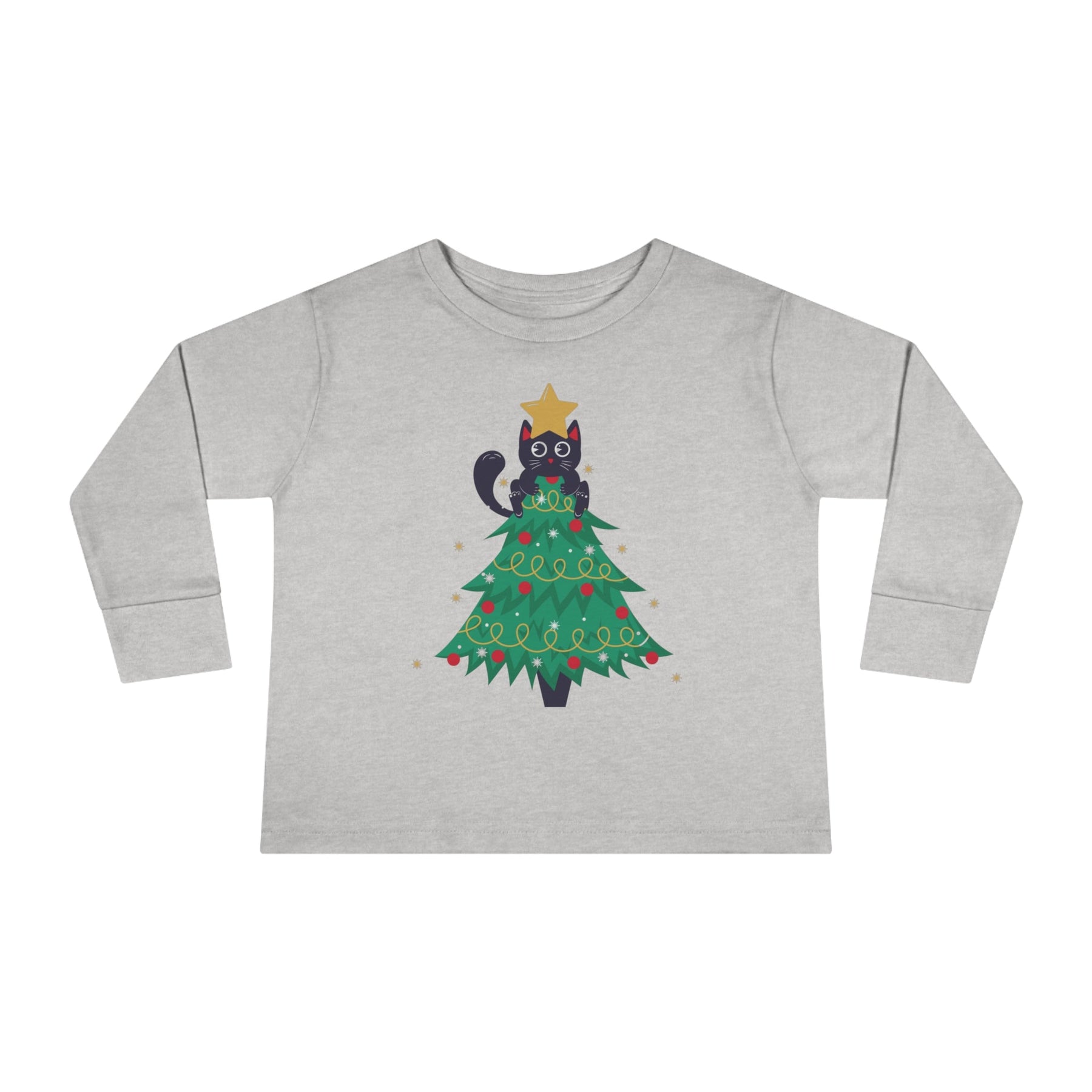 We know that cats hold a special place in your hearts. They are playful companions who bring joy and laughter to your everyday lives. So why not showcase your love for these furry friends in the most festive way possible? Whether you're decking the halls or attending a holiday gathering, our Cat Christmas Tree Toddler Long Sleeve Tee is the ultimate conversation starter.