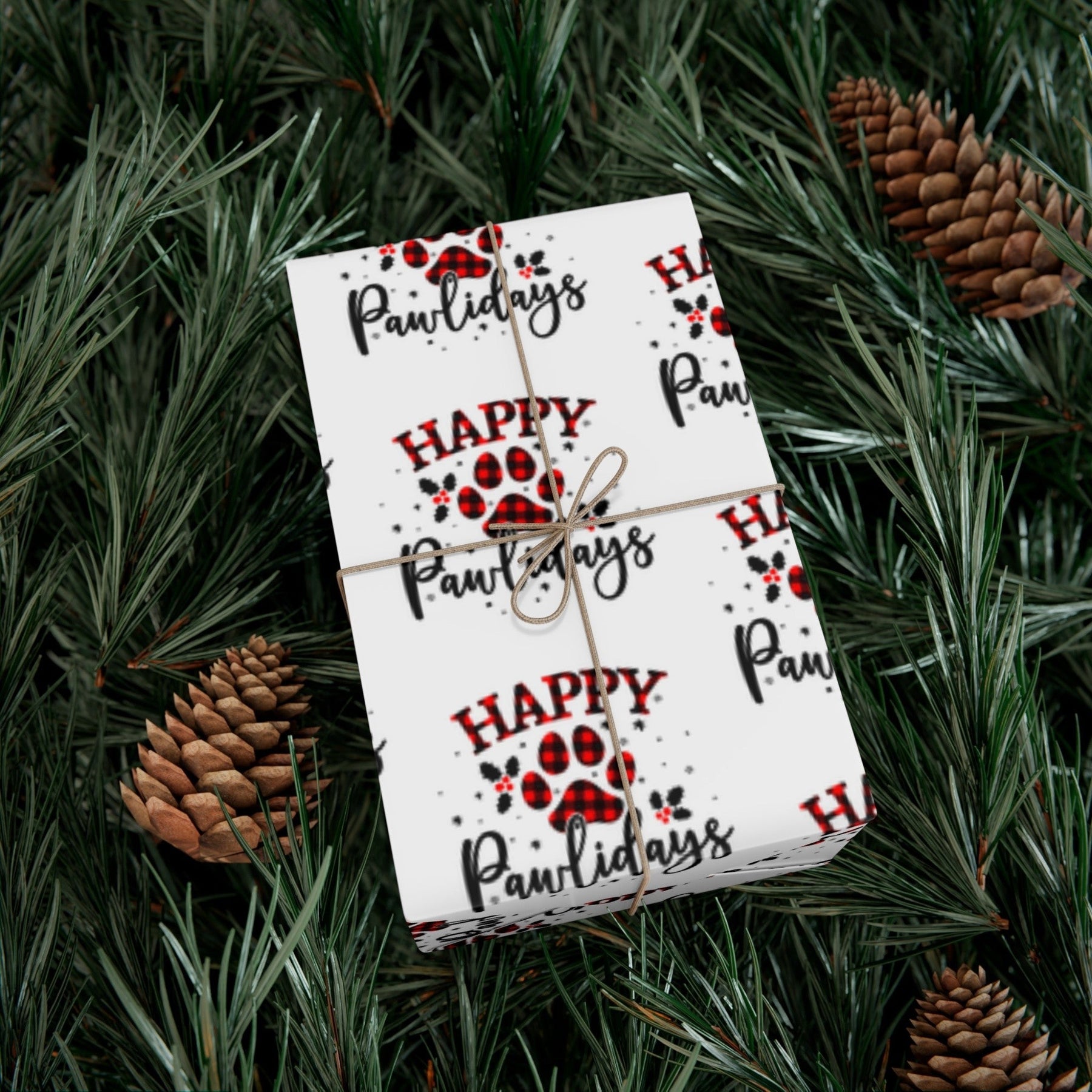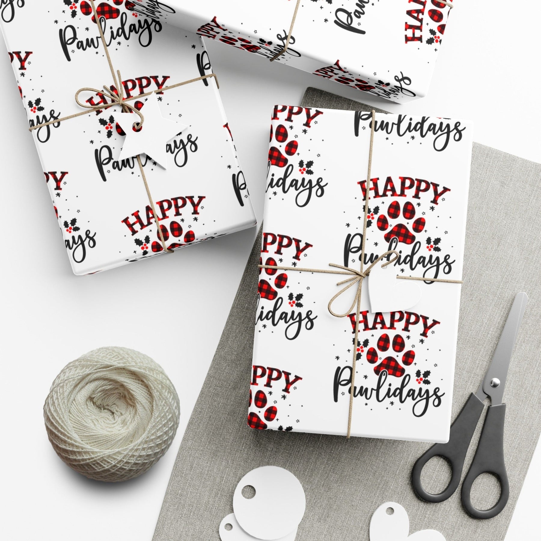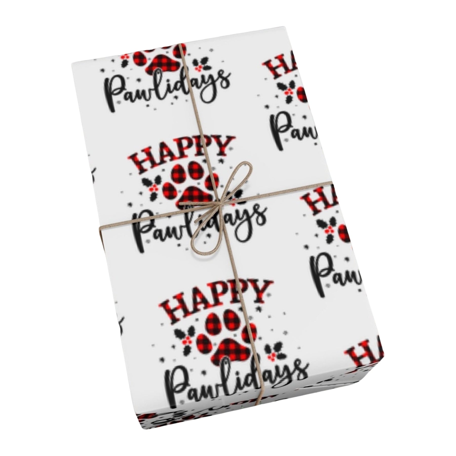 Are you looking for a gift wrap with a festive flair? Look no further than our Happy Pawlidays Gift Wrap! With a white background featuring a classic red and black plaid pawprint, plus green and red holly accents for a super special touch, you'll find it hard to resist the purrfectly paw-some holiday style!