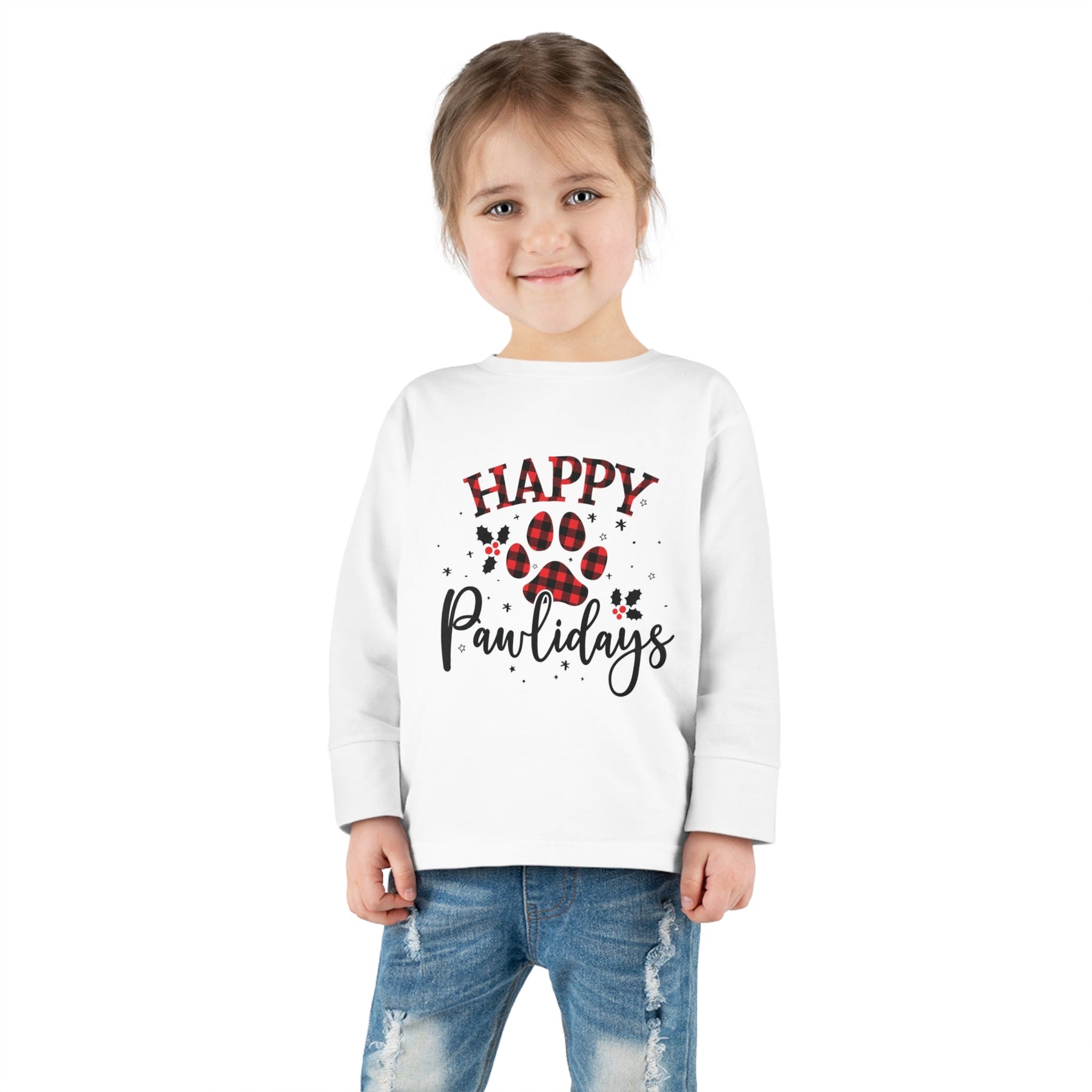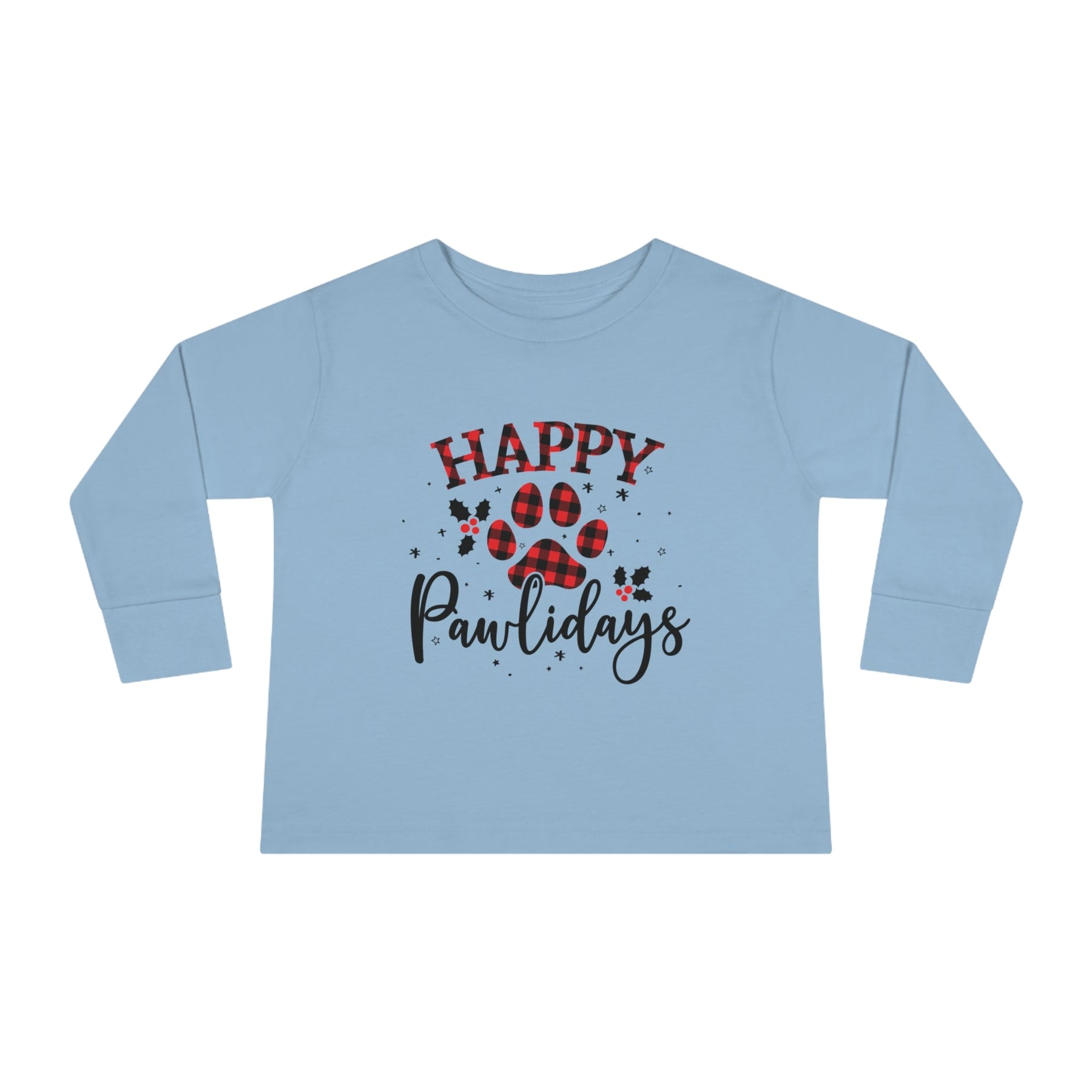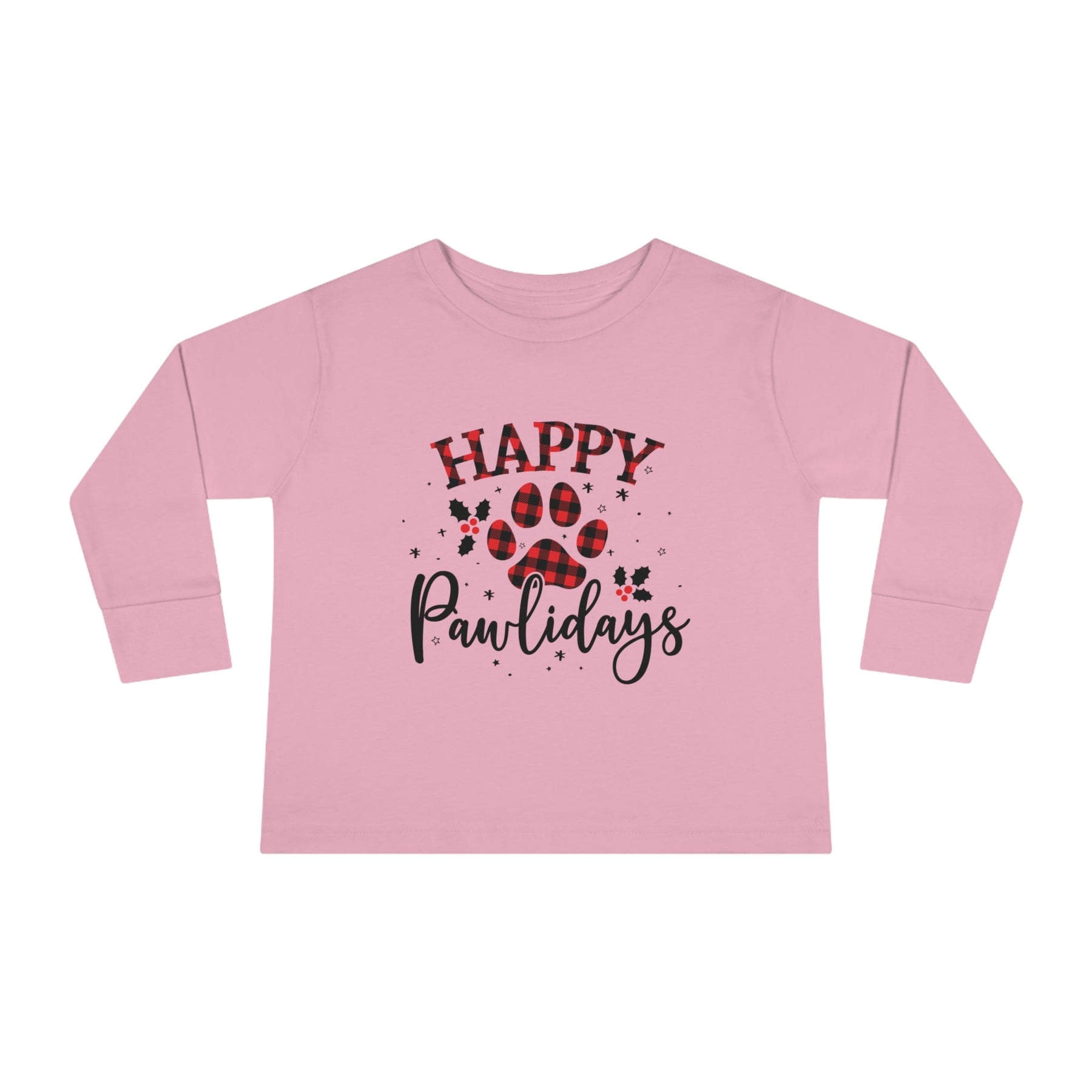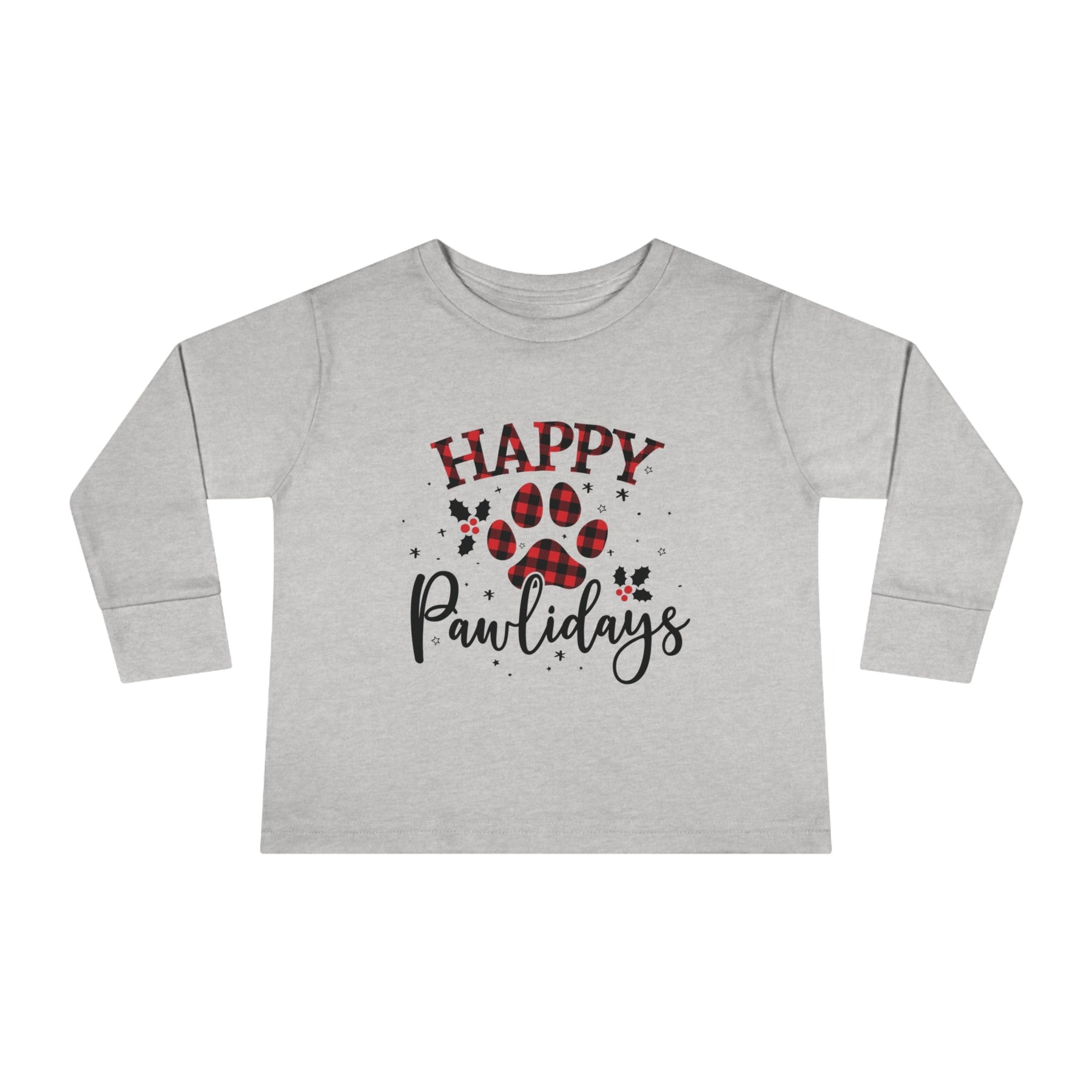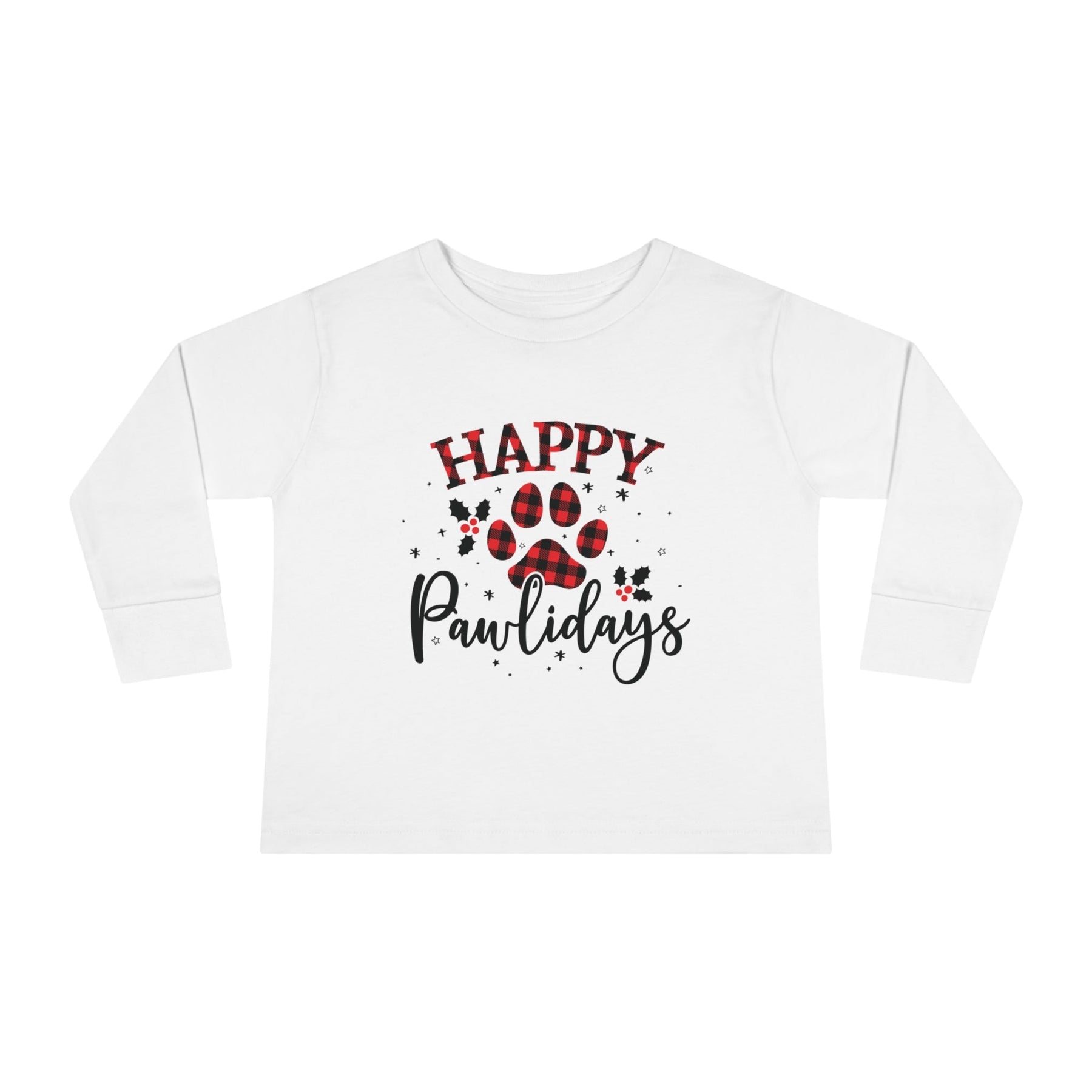 Put a smile on your little one's face this holiday season with the Happy Pawlidays Toddler Long Sleeve Tee!