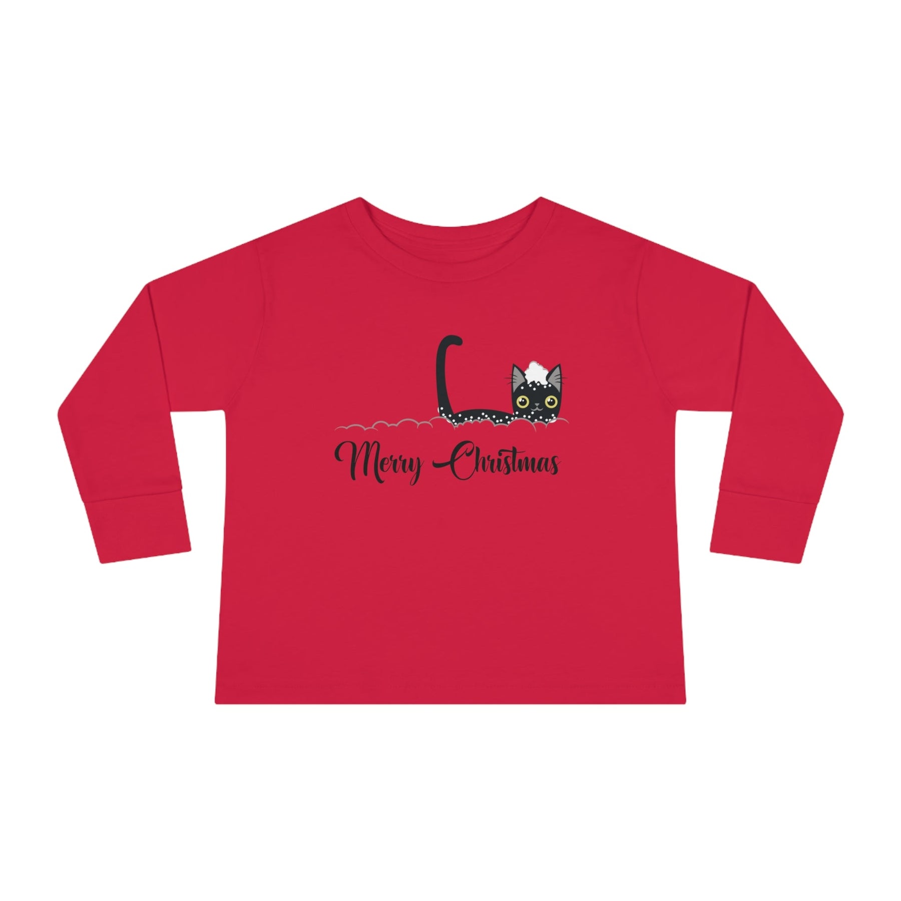 Celebrate the most pawsome time of the year with our Snowy Christmas Cat Toddler Long Sleeve Tee! This adorable holiday shirt is guaranteed to bring a smile to your little one's face and spread the festive cheer wherever they go.