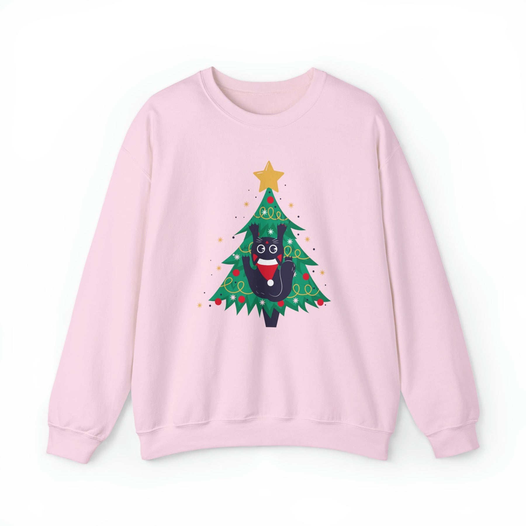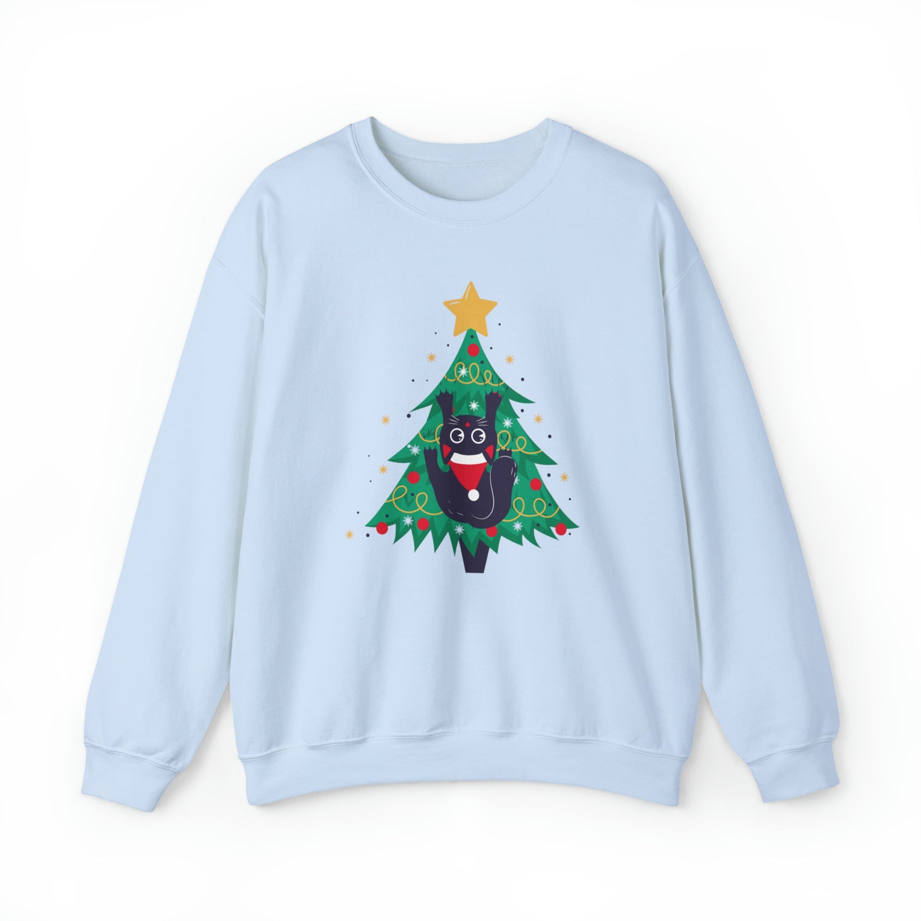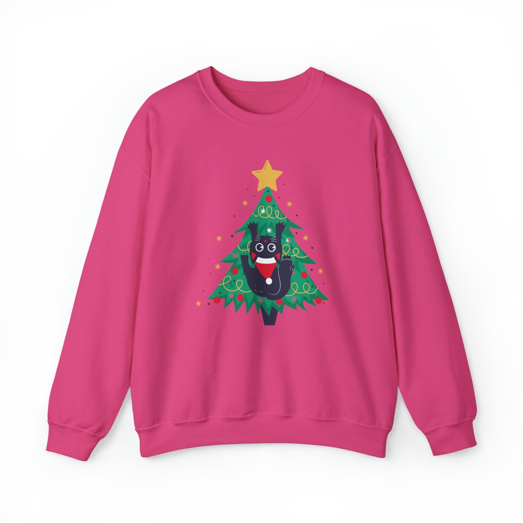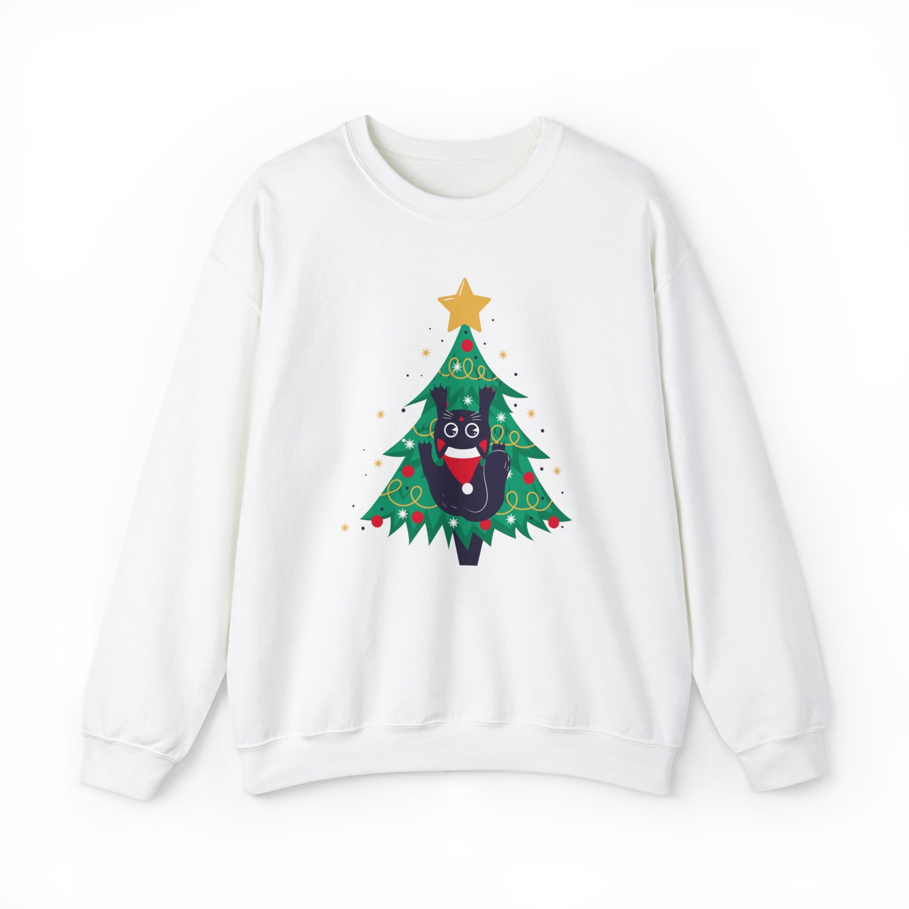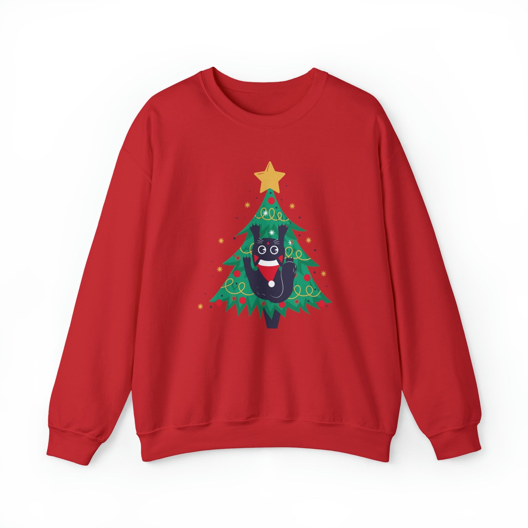 Deck the halls in style with the Tree Climbing Kitty Crewneck Sweatshirt!