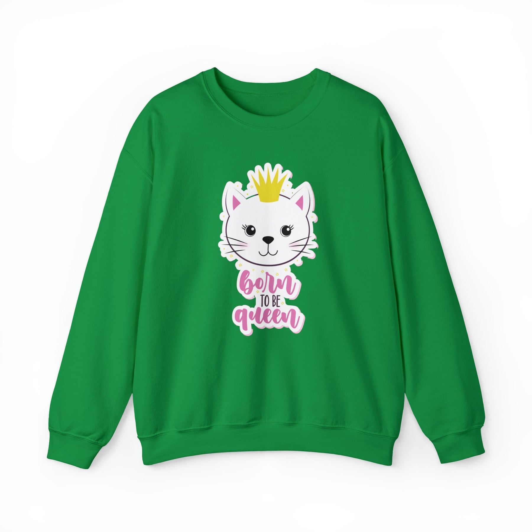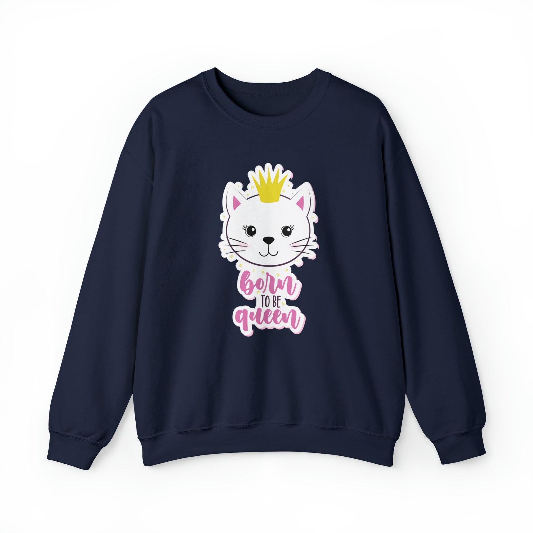 The cozy design incorporates an image of a white cartoon kitty with a golden crown and “Born to be Queen” text beneath it, making your great style plain for everyone to see.