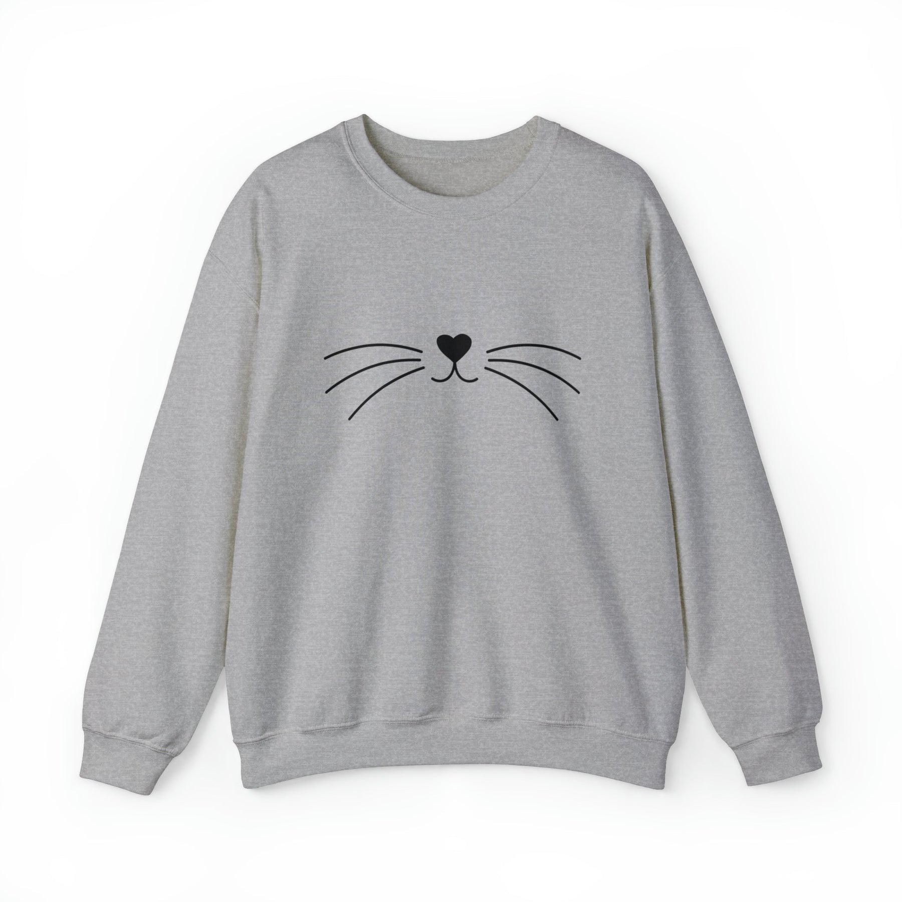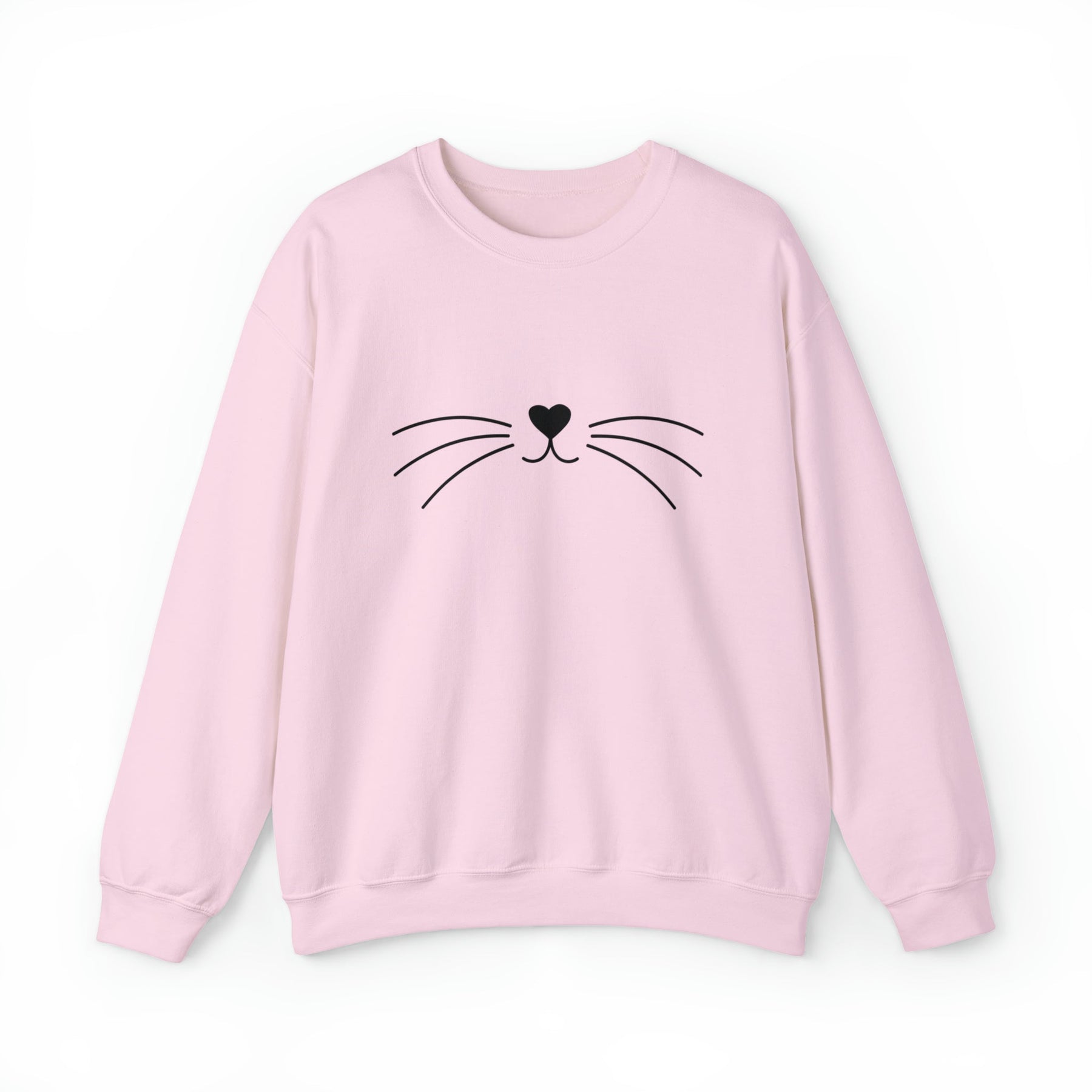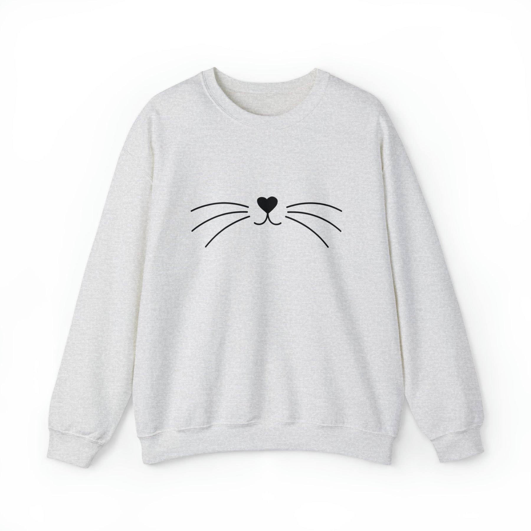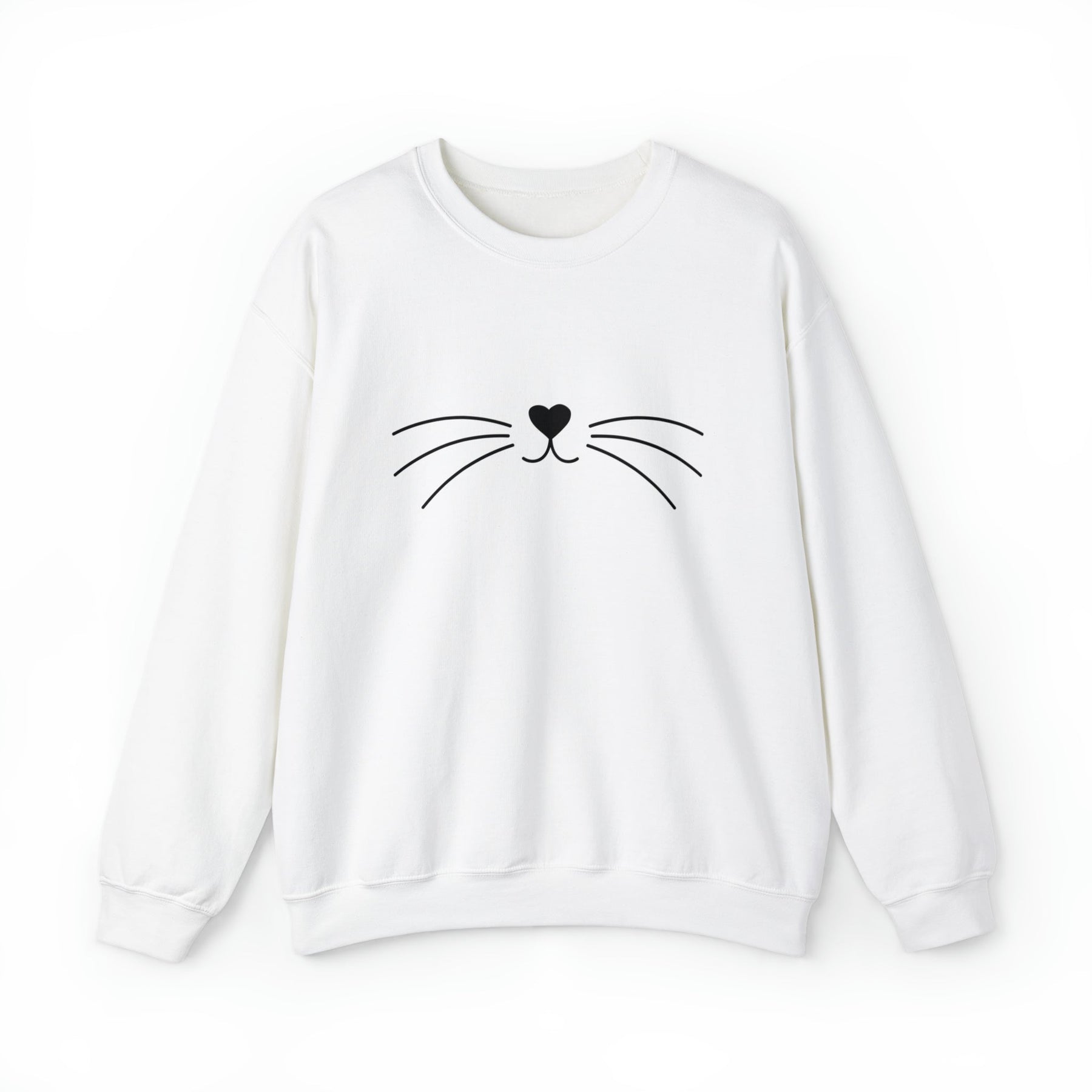 Looking for the perfect piece of loungewear? Go no further than our Whiskers Unisex Crewneck Sweatshirt! This cozy crewneck features a heart-shaped cat nose and cute black cat whiskers, so you can feel the love from your favorite feline pal in style.