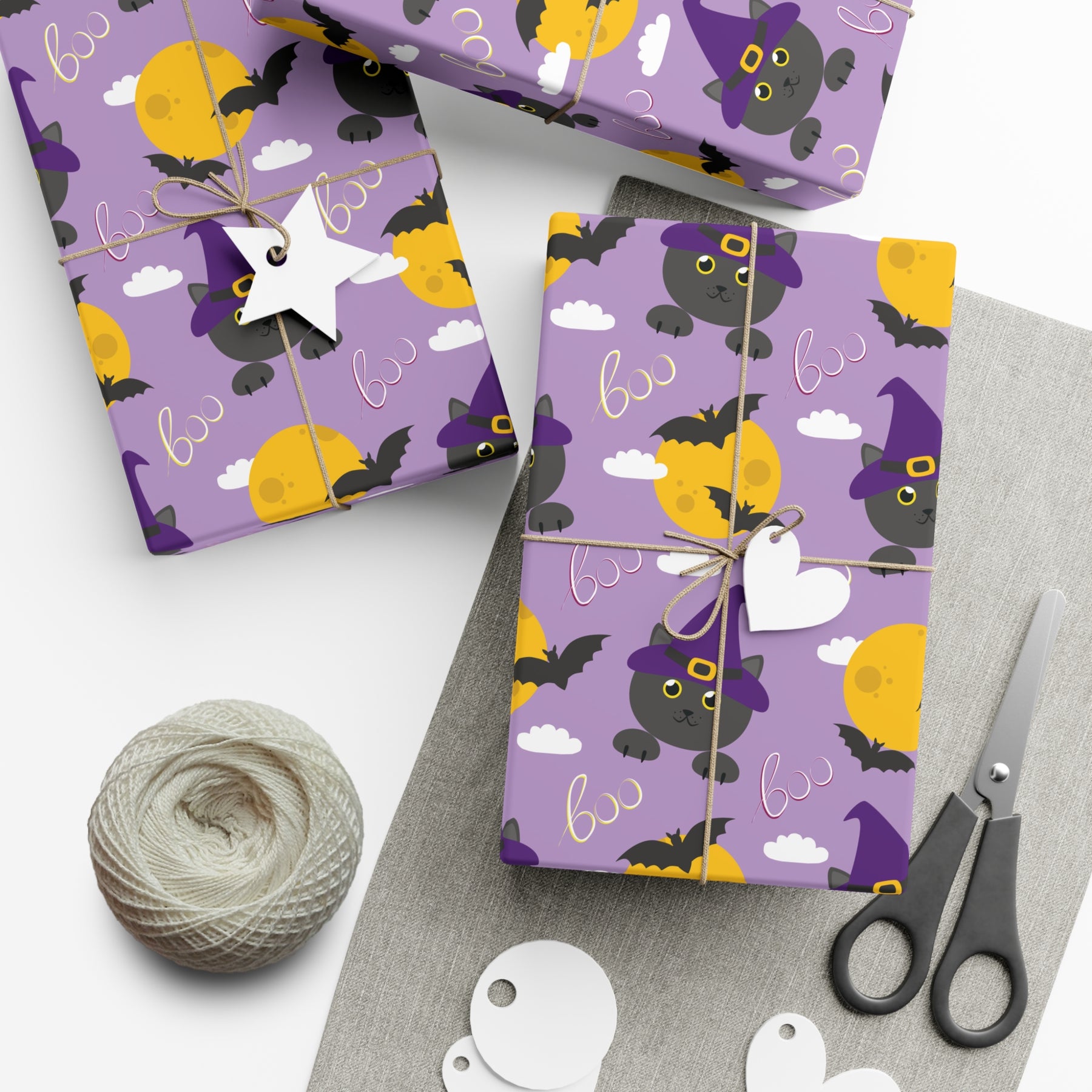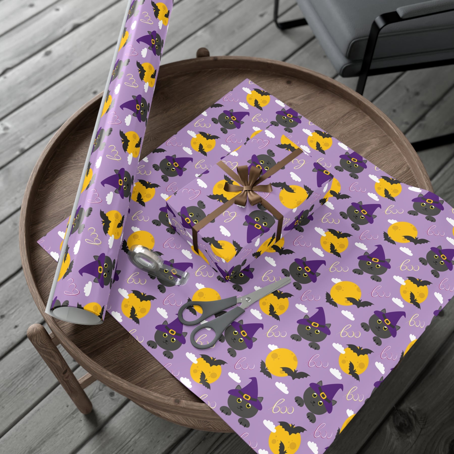 This gift wrap is not your average generic store-bought kind. It's high quality and features a delightful design that will bring a smile to anyone's face. Whether you're wrapping up a Halloween surprise for a friend or getting ready to host your annual costume party, our Boo-tiful Cat Gift Wrap will add that final touch of fun and whimsy.