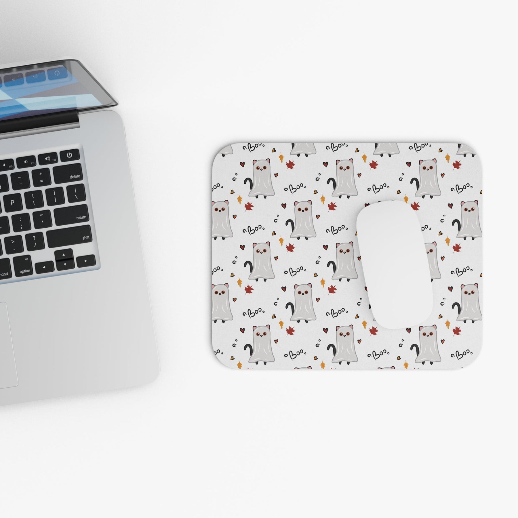 Trick-or-treaters of every age can spook up their workspace with our Ghost Cat Halloween Mouse Pad!