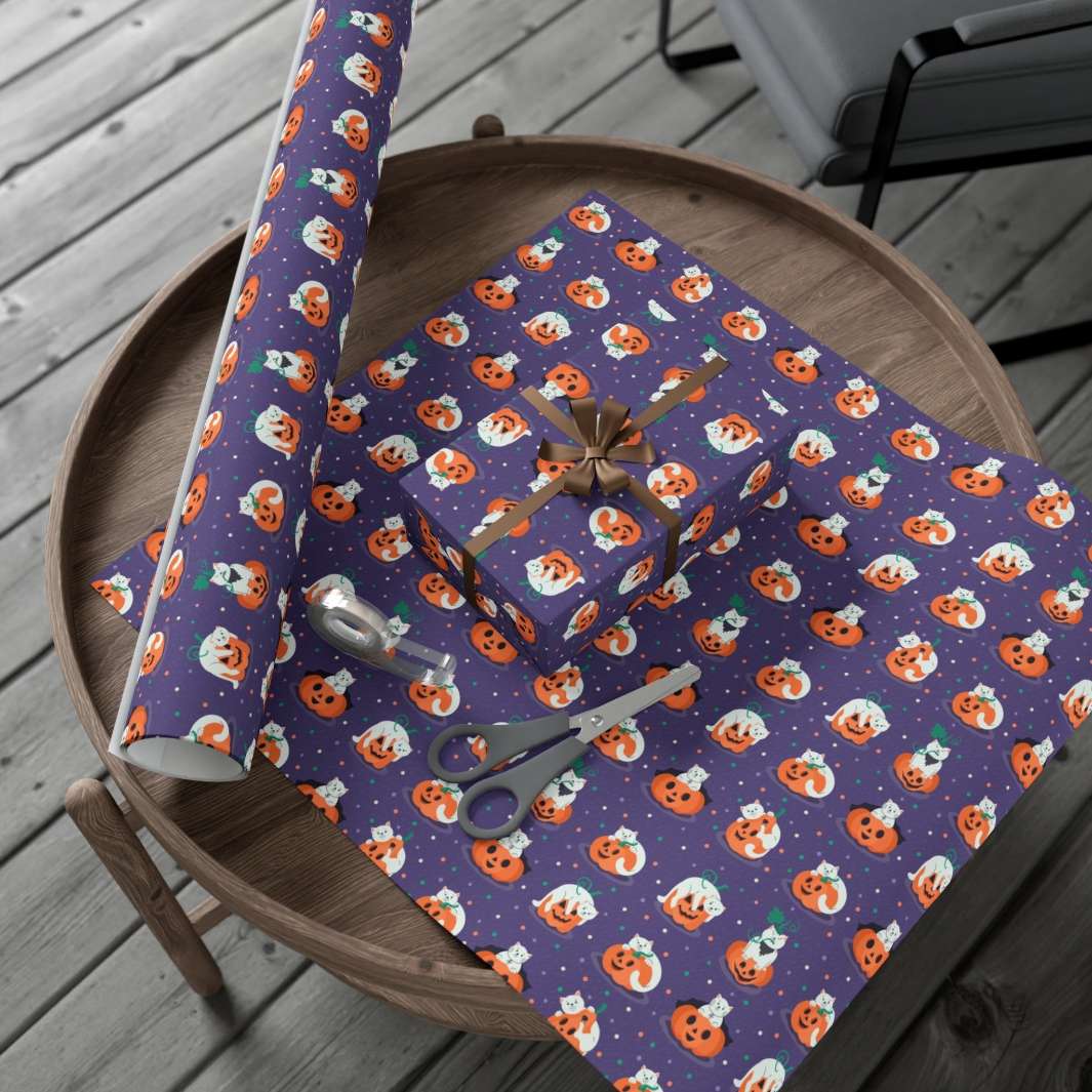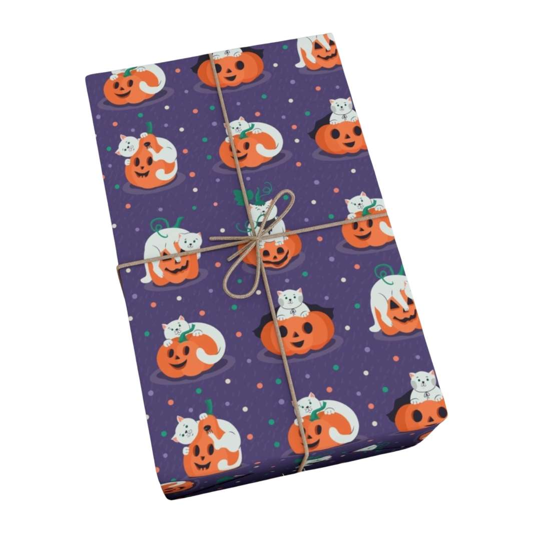Whether you're wrapping a present for a cat lover, celebrating a Halloween-themed birthday, or simply looking to add a touch of feline magic to your gift-giving routine, our Jack-o-Lantern Cat Gift Wrap is the ideal choice. Its vibrant colors, charming cartoon cats, and high-quality finishes are guaranteed to put a smile on the face of your loved one, setting the stage for a memorable and delightful unboxing experience.