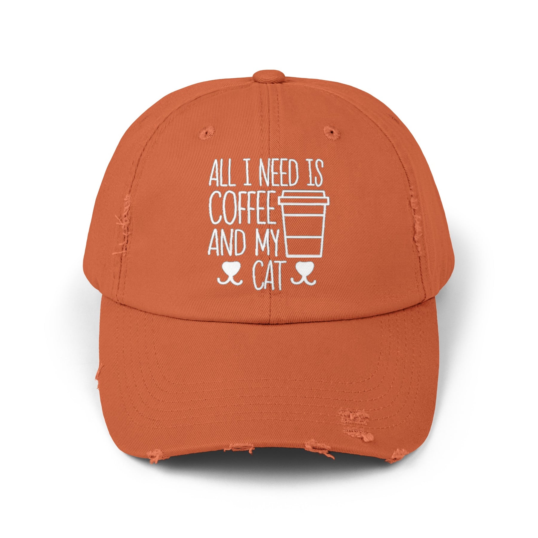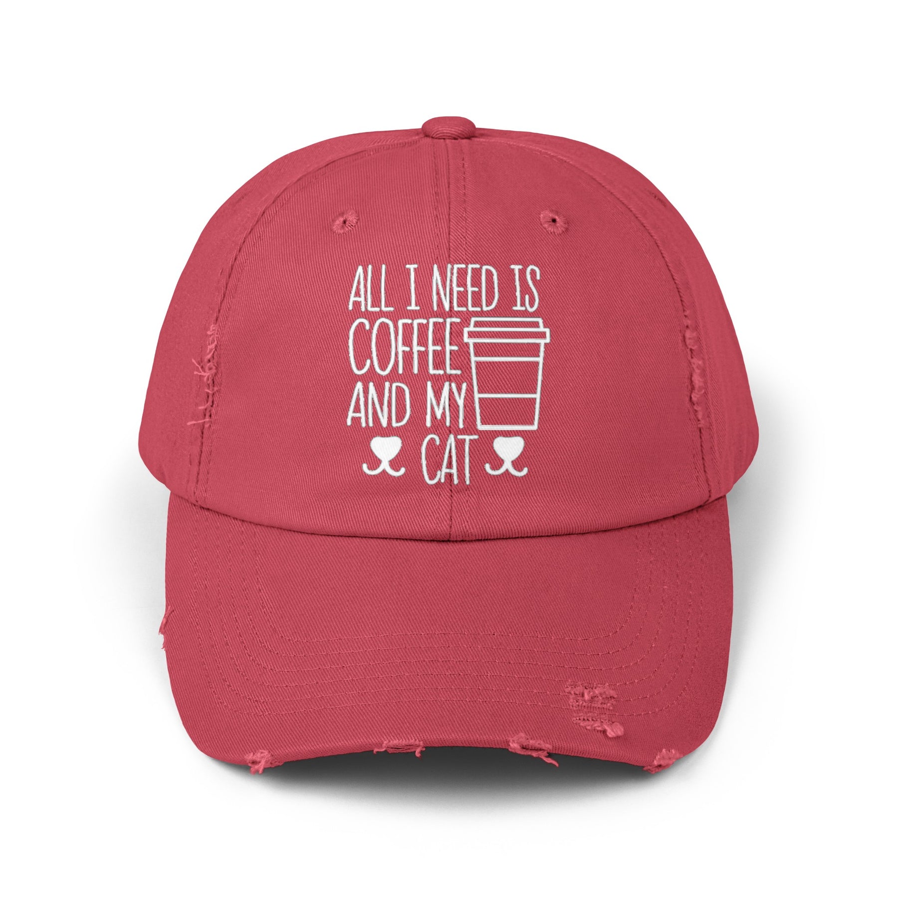 Are you a coffee lover? Have you ever experienced the pure joy of cuddling with your feline friend while sipping on a hot cup of joe? If you answered yes, then we have the perfect product for you. Introducing the Coffee and My Cat Unisex Distressed Hat, the ultimate accessory for any coffee and cat enthusiast.