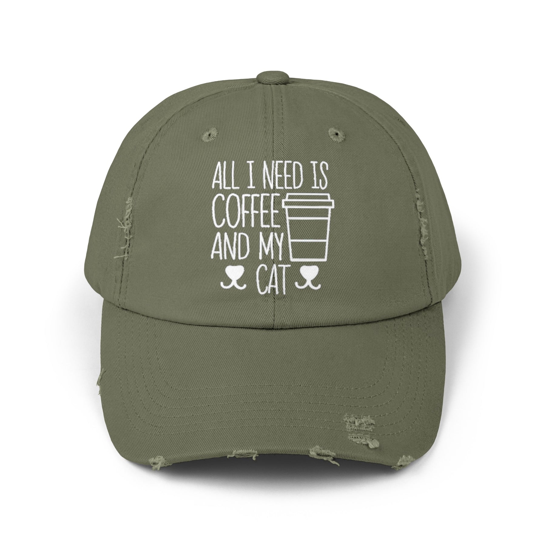 But what truly sets this hat apart is the iconic phrase embroidered on the front. "All I Need Is Coffee and My Cat" is a statement that every cat parent can relate to. As you wear this hat, you proudly declare to the world that your two loves in life are a good cup of coffee and your beloved feline companion.