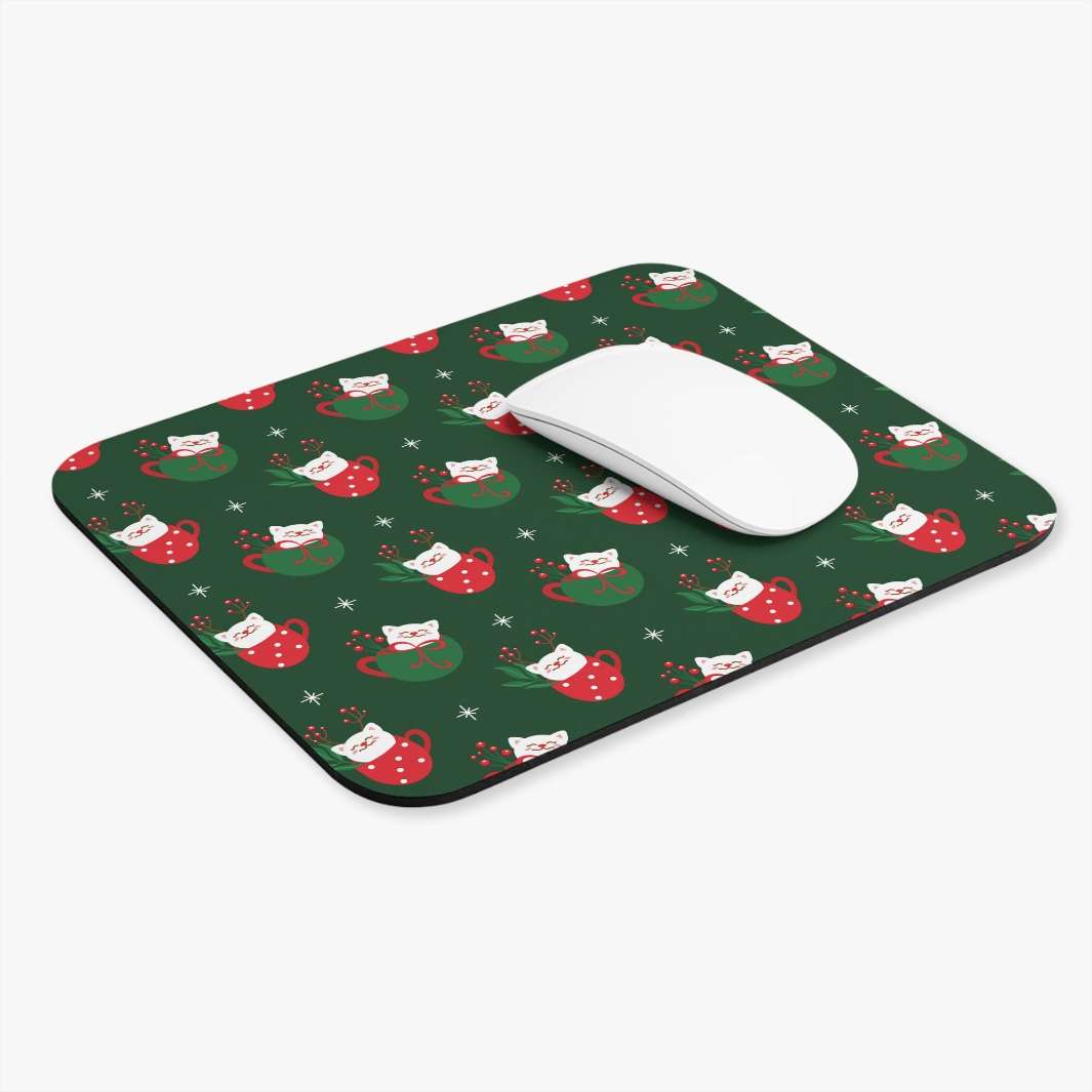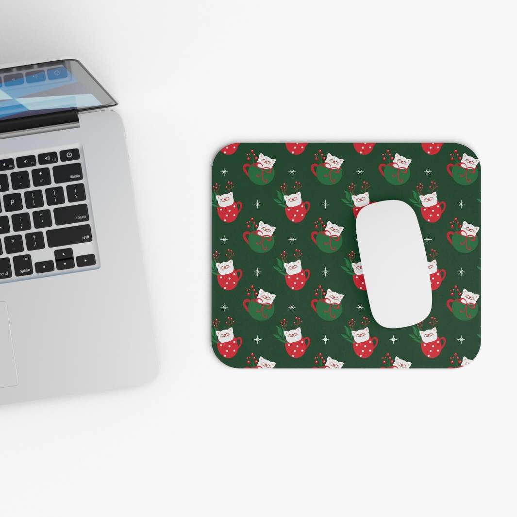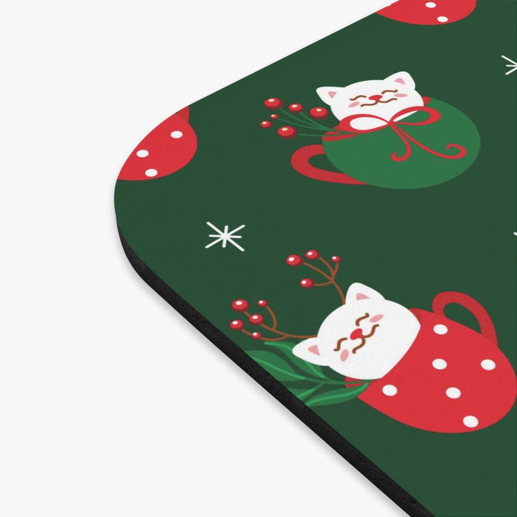 So why wait? Treat yourself or someone special to the magic of the holiday season with our Cat Christmas Cup Mouse Pad. The combination of festive hues, adorable feline friends, and the alluring touch of holly will transport you to a winter wonderland, perfect for indulging in some holiday spirit right at your fingertips. Transform your workspace into a joyous haven with this delightful mouse pad today!
