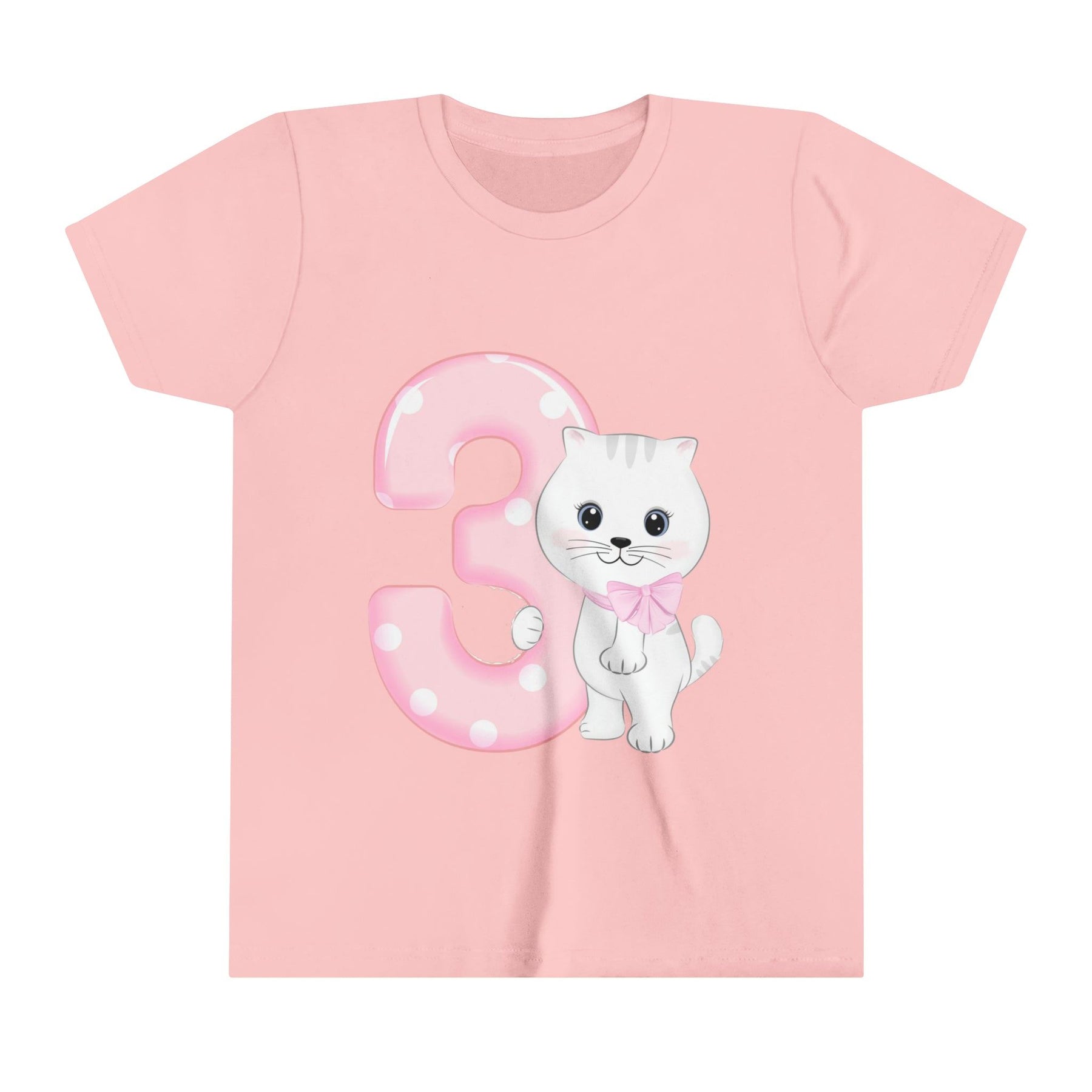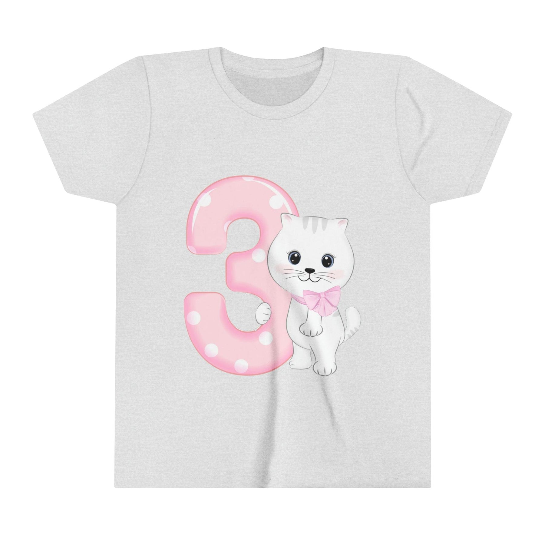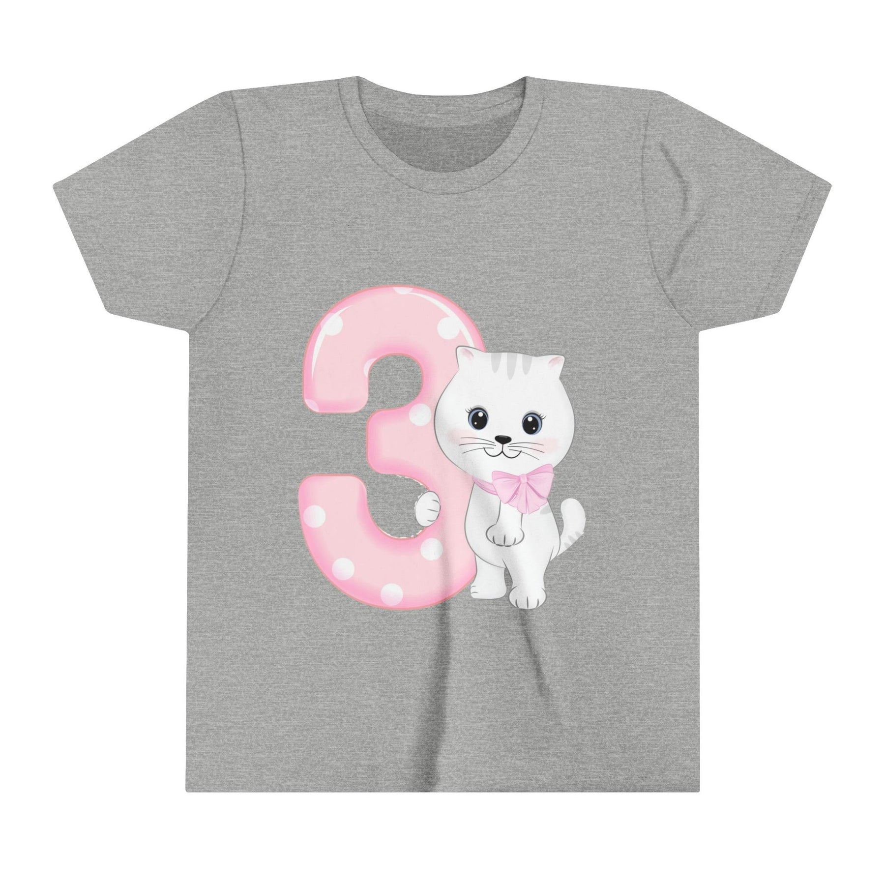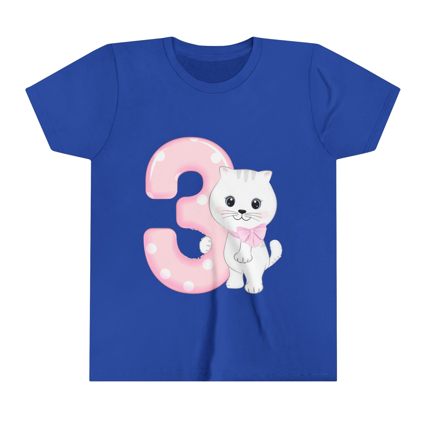 Make sure to pick up the Happy 3rd Birthday Cat Youth Short Sleeve Tee before your little one’s special party. With its cute and playful design, it’s sure to make your child the center of attention. It’s the perfect way to make your tiny tot smile on their birthday. Let them be the life of the party with this adorable shirt!
