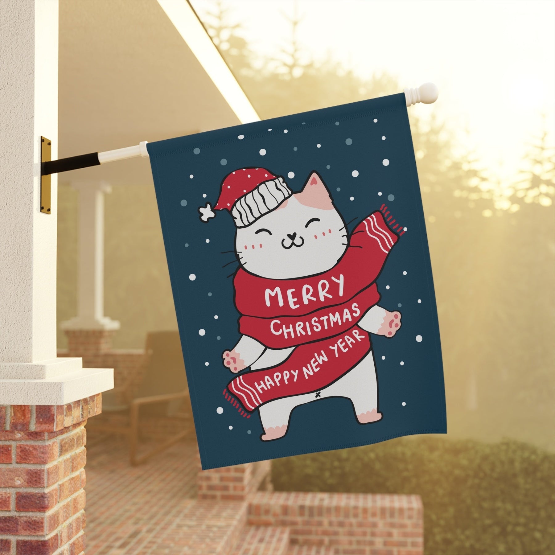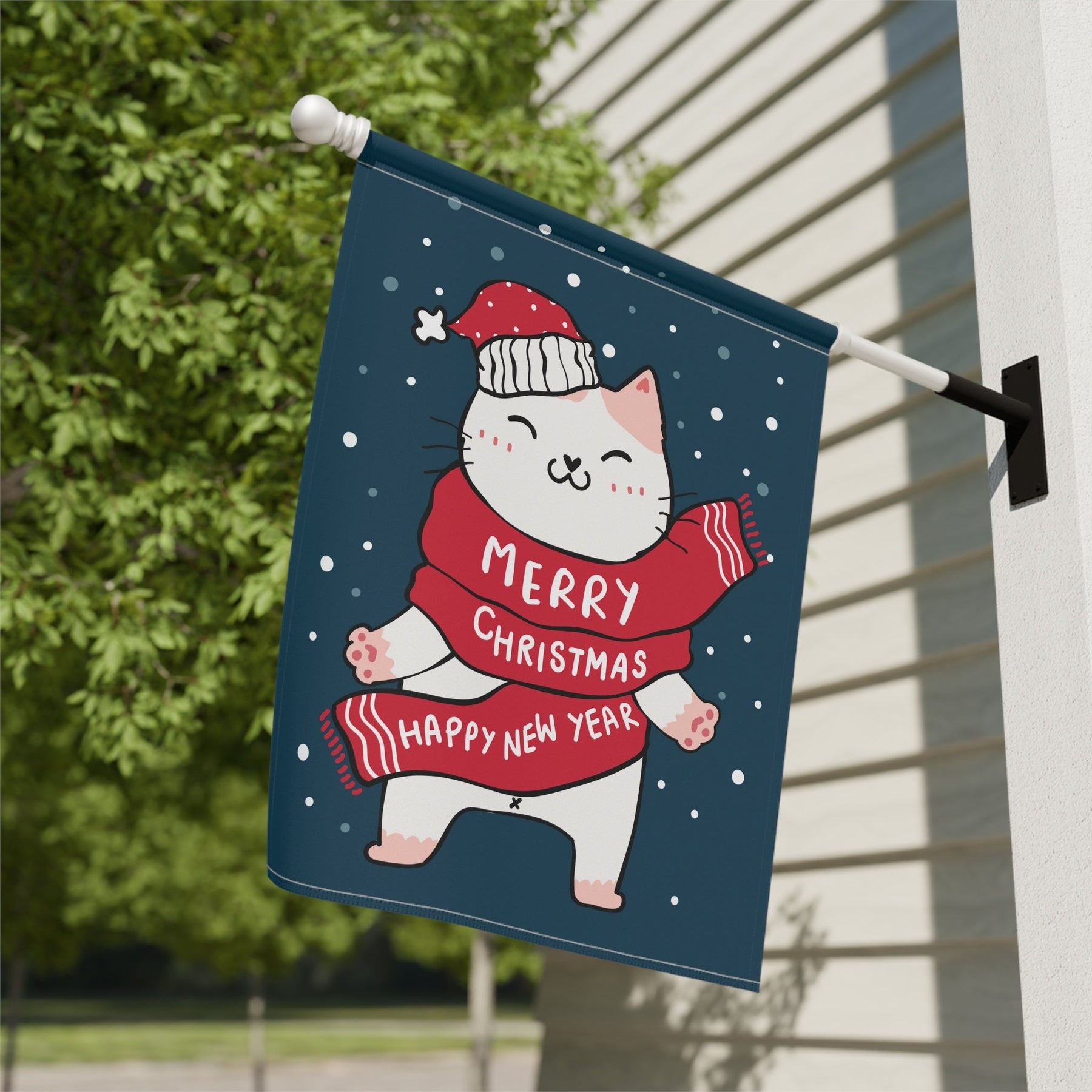 Imagine the joy and delight your family, friends, and neighbors will feel as they pass by and catch a glimpse of this festive feline. Whether it's greeting guests at the front of your home, brightening up your garden, or even as an eye-catching decoration for a holiday event, our Holiday Greetings Cat Garden & House Banner is sure to make a lasting impression.