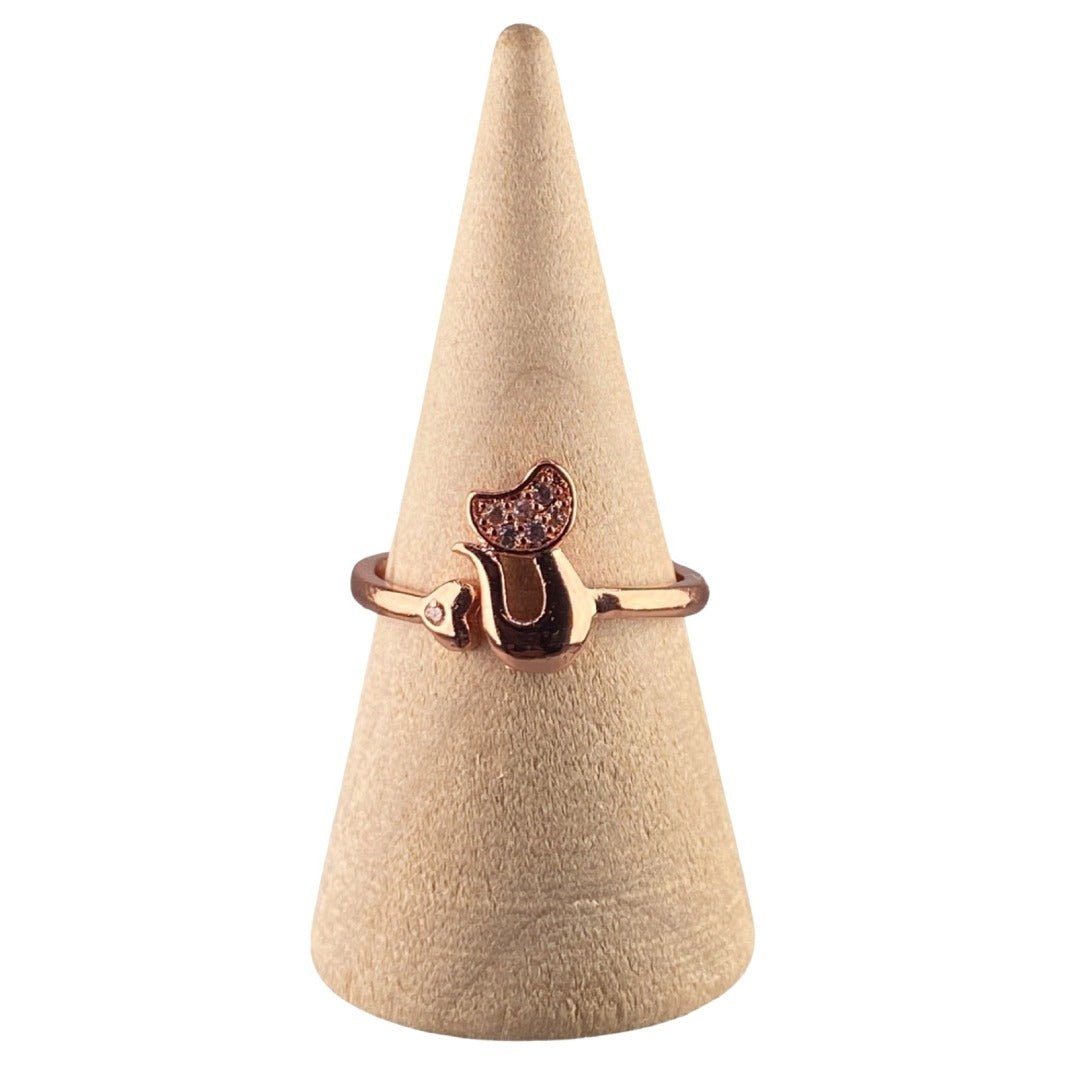 With its adjustable band, this ring is a contemporary twist on timeless elegance. Its sleek design and intricate setting make it a must-have accessory that will complement any style. But what truly steals the spotlight is the adorable rhinestone-encrusted cat head that adorns the top of the ring. It's impossible to resist its charm and undeniable cuteness.