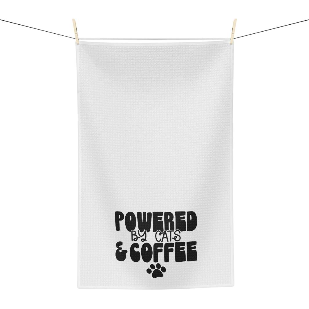 Crafted from the finest quality materials, this tea towel is designed to surpass your expectations in both style and functionality. The pristine white background sets the stage for the bold and captivating statement that reads "Powered by Cats and Coffee". As you run your fingers over the irresistibly soft fabric, you'll notice the meticulous attention to detail, from the precise black paw print that accompanies the text, to the flawless finishing touches.