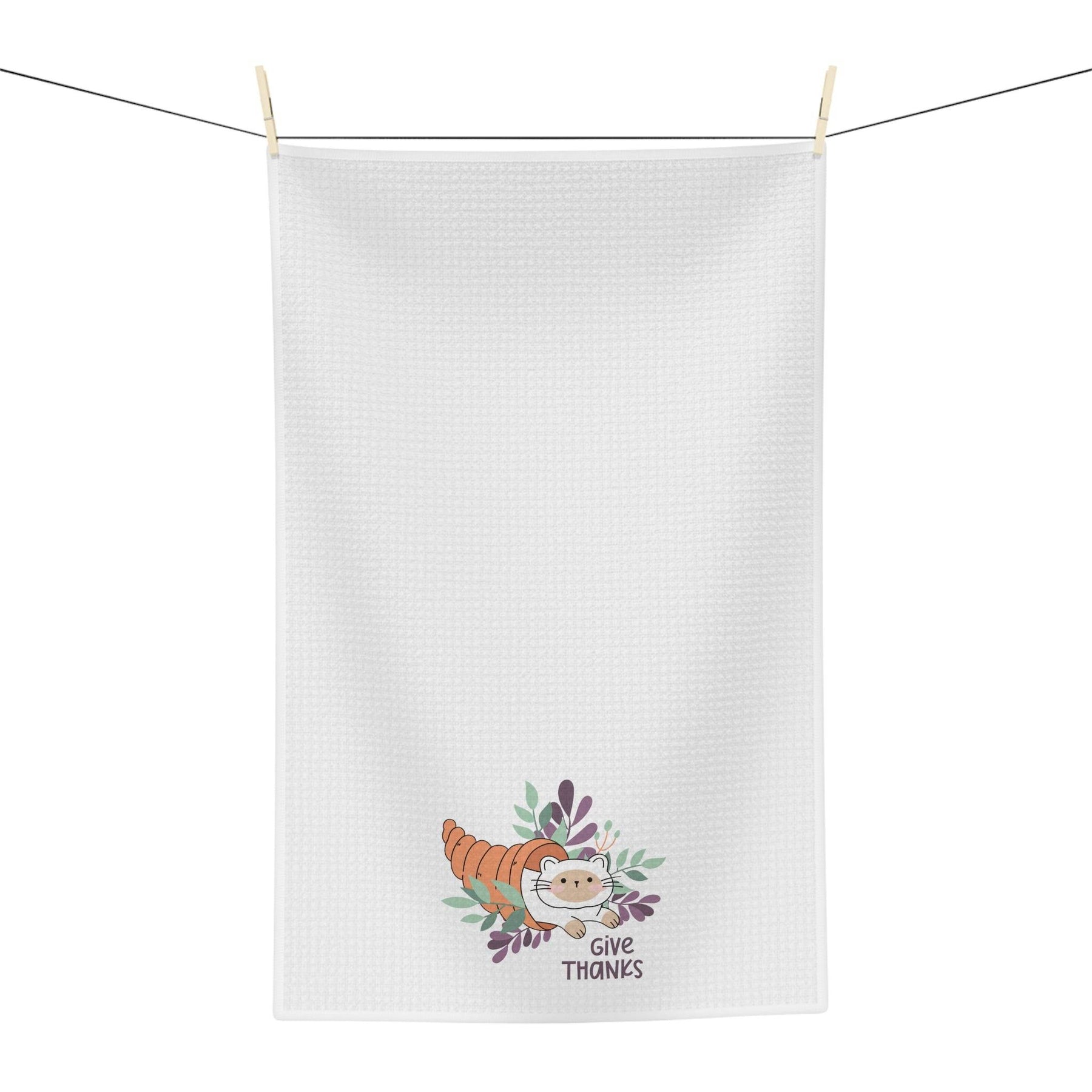 Introducing the purrfectly adorable Cornucopia Kitty Soft Tea Towel! With its whimsical design and cozy charm, this is more than just your average tea towel. Get ready to fall head over paws in love with its delightful cartoon cat nestled snugly in a cornucopia, reminding us all to "give thanks."