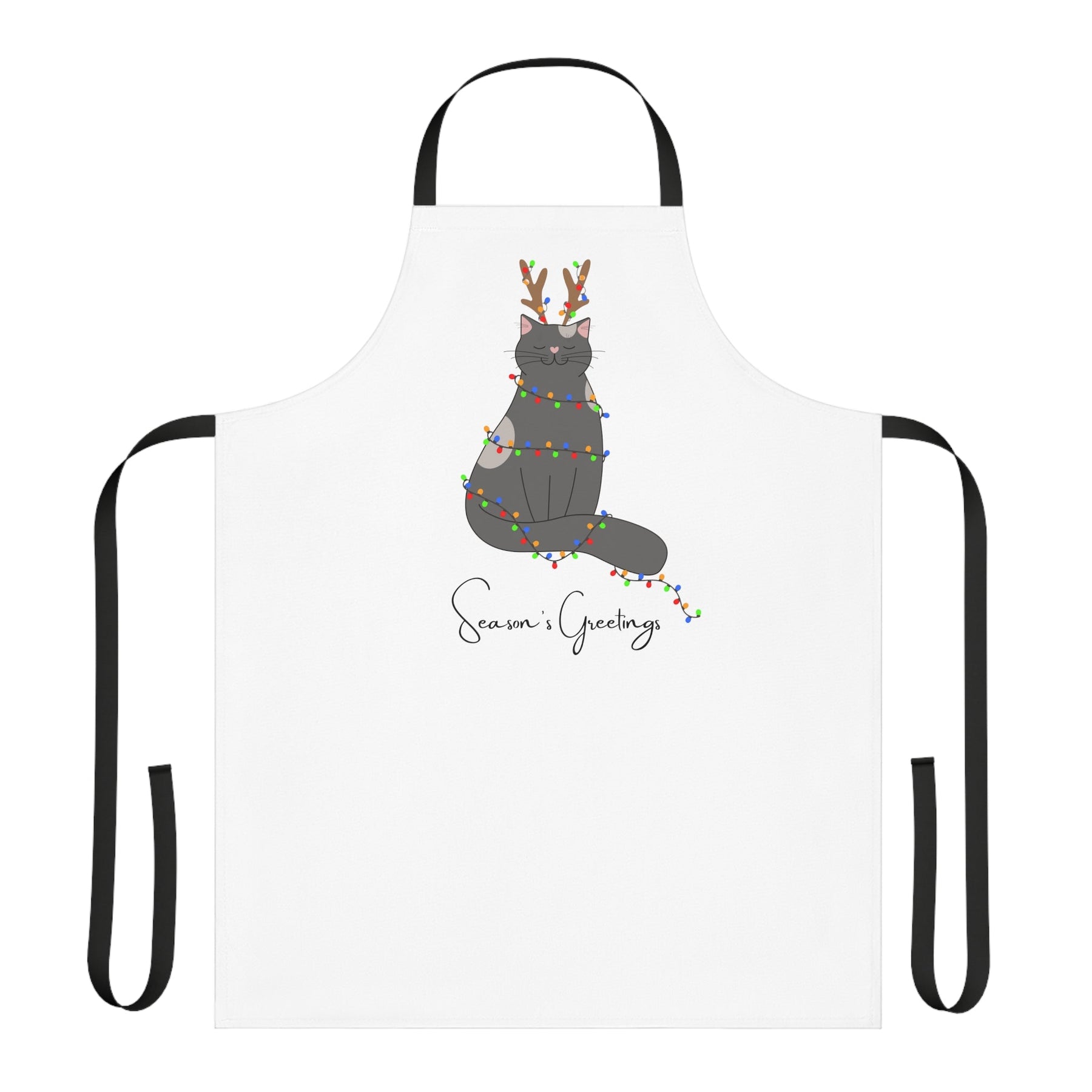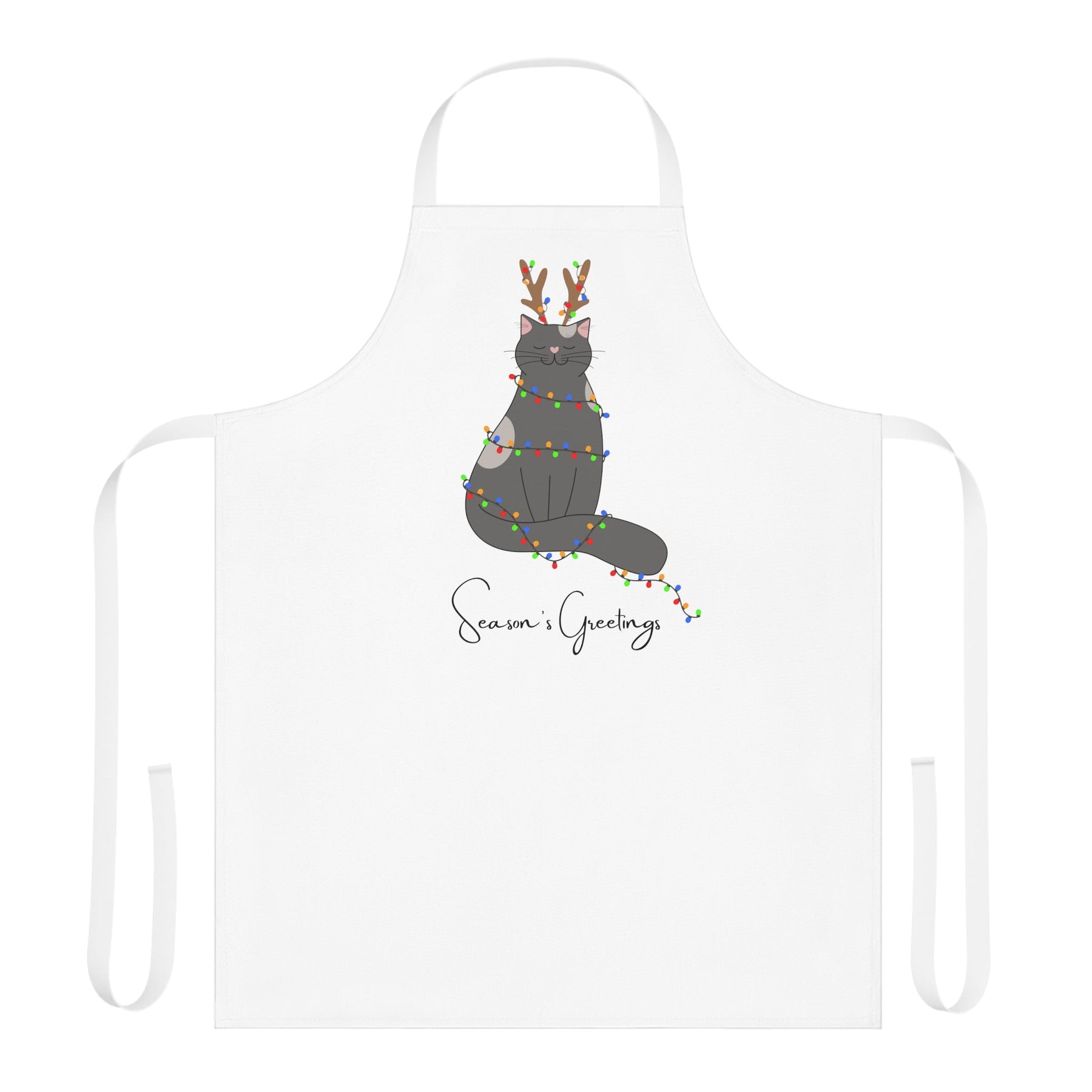 But hold on, it's not just any ordinary apron. Oh no, it's much more magical than that. Picture this: a charming cartoon cat donned with adorable reindeer antlers, adorned with a string of twinkling Christmas lights. Talk about the ultimate feline fashion statement!