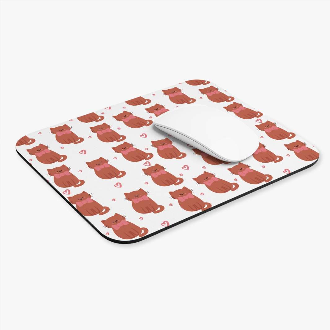 Are you tired of the same old boring mouse pads? Spruce up your workspace with our fabulous Bow Tie Cat Mouse Pad! This adorable accessory features a charming brown cartoon cat wearing a dashing pink bow tie. Accompanied by a flurry of little pink hearts, this mouse pad brings a touch of whimsy and charm to any desk.