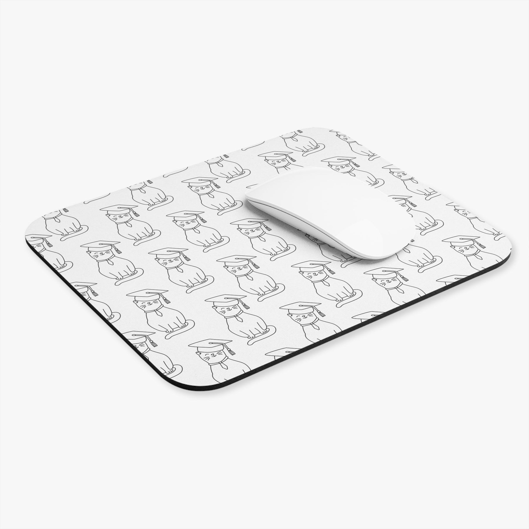 The Commencement Cat Mouse Pad features a crisp white background, adorned with a charming black line sketch of a dapper cat flaunting his academic prowess. Complete with a fashionable necktie and the iconic graduation cap, this feline scholar is ready to inspire you to chase your own dreams and conquer any task that comes your way!