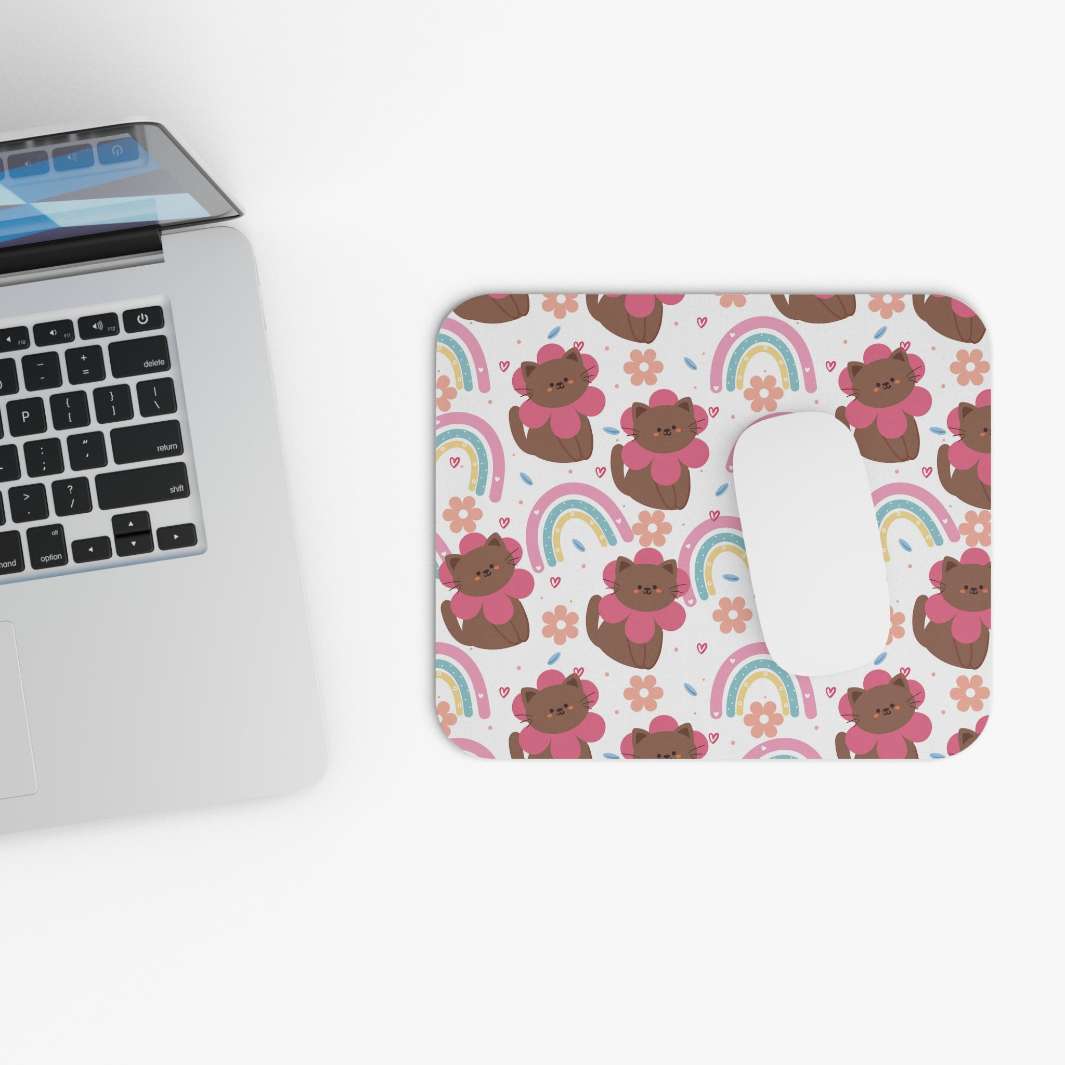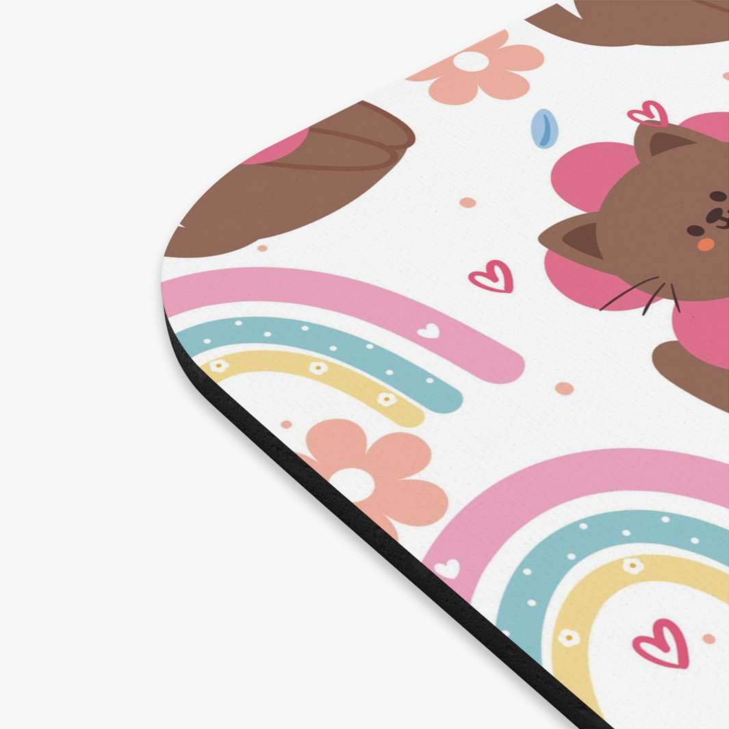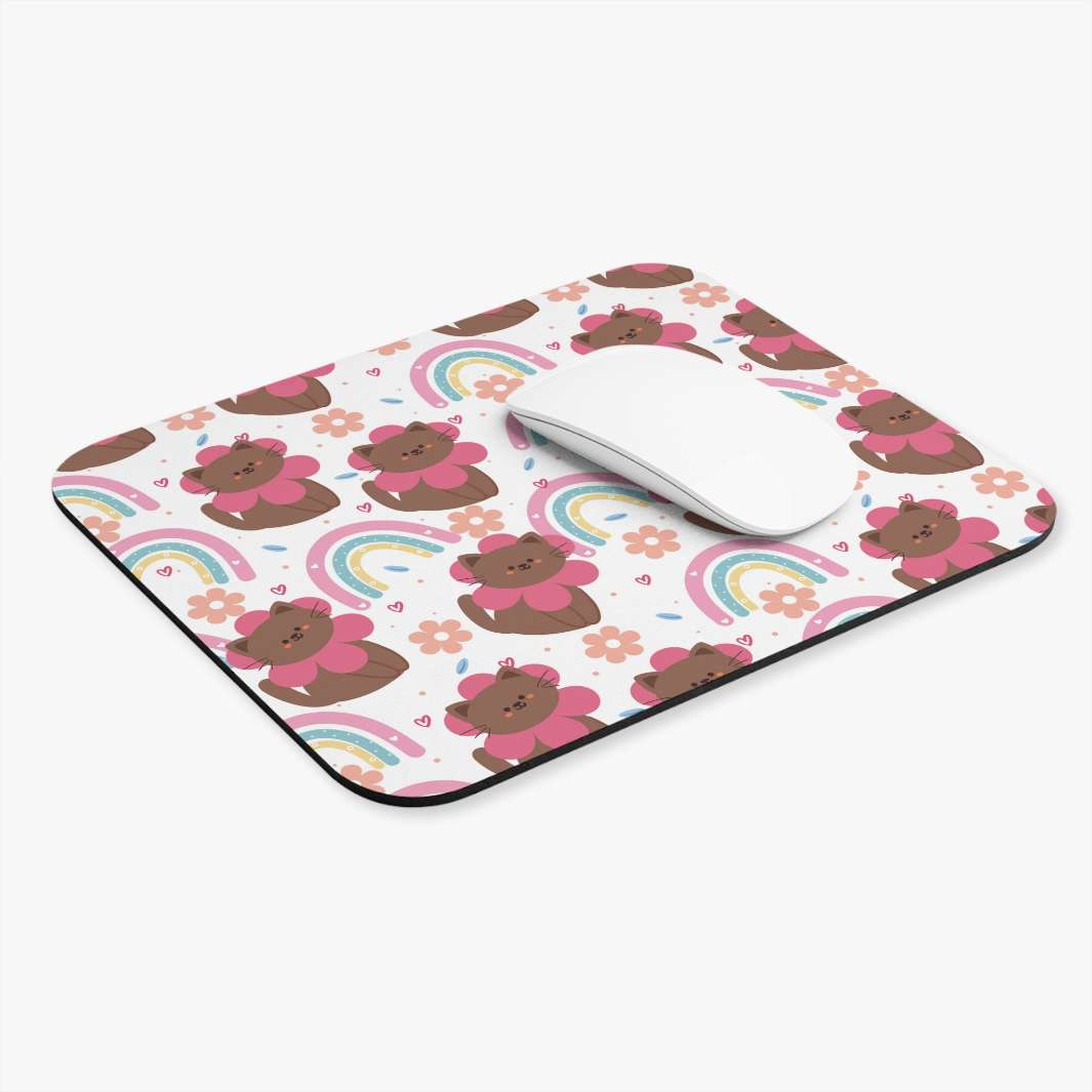 Add a whimsical touch to your workspace with the Flower Cat Mouse Pad! Designed with an enchanting cartoon cat set upon a white background, this mouse pad features vibrantly colored flower petals encircling its neck, along with bright rainbows, hearts, and flowers. This design is sure to bring a smile to anyone’s face and inject a sense of lightheartedness into any desk setup!