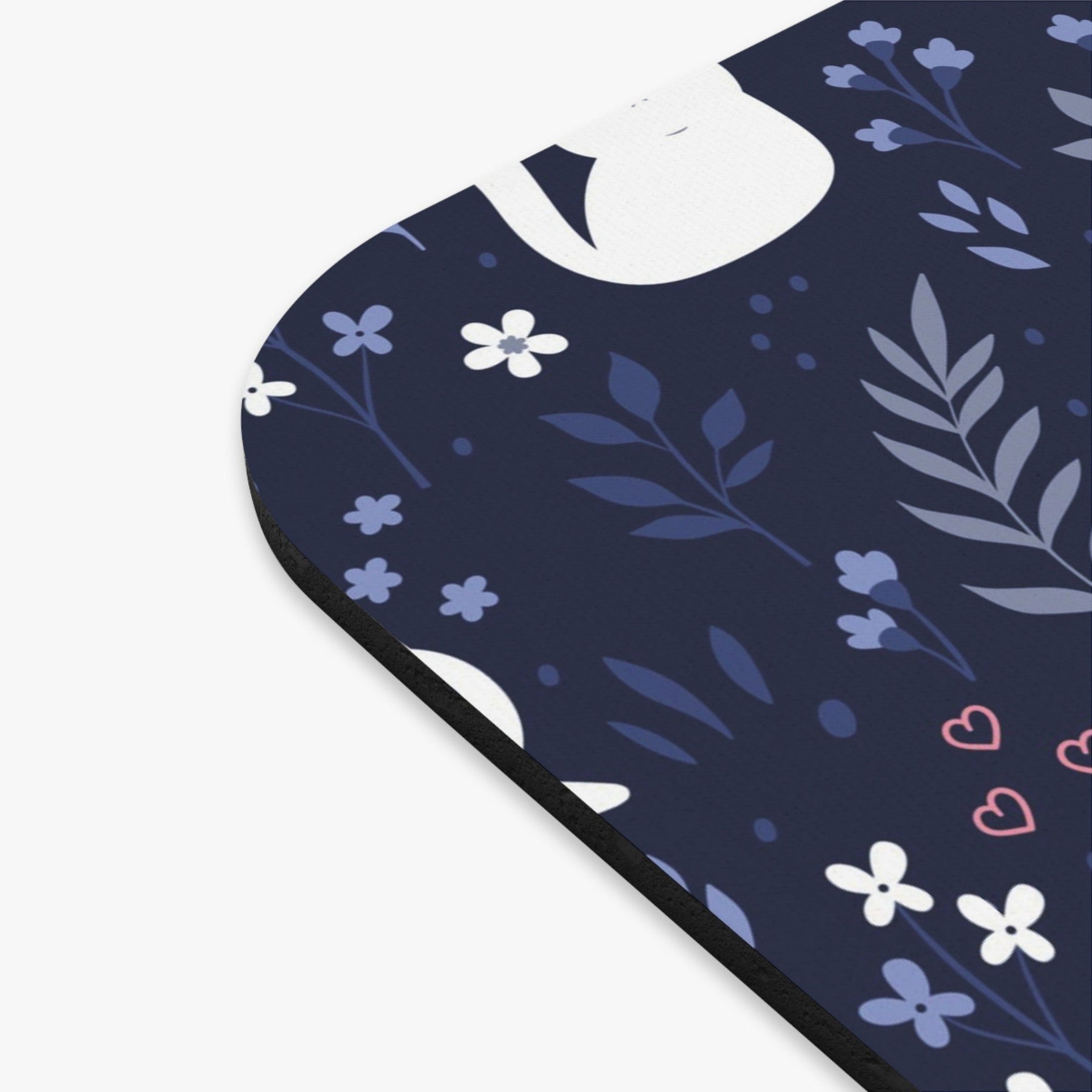 Immerse yourself in the intricate details of this one-of-a-kind mouse pad, where delicate pink flowers dance their way through the design, spreading joy and cheer with every click. The cornflower blue foliage adds a touch of serenity to the scene, creating a harmonious balance of colors that will surely captivate your heart.