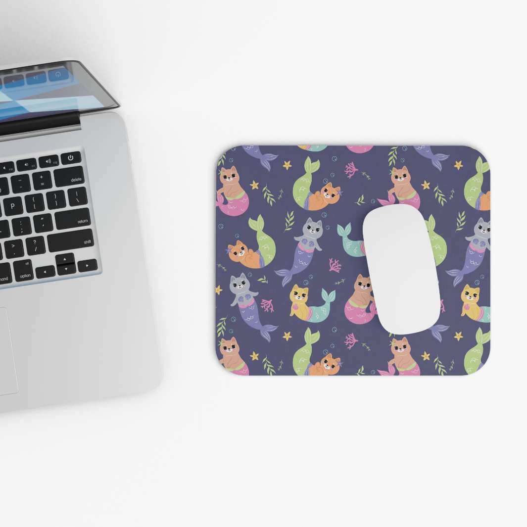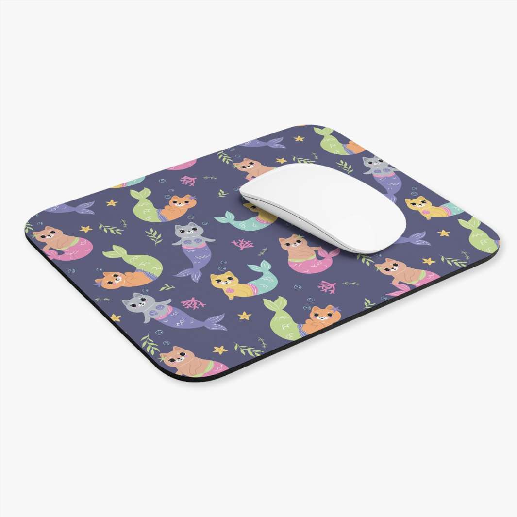 Welcome to a world where the whimsical and the adorable collide, where the graceful elegance of mermaids intertwines with the irresistible charm of playful felines. Introducing our enchanting Mermaid Cat Mouse Pad, a delightful creation that will transport you to a fantastical underwater realm every time you use your computer.