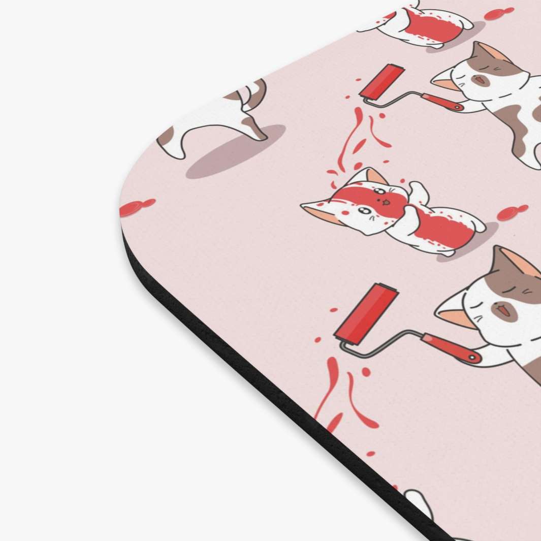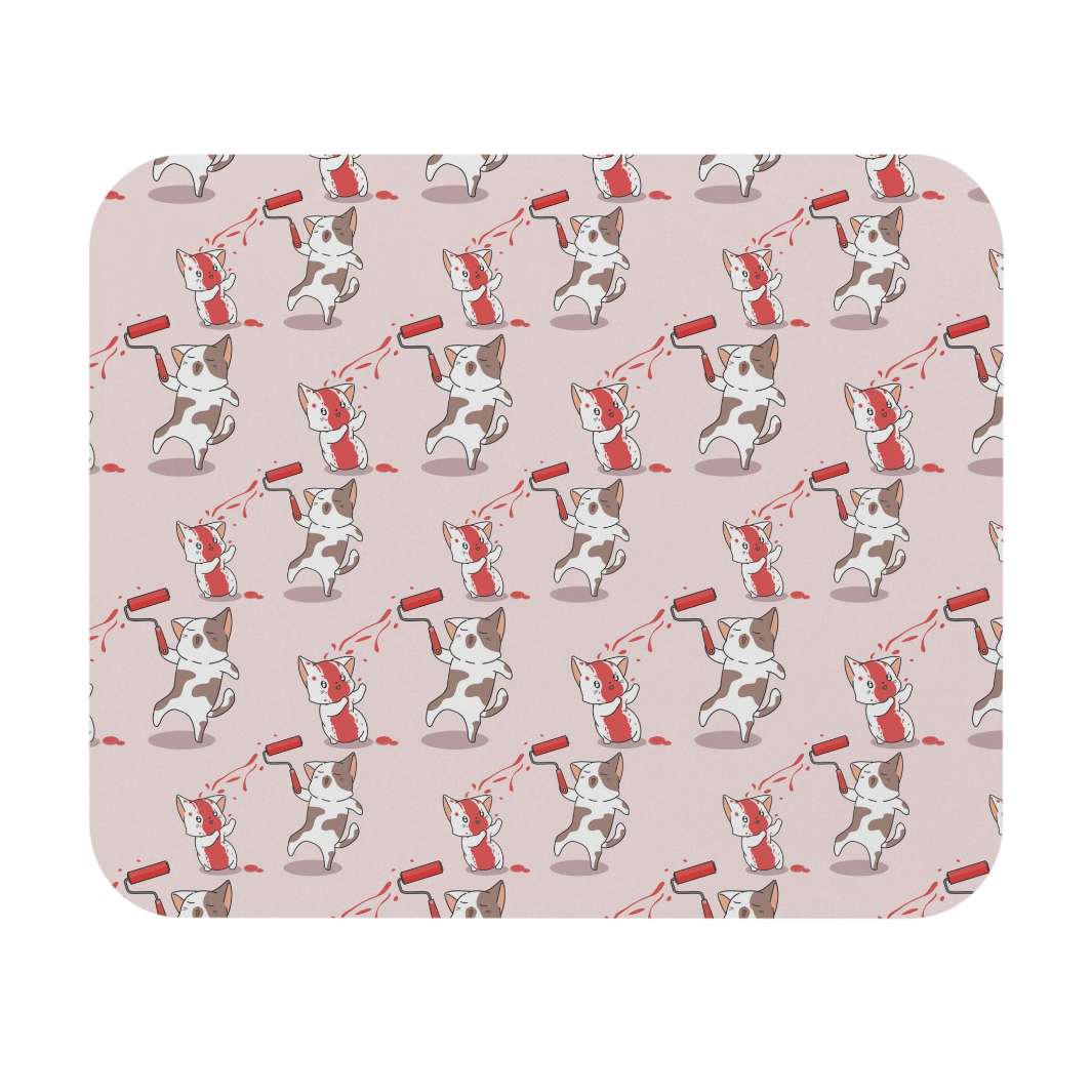 Are you looking for a unique mouse pad that adds a little spark of life to your office space? Look no further than the Paint Fight Cat Mouse Pad! Boasting an exciting pink background and white and brown cartoon cats having a paint fight with paint rollers and splashes of vibrant red paint, this mouse pad is sure to turn heads!