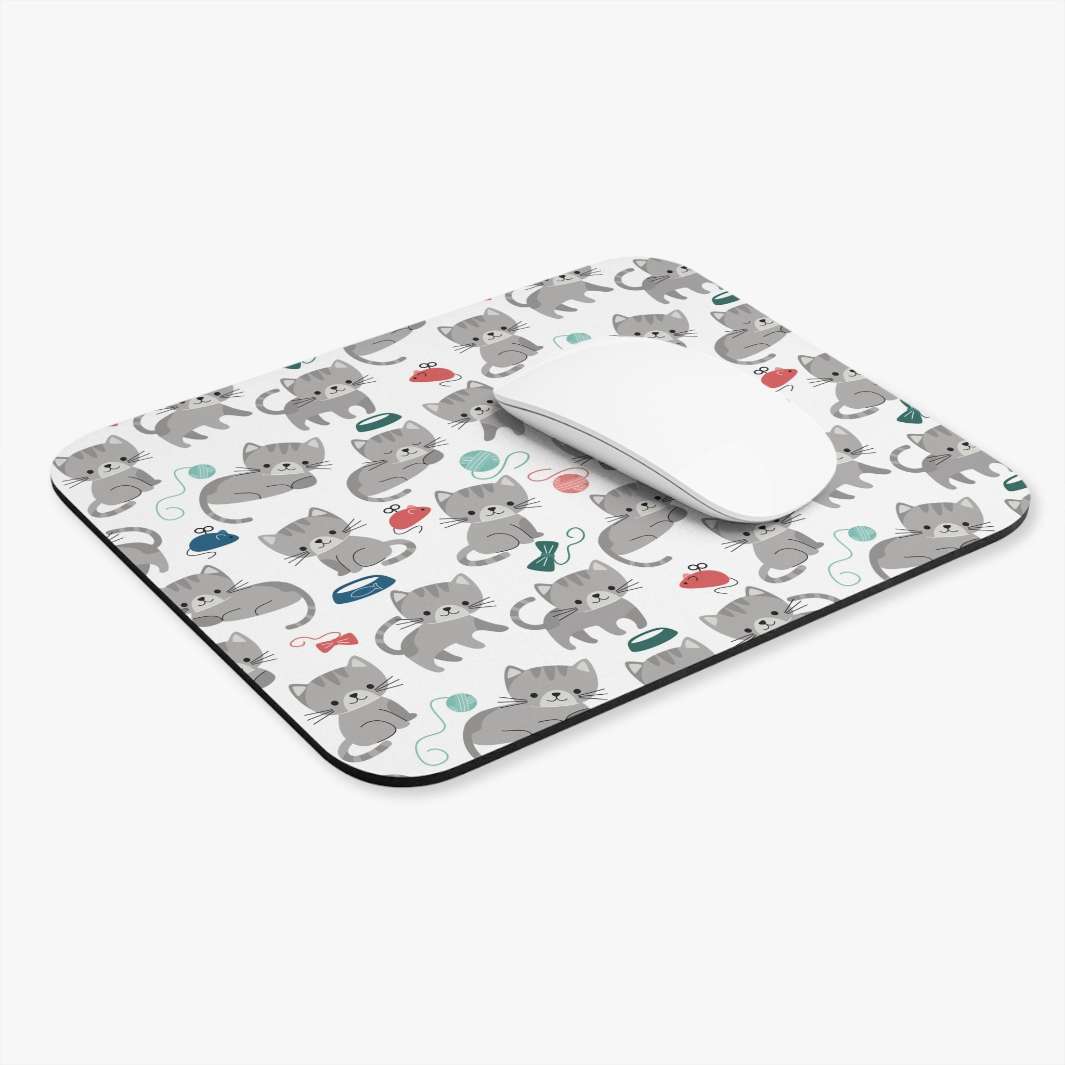 If you’re looking for a proven way to break up your workday while staying productive, you’ve come to the right place. The Playful Gray Kitten Mouse Pad features a cheerful gray cartoon cat surrounded by their favorite things, including a food bowl, toy mouse, ball of yarn, and a variety of fun cat toys.