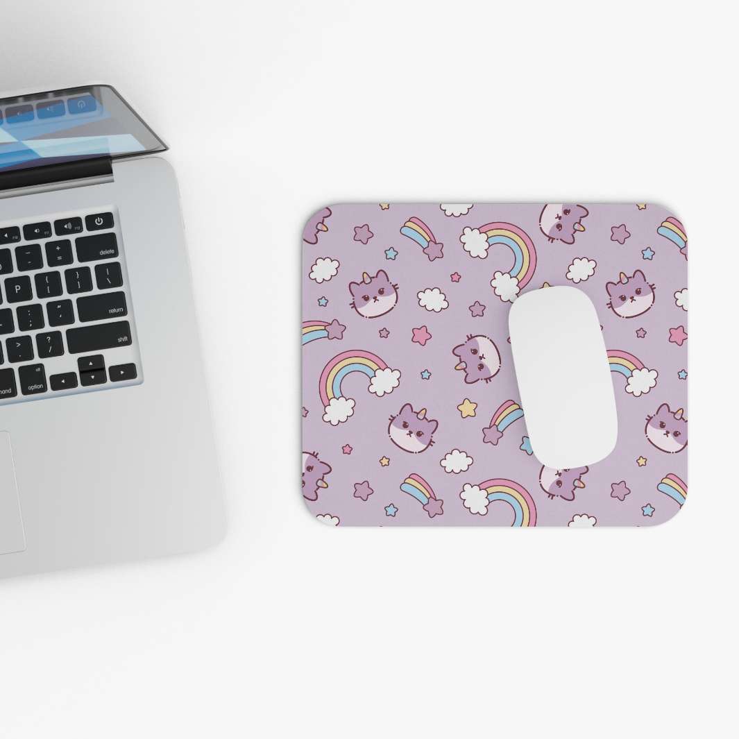 Purple Cats and Rainbows Mouse Pad- Happy Little Kitty