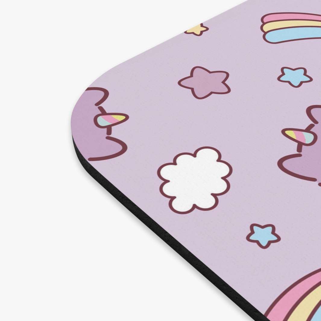 But it doesn't end there! Adorning the rest of this delightful mousepad is a charming assortment of rainbows, little white clouds, and an abundance of twinkling stars in a delightful array of yellow, pink, blue, and purple hues. Every detail has been carefully crafted to create an immersive and enchanting experience - a true feast for the eyes!