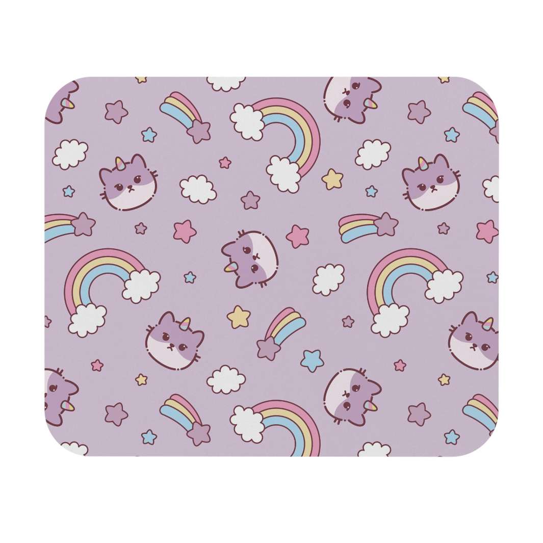 Worried about pesky corners that irritate your wrist? Fear not! The rounded edges of the  Purple Cats and Rainbows mouse pad offers unparalleled comfort, ensuring that those long hours spent scrolling, clicking, and cat video watching are as cozy as can be.