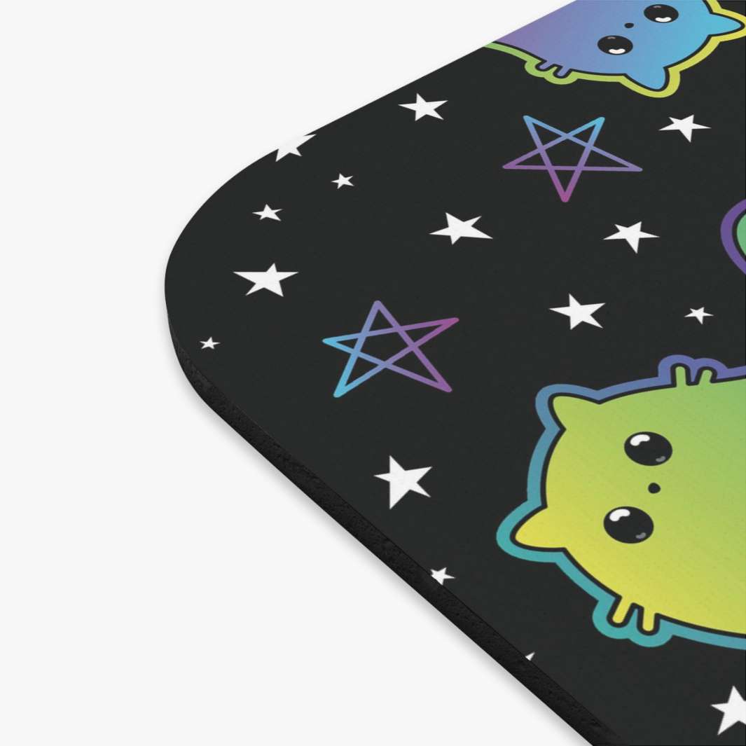 This mouse pad features a deep black background which creates a startling contrast against vibrant, floating ghost cats in rainbow colors - plus stars for some extra enchantment. Crafted with premium attention to detail and high-quality materials, this durable mouse pad is made of high-density foam topped with an ultra-thin rubber base that's designed to protect your desk and provide enough traction for effortless movement.