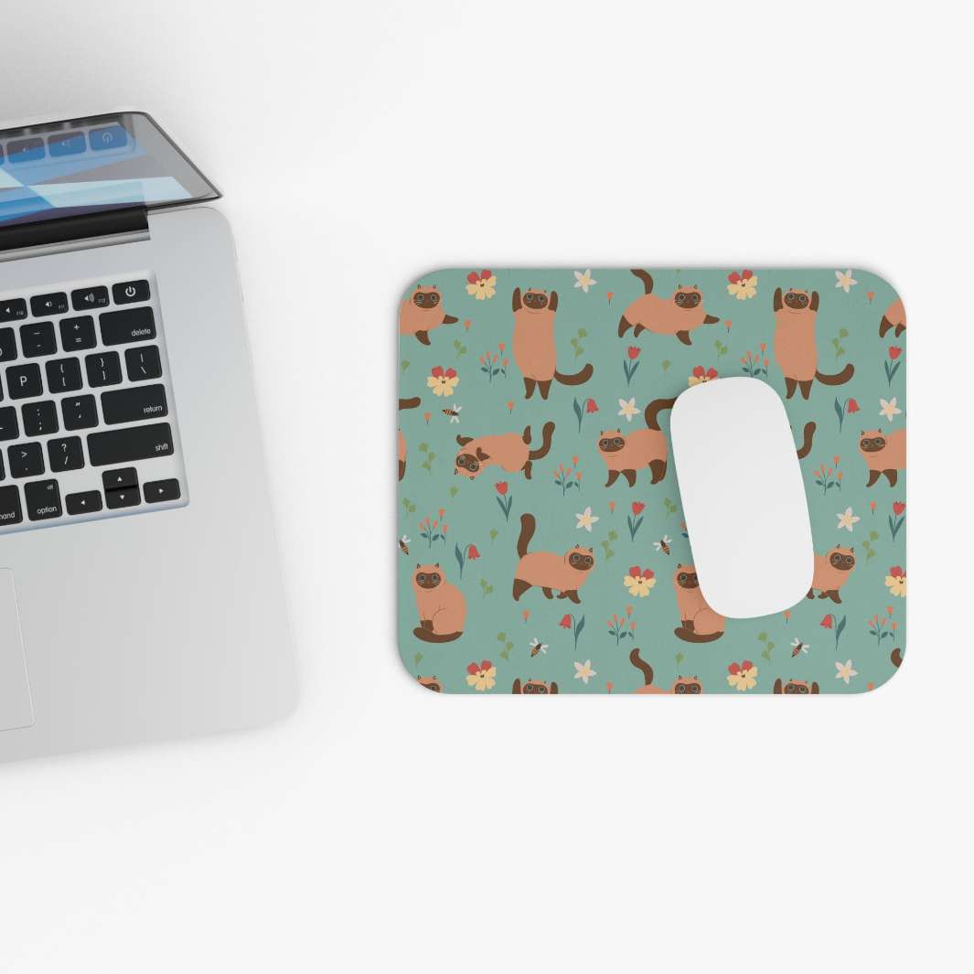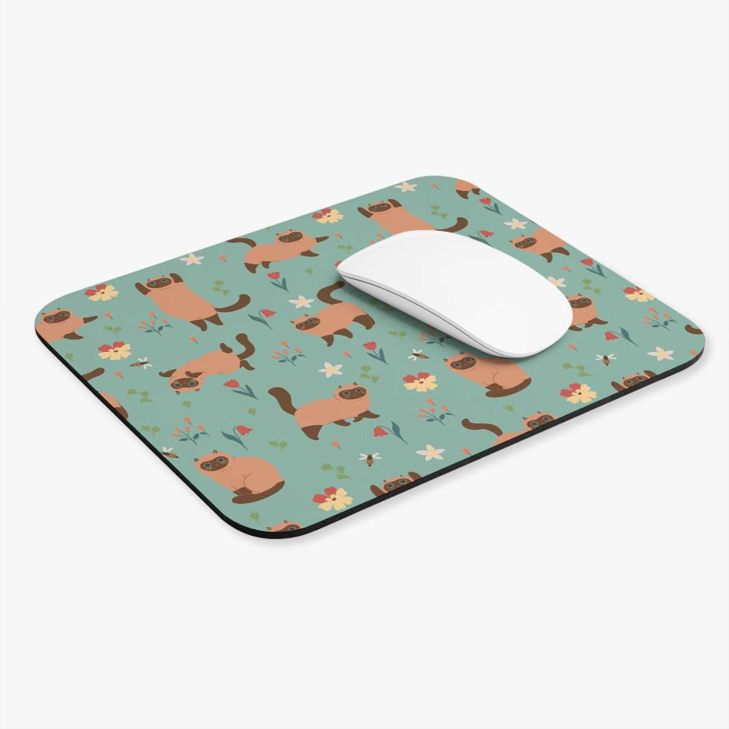Don't you deserve a little feline magic in your life? Treat yourself, or surprise your favorite cat aficionado with this delightful masterpiece today. Unleash the inner cat lover within you and let the Siamese Cat and Flowers mouse pad become the crowning jewel of your workspace or gaming setup. Order now and make everyday scrolling a whimsical adventure!
