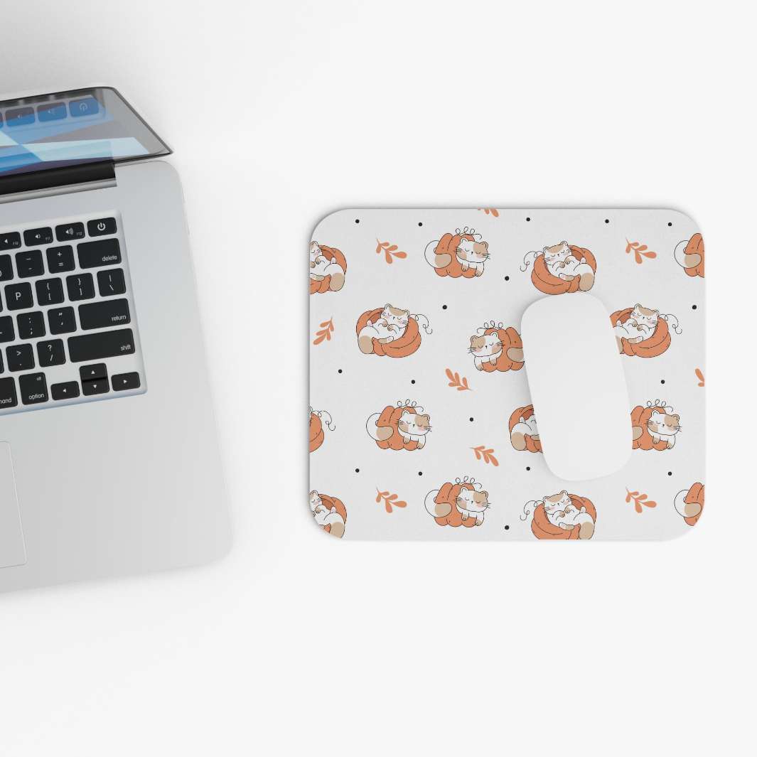Are you tired of the same old boring mouse pad? Do you want to add a touch of whimsy and cuteness to your workspace? Look no further than our Sleepy Pumpkin Cat Mouse Pad!