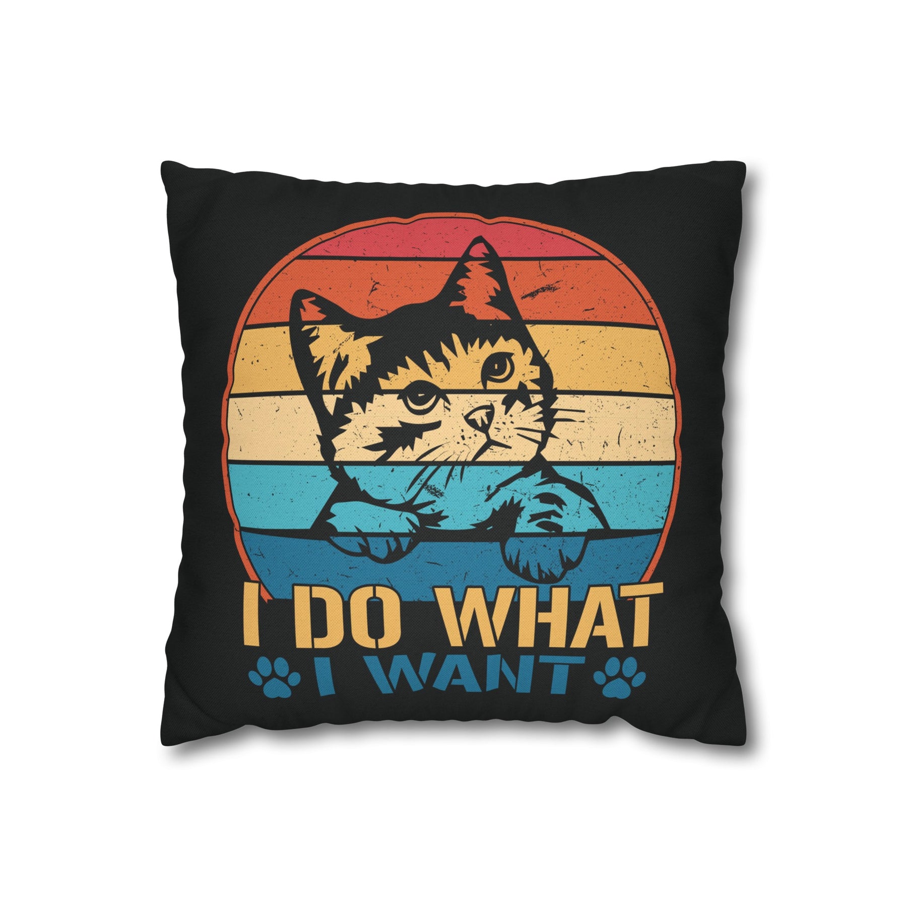 The bold black background is the perfect canvas for the vibrant and eye-catching design. With the words "I Do What I Want" boldly emblazoned in bright colors, this pillow declares to the world that you are an independent spirit who refuses to be tamed. And what better way to show off your rebellious side than with paw prints on each side, symbolizing the sassy and carefree attitude of our beloved feline friends.
