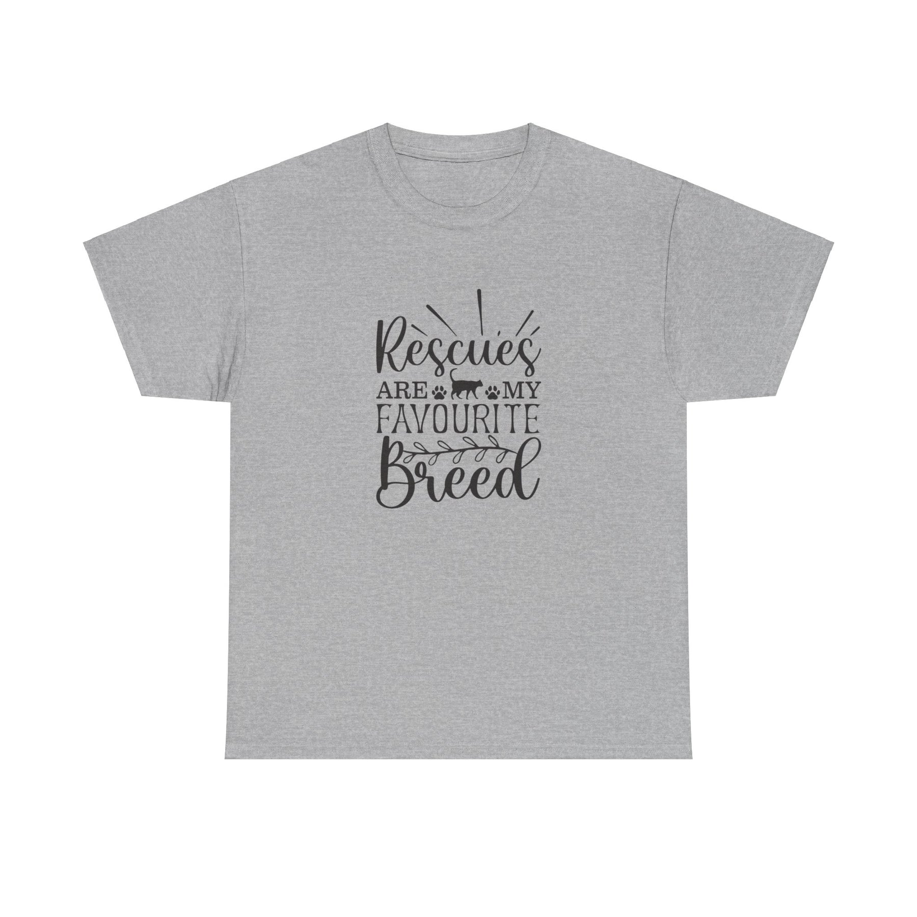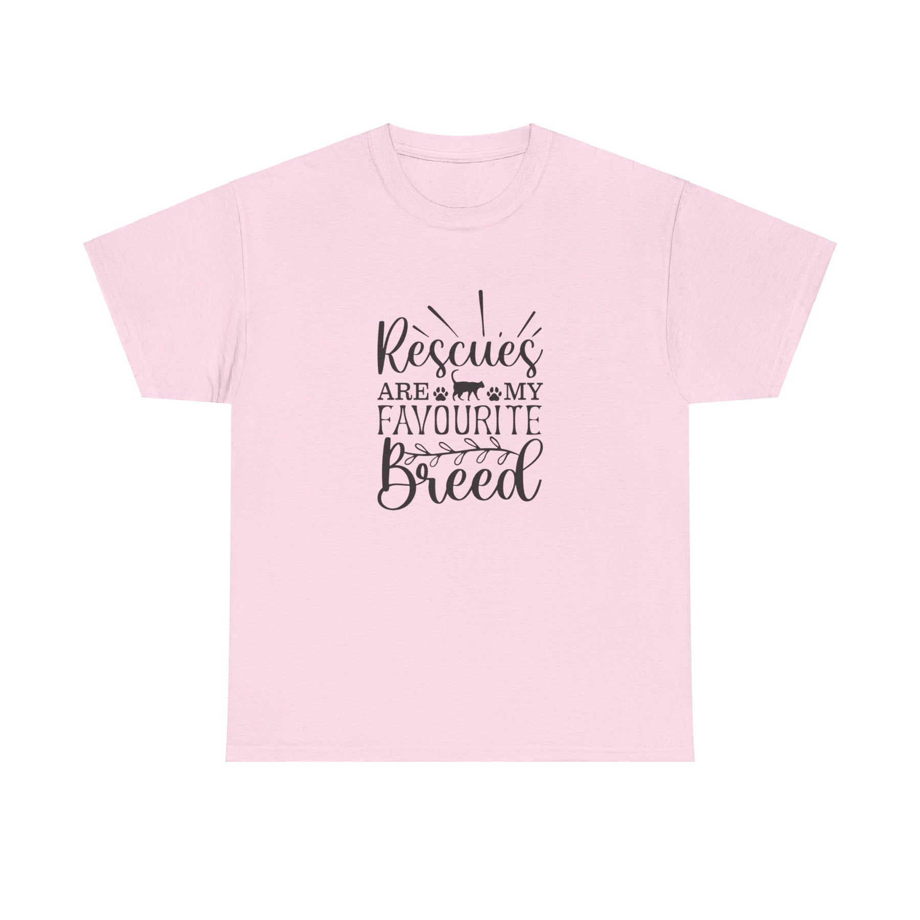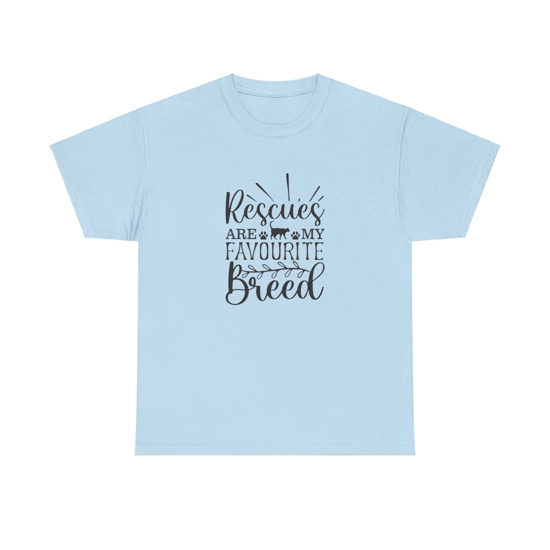 Featuring the words "Rescues Are My Favorite Breed" in bold, this tee lets you proudly express your admiration for all those lovable furry creatures who have found their forever homes through adoption. And to top it off, the shirt is adorned with cute pawprints and a silhouette of a black cat, because let's be real, who can resist those adorable little paws and whiskers?