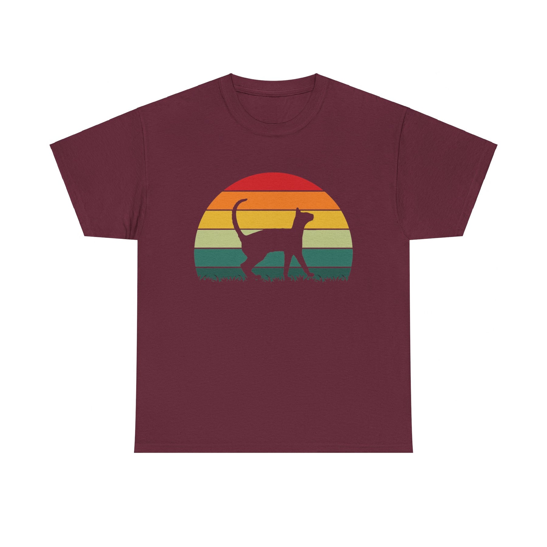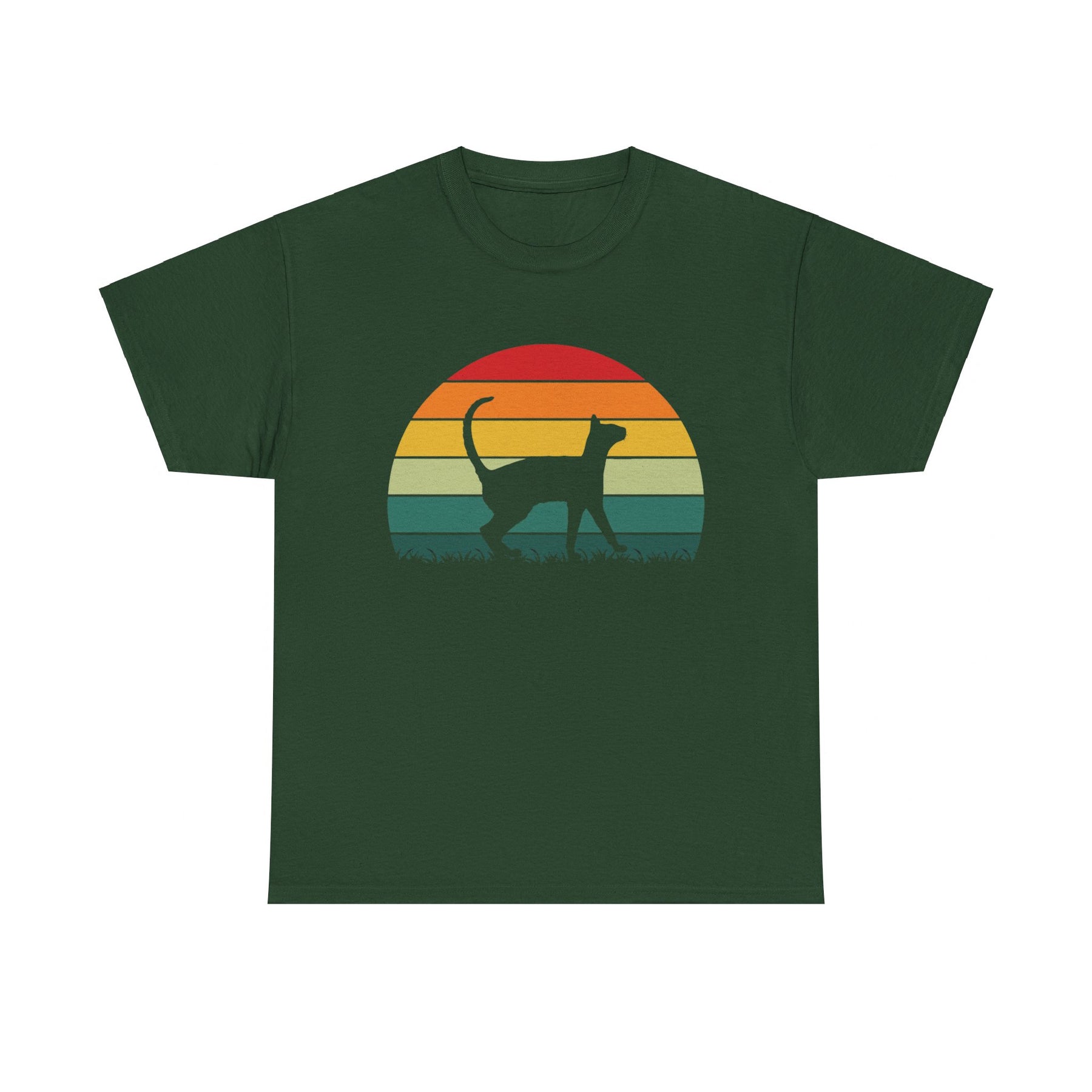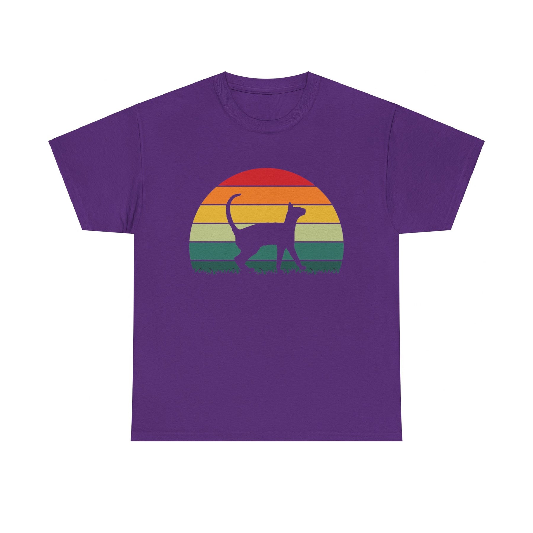 Are you a lover of all things nostalgic and feline? Look no further because the Sunset Cat Cotton Tee has got you covered! This trendy tee is a perfect blend of 1980's vibes and playful feline fashion. Featuring a stunning sunset background with a cat silhouette walking across, this tee is sure to turn heads and spark conversations.