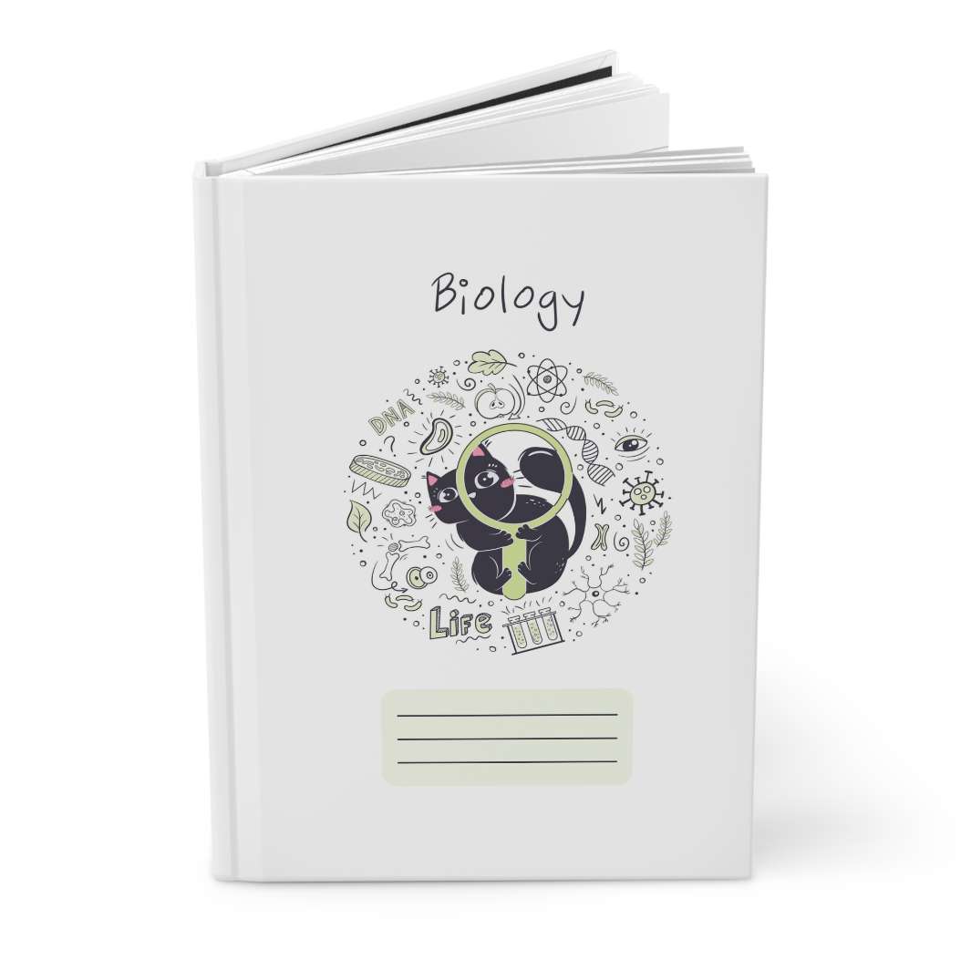 Are you a cat-lover and a biology enthusiast? Then have we got the perfect product for you! Our Biology Cat Hardcover Journal is sure to bring a smile to your face as soon as you lay eyes on it. The bright white background is highlighted by a perfect cartoon black cat, holding a light green magnifying glass surrounded by playful science symbols. At the top of the journal reads “Biology” while at the bottom lies an inviting box with lines to enable you to inscribe your name.