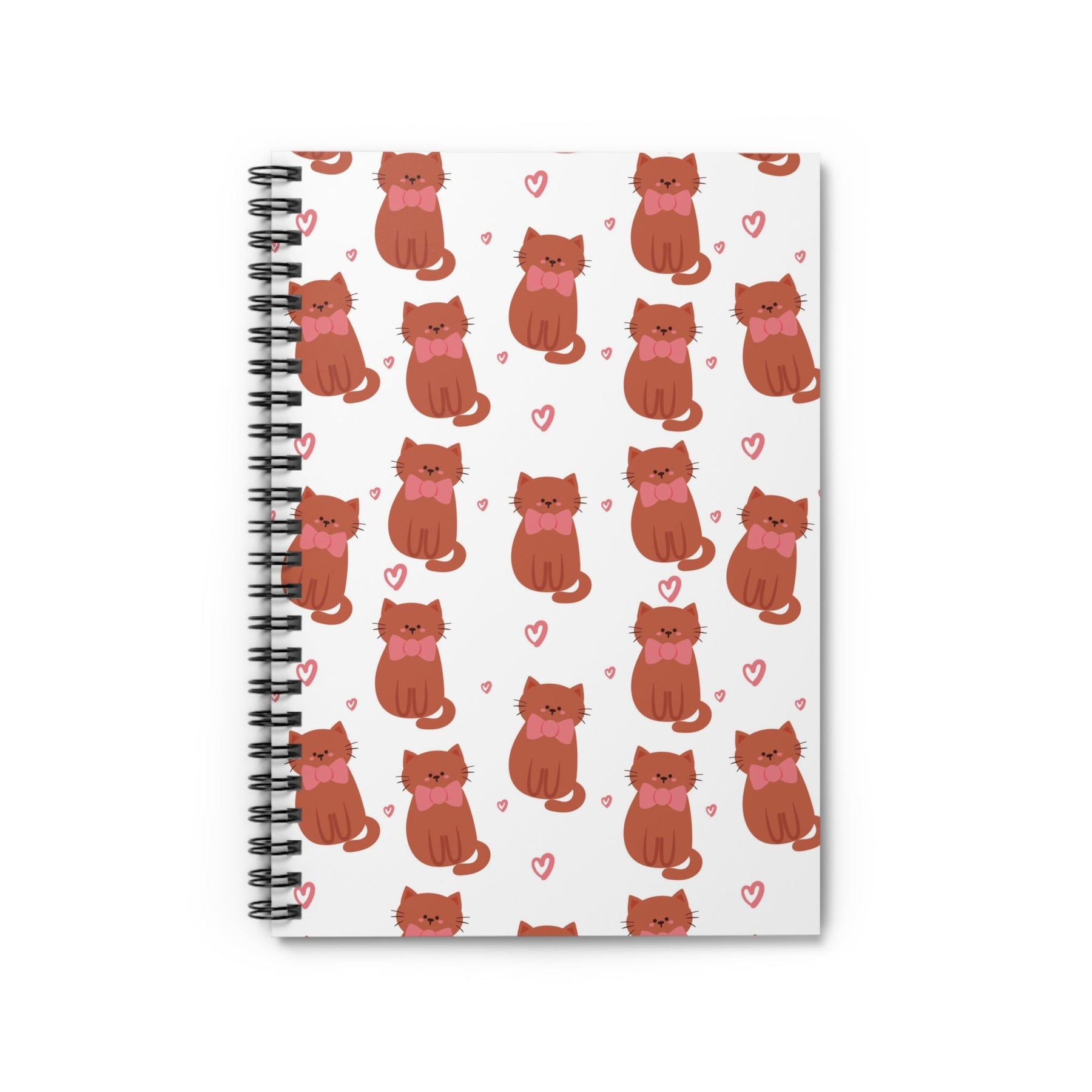 Our adorable brown cartoon cat wearing a pink bow tie is surrounded by little pink hearts, and it's the perfect way to take down notes and thoughts wherever you go. This notebook is perfect for any cats lover - add a touch of humor and style to your life with this journal!