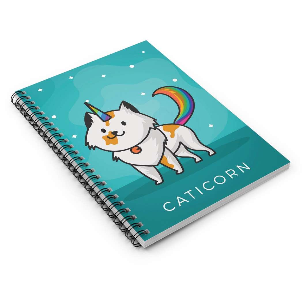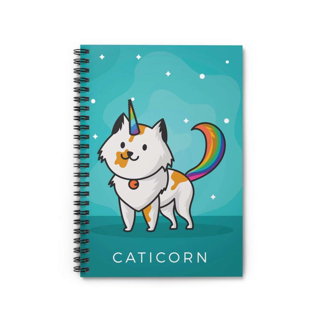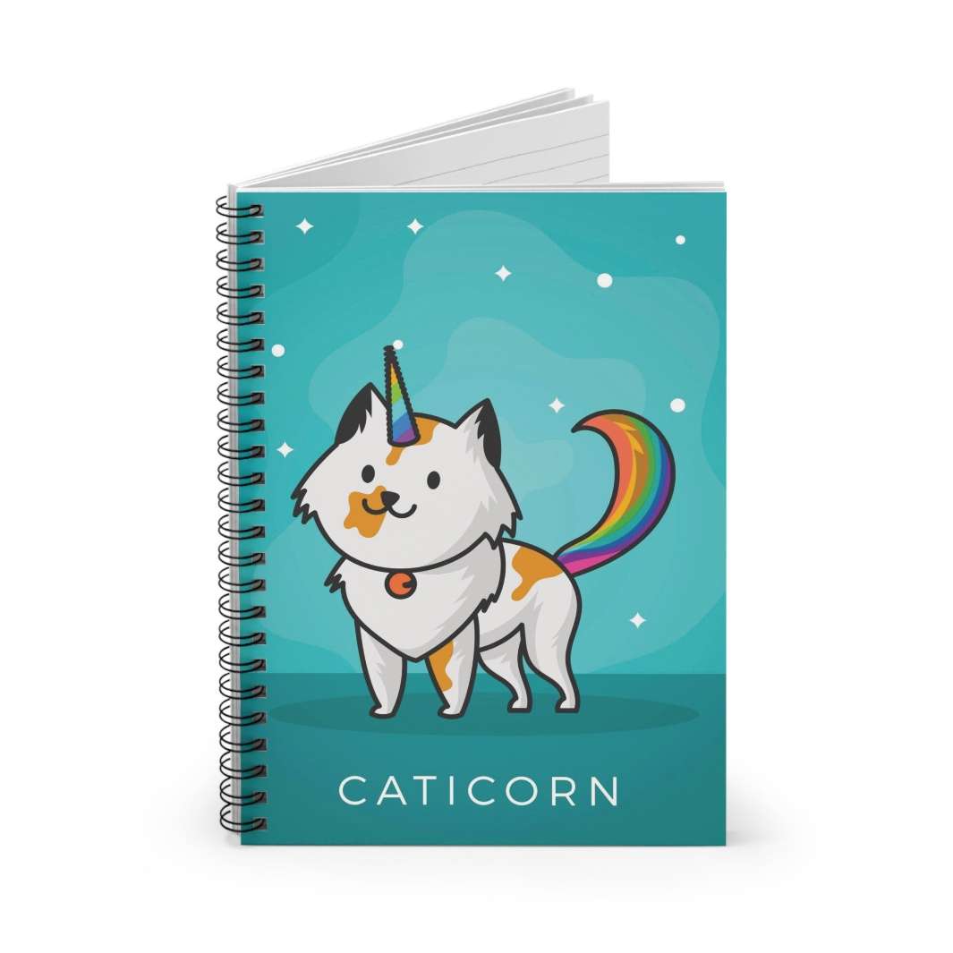 Treat yourself or make someone special smile with this one-of-a-kind Caticorn Spiral Notebook today!