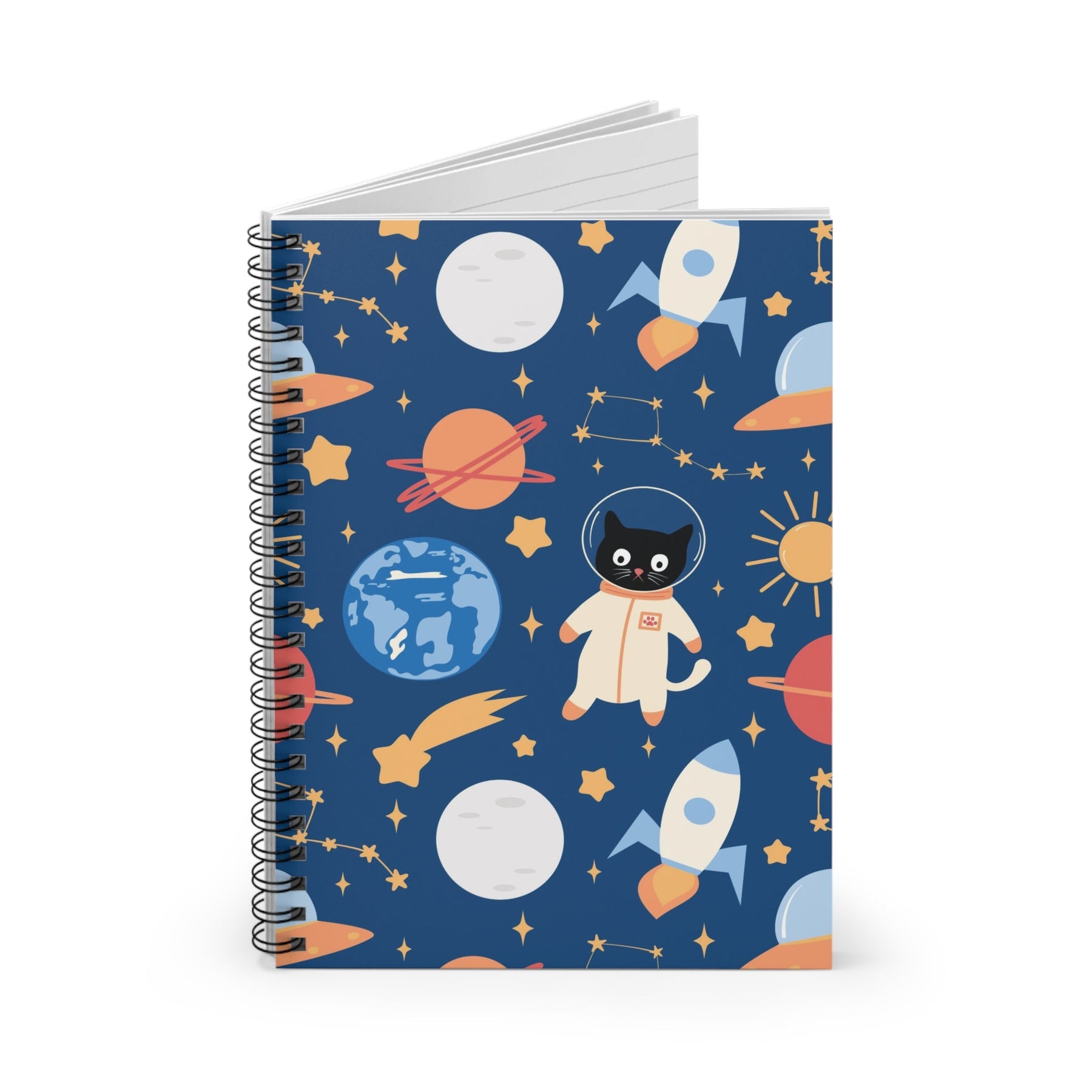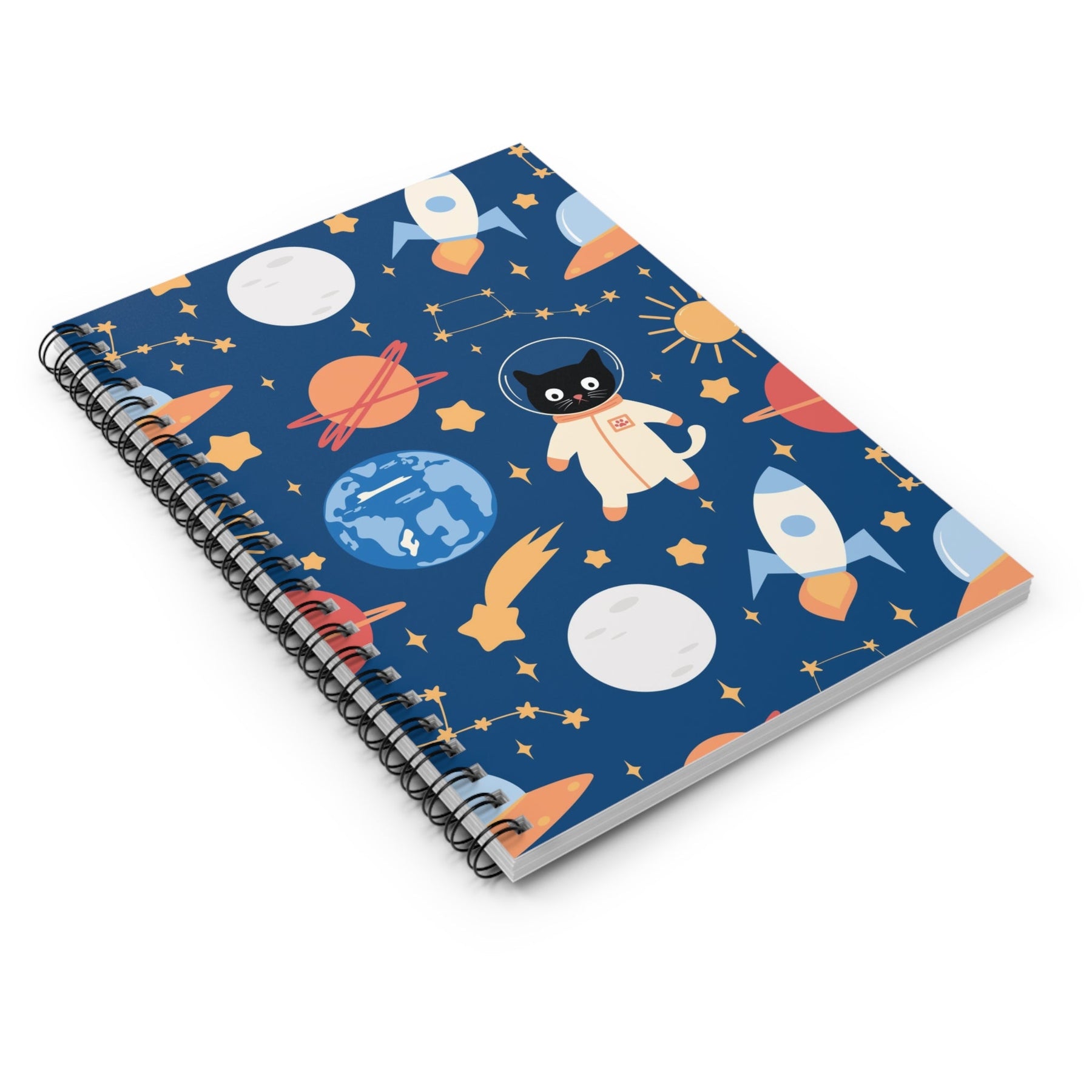 Let your creativity take off into the cosmos with the Cats and Planets spiral notebook!